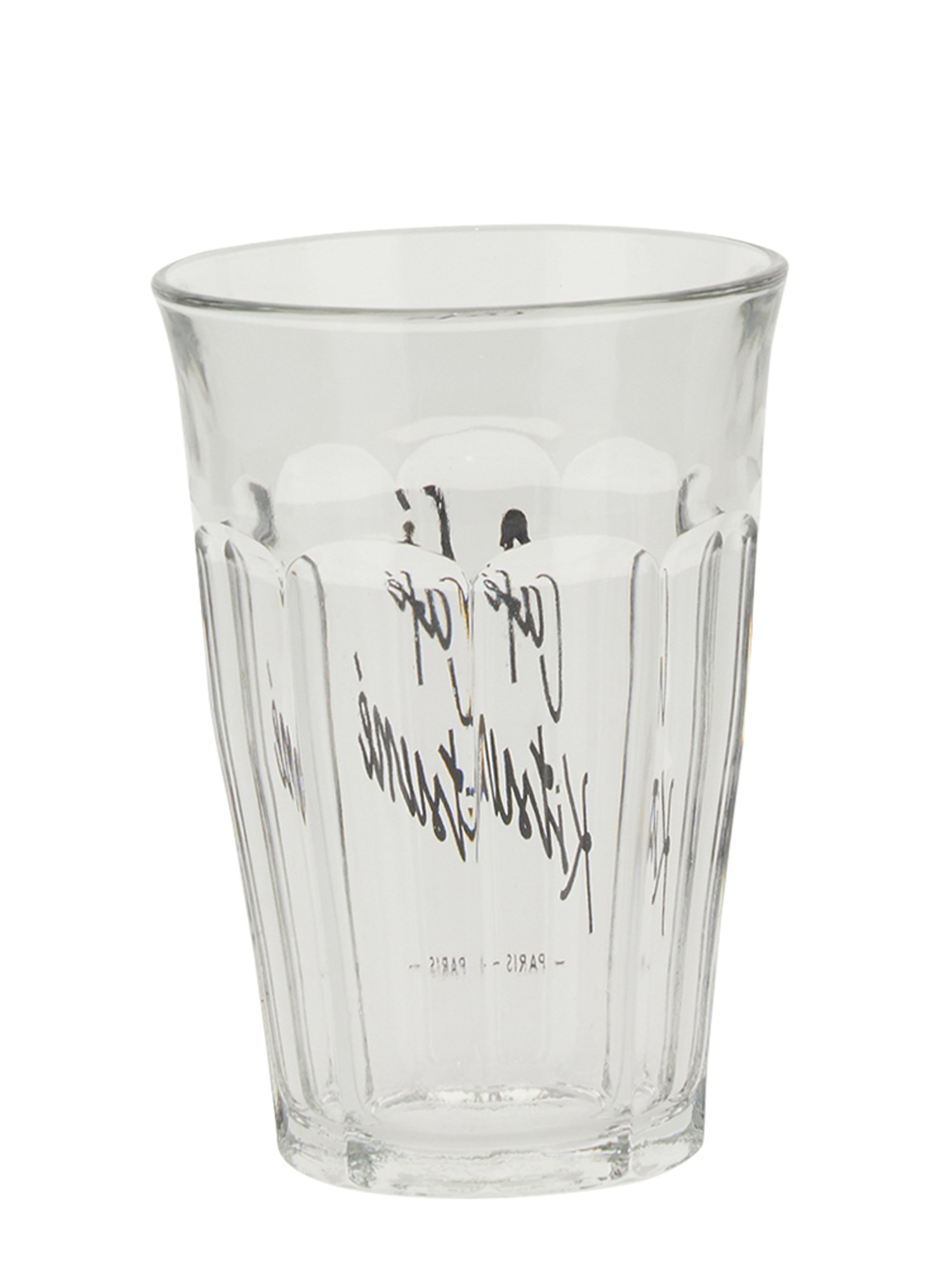 - CONTRASTING FRONT LOGO- DIMENSIONS: H 12.5 CM / ø 8 CM- CAPACITY: 36 CL- 100% GLASS