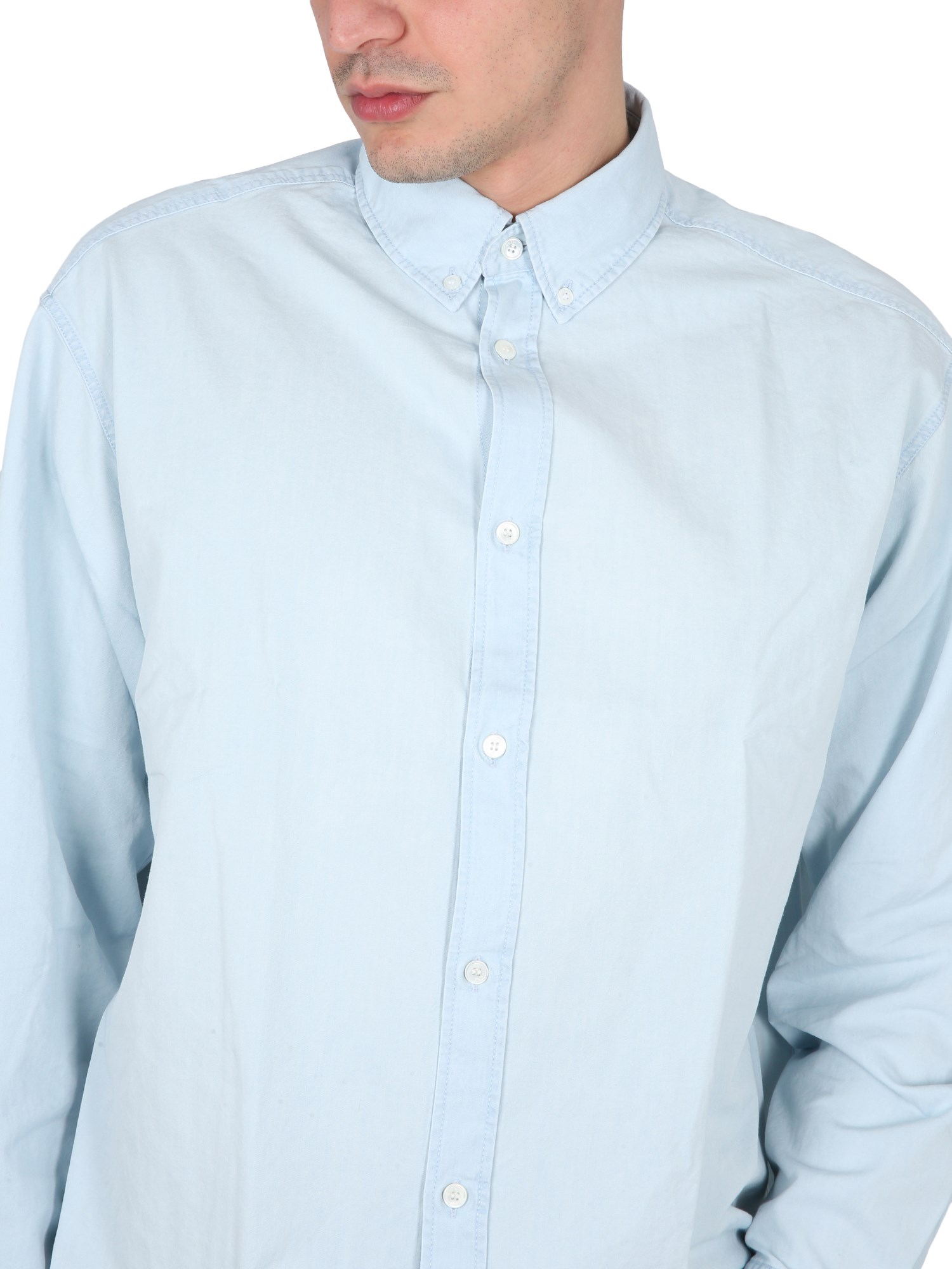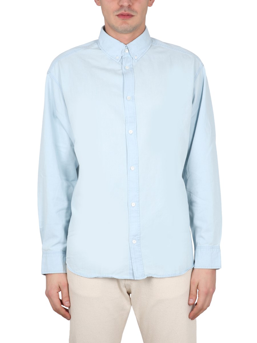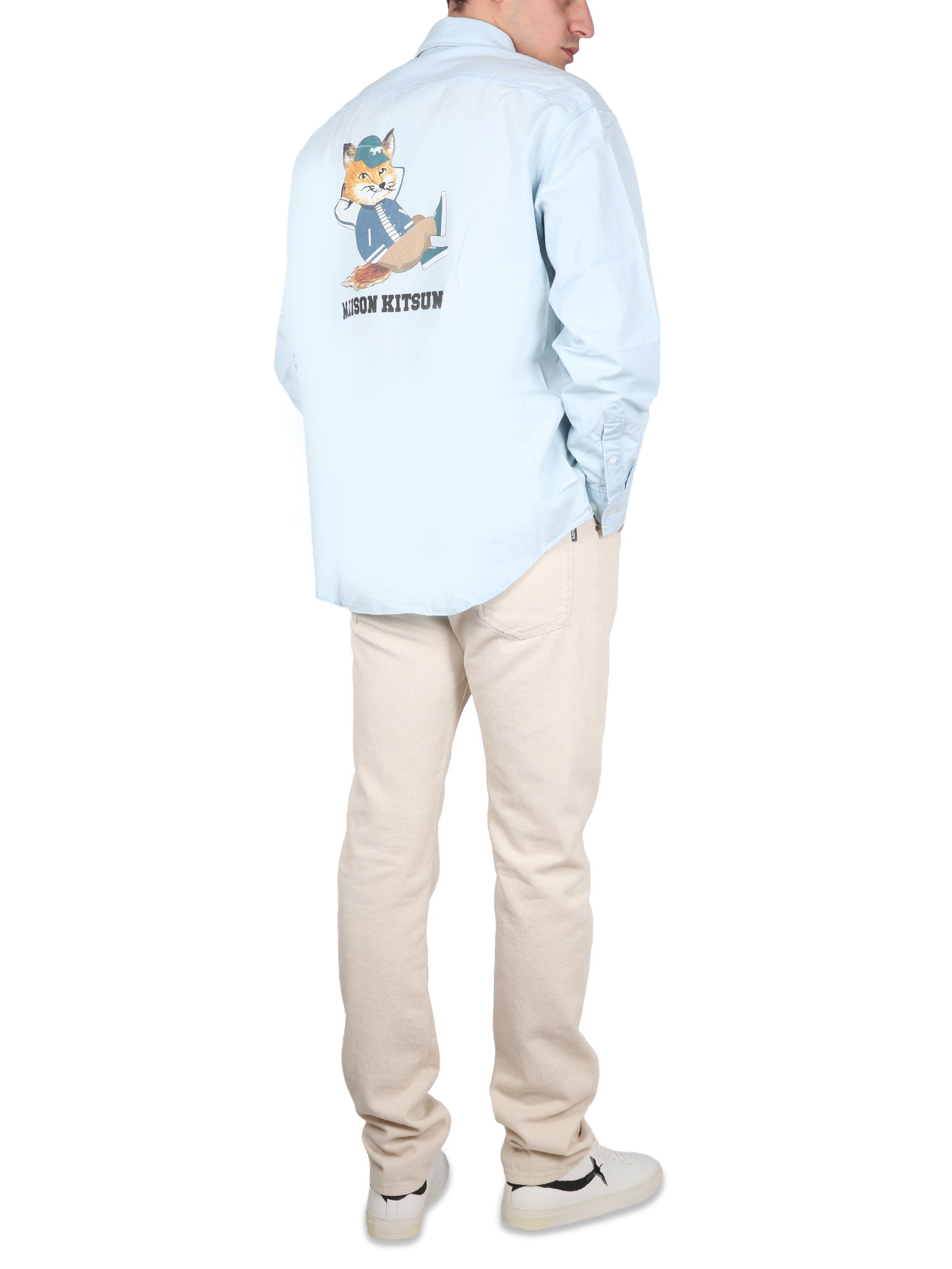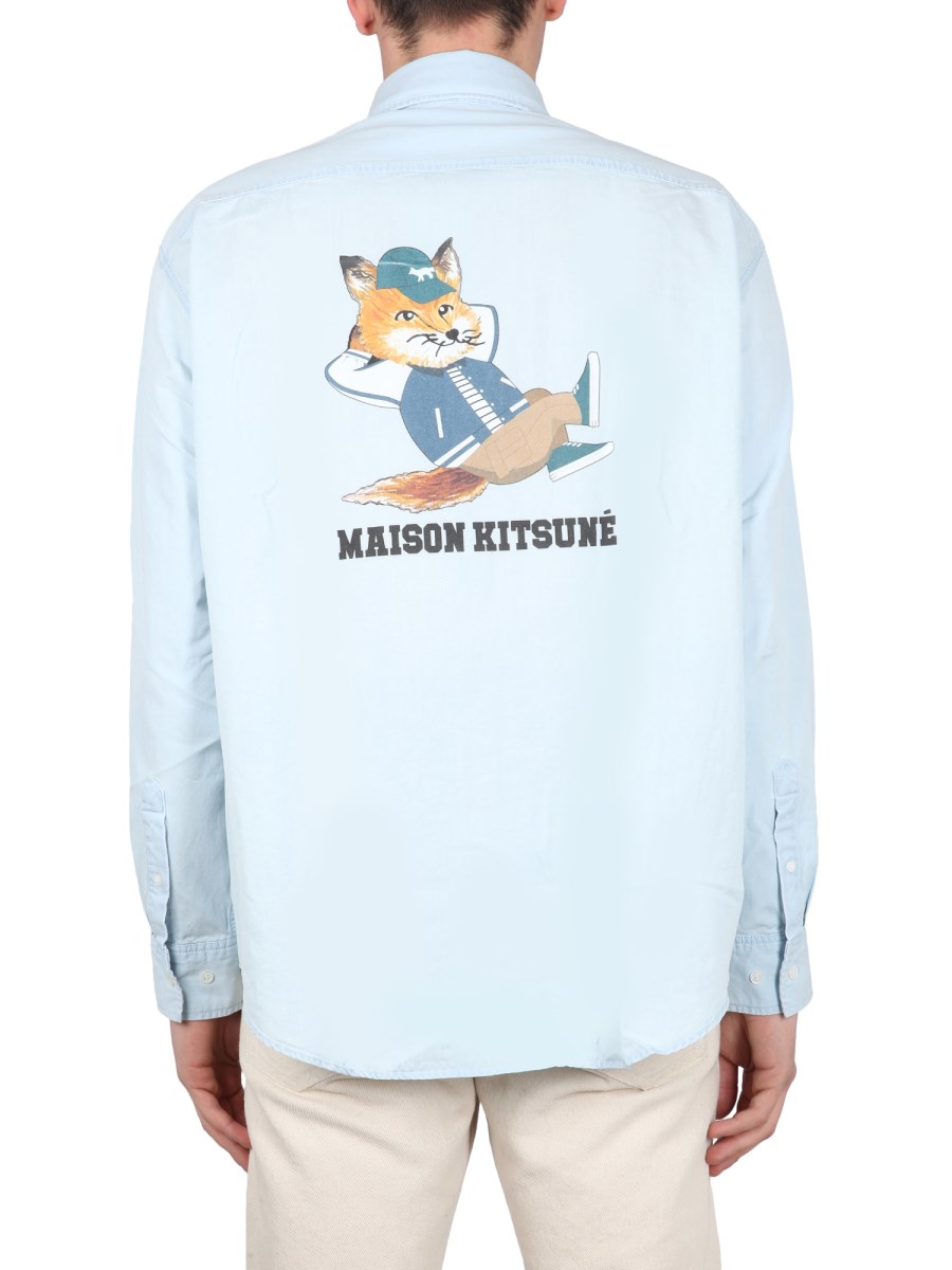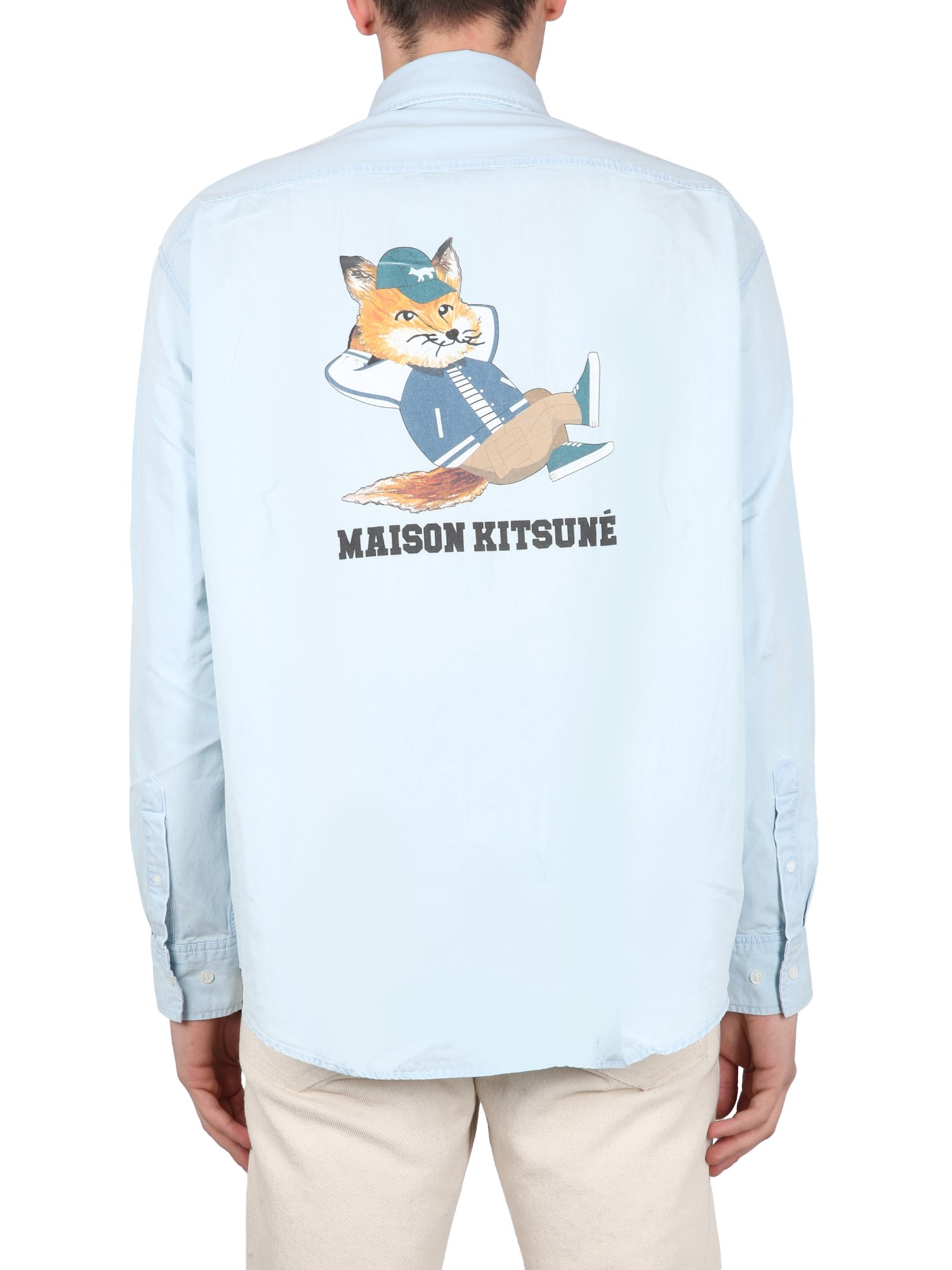 The shirt from Maison Kitsuné features a classic collar, front button closure, and regular fit. Made of 100% cotton, the shirt is durable and comfortable to wear. The classic collar is a standard style that fits most. It has a button closure that's easy to button and keeps the shirt looking crisp and clean.