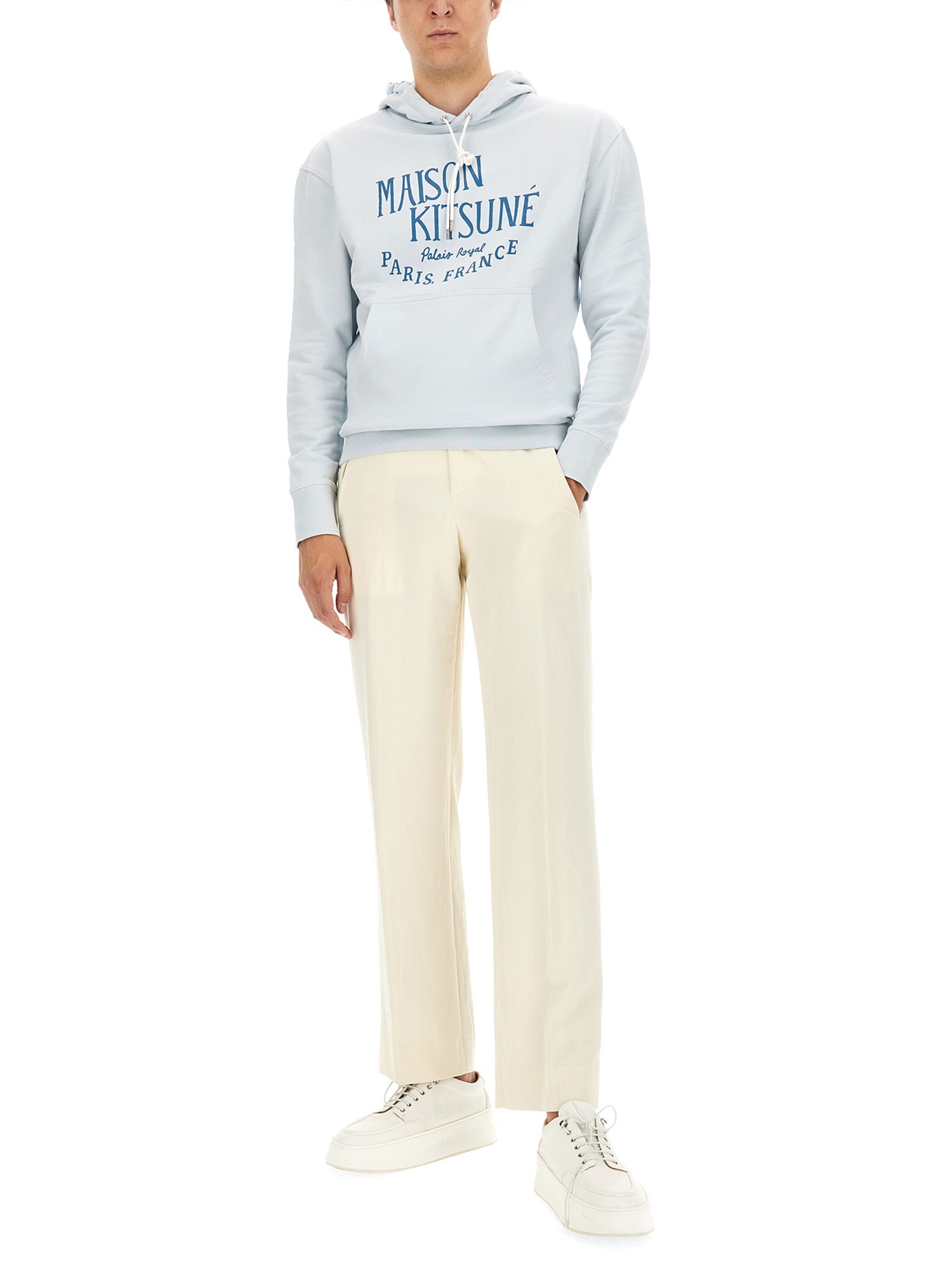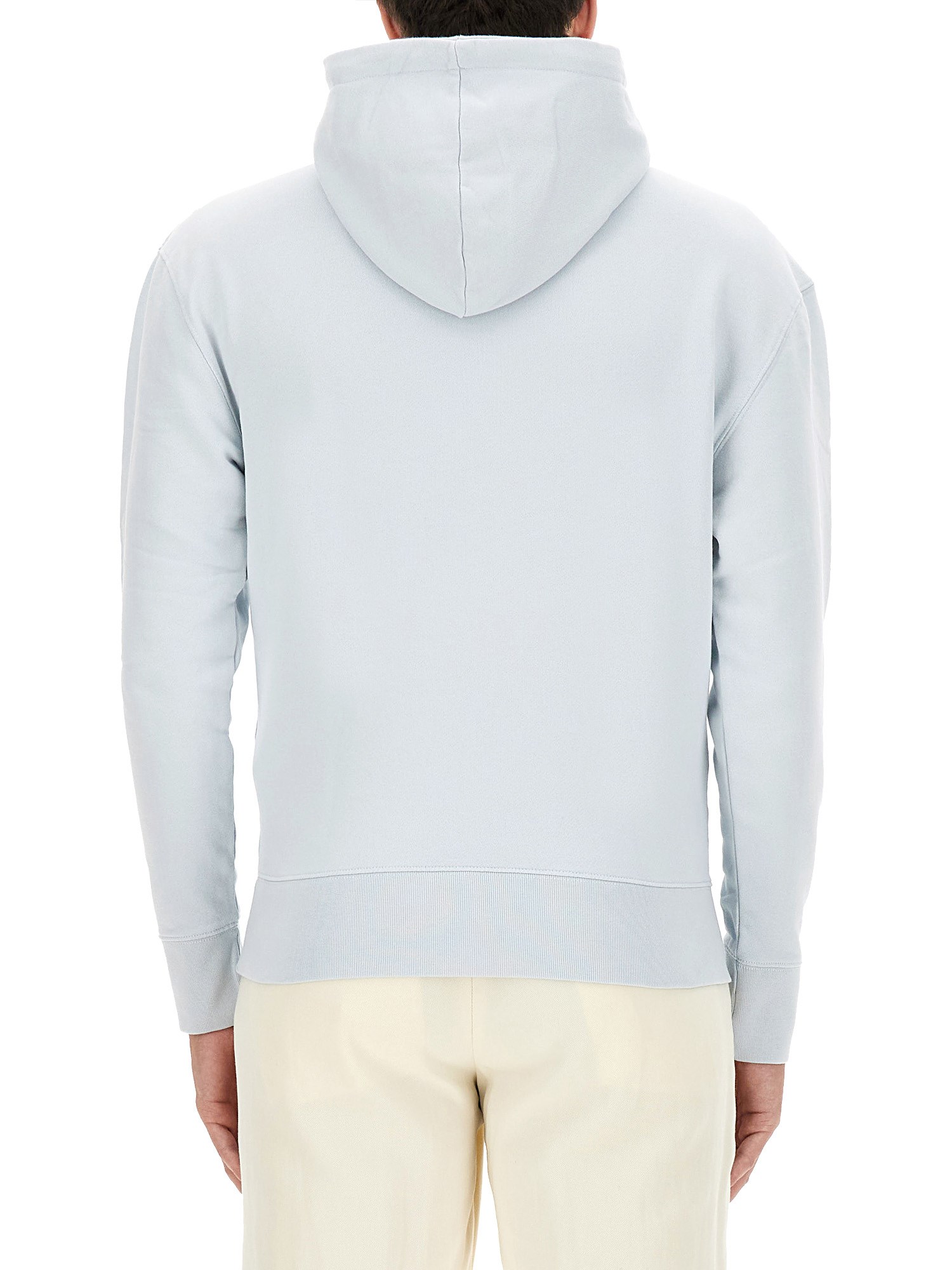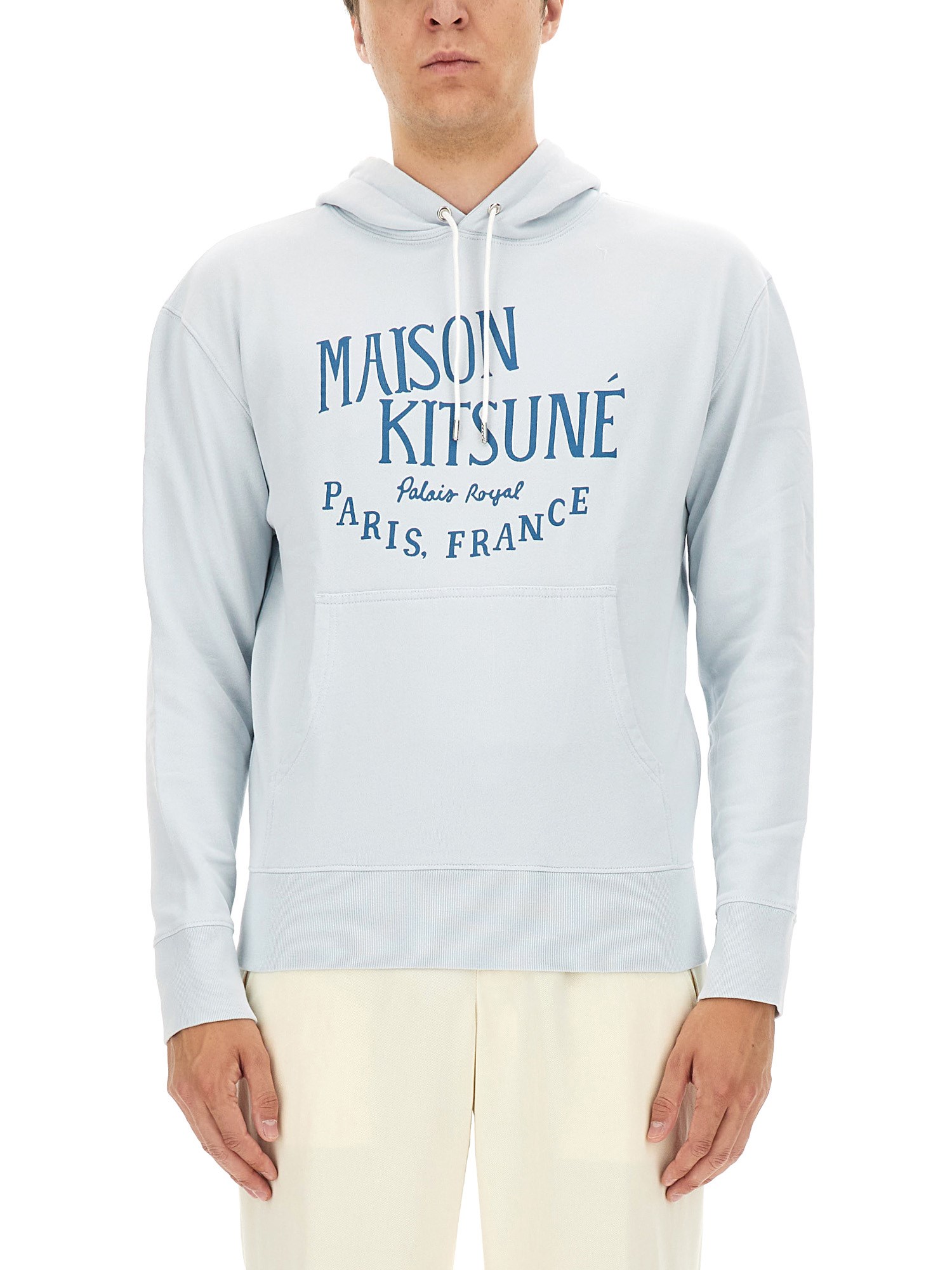 With the cold winter months approaching, this sweatshirt by Maison Kitsuné is the perfect layering piece. It is made of a cotton and polyester blend and has a drawstring hood. The front of the sweatshirt has a large logo print that will add a pop of color to any outfit.