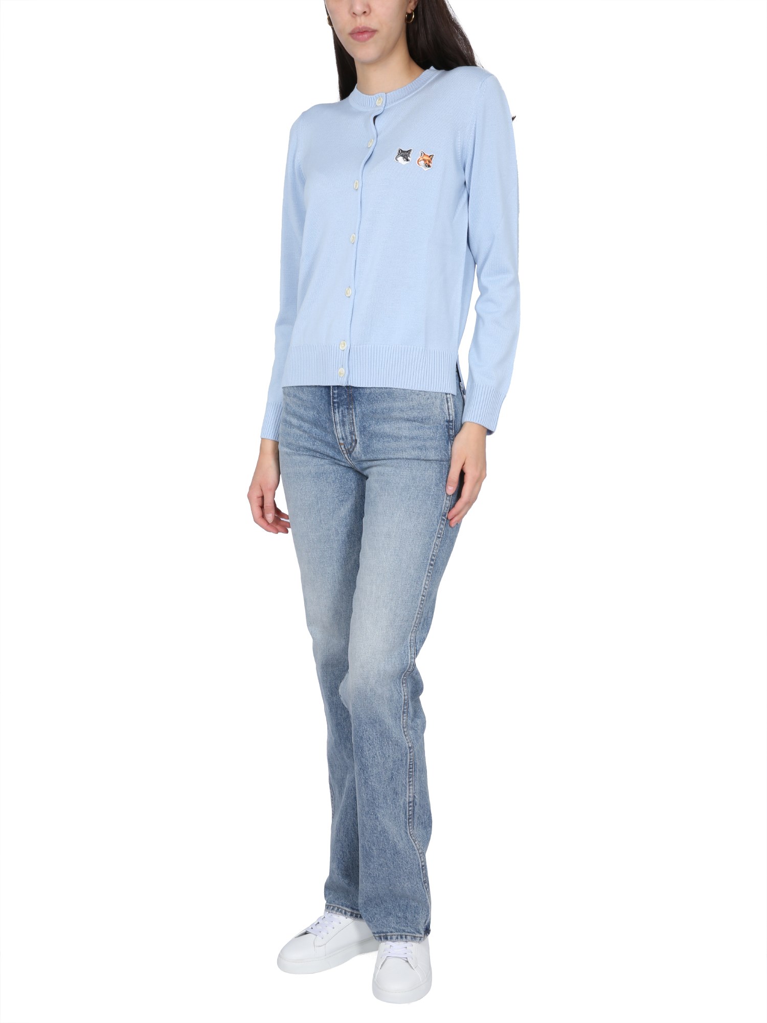 The Woollen Button Front Logo Patch Cardigan from Maison Kitsuné is a great piece to wear during the colder months of the year. The front logo patch and front button closure will add a touch of style to any outfit. The two side slits will give you the perfect fit. It is made of 100% wool which makes it soft and durable.