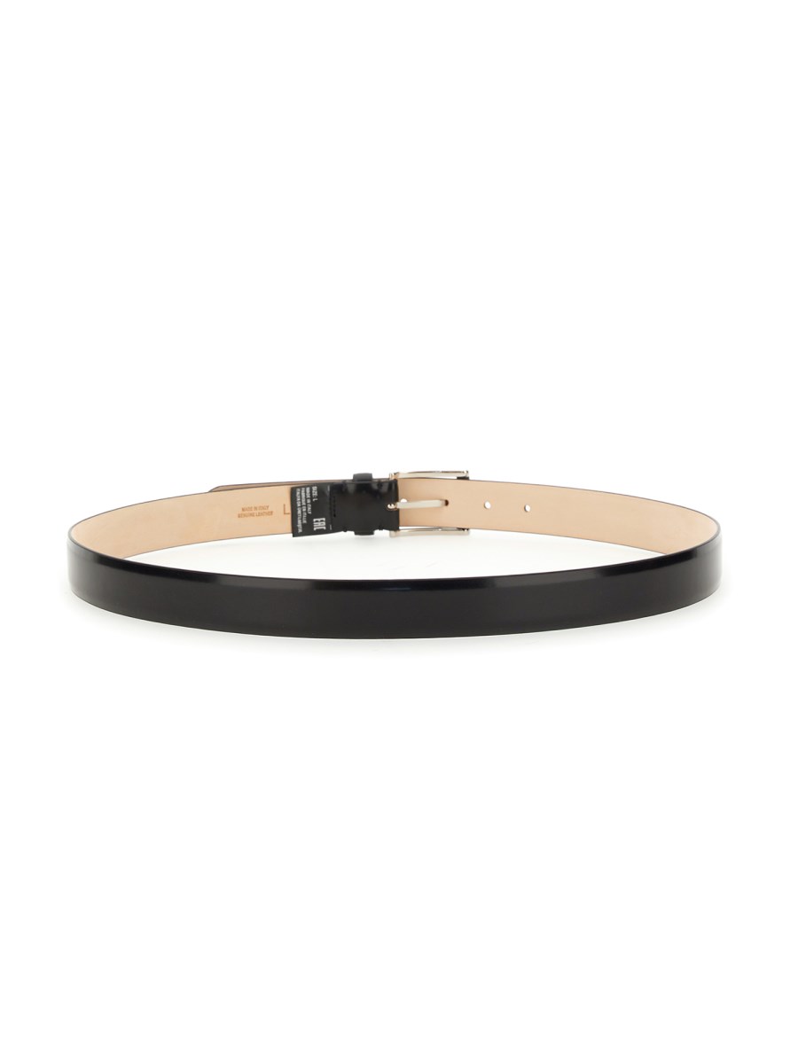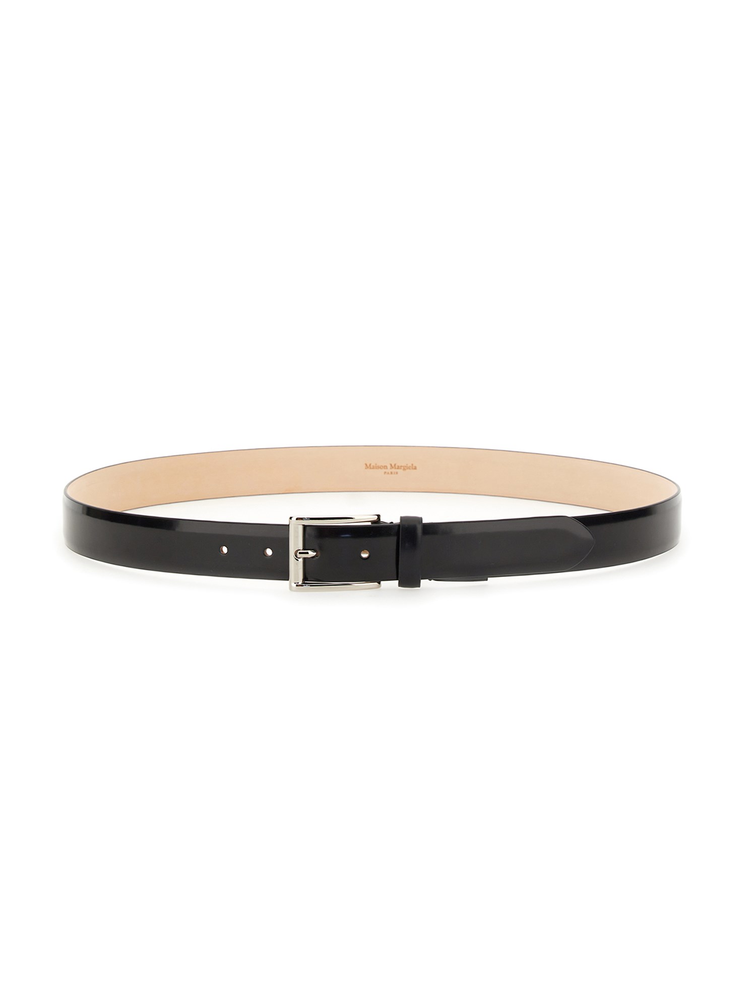 This belt from the house of Maison Margiela is handcrafted with smooth, pebbled leather. The belt has an adjustable buckle closure. It features a wide, thick, solid, full-grain leather strap that is finished with a comfortable, polished buckle.