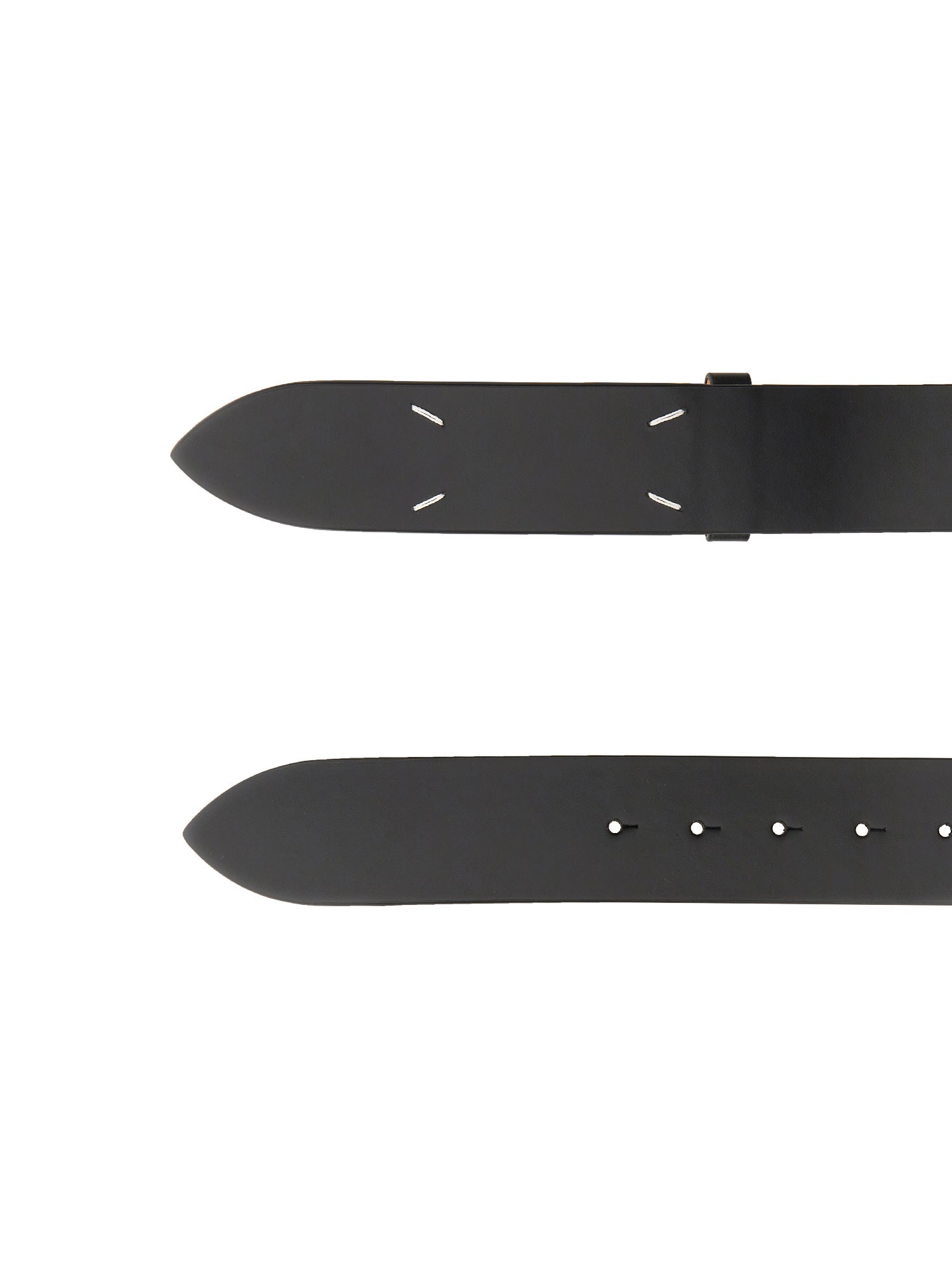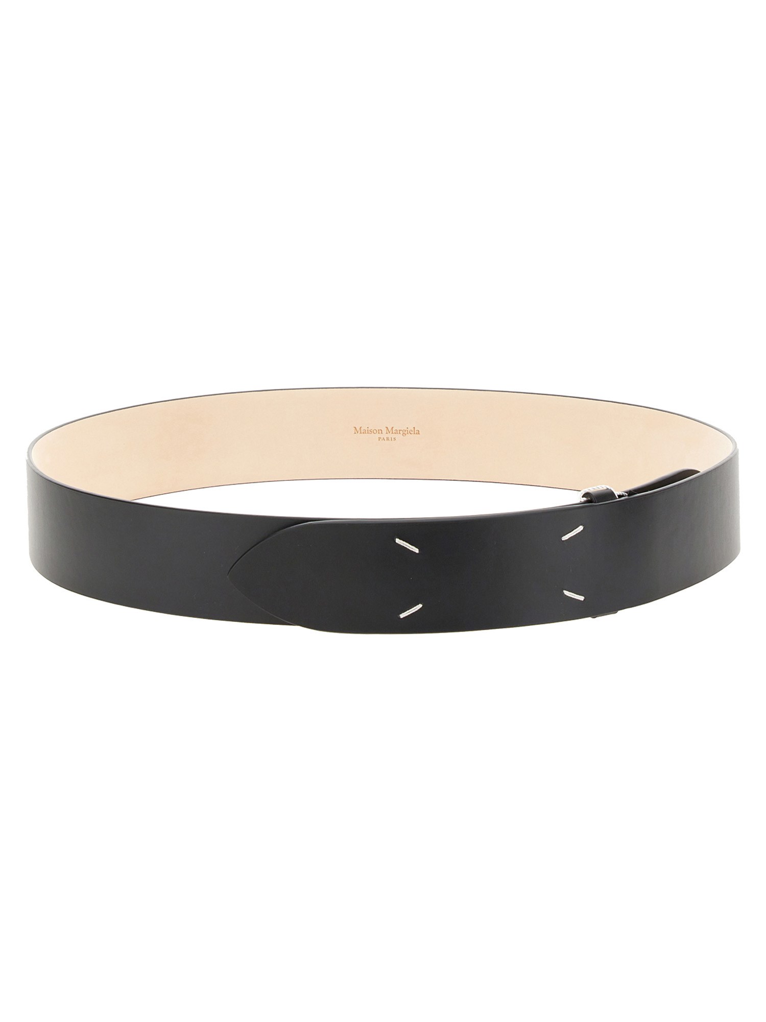 This belt from Maison Margiela is a timeless classic that will never go out of style. This product is a simple yet stylish black calfskin leather belt. The belt features a small round buckle and two simple snaps to close the belt. The belt is perfect for casual or dress wear and can be easily slipped on and off.