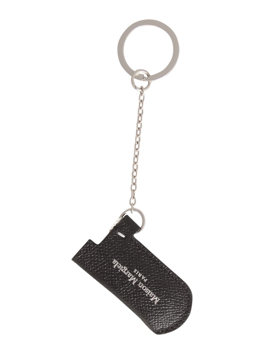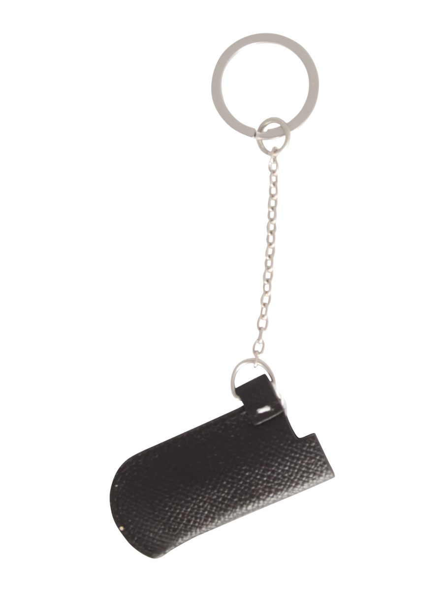 Sporting a natural, earthy look, this leather lighter holder by Maison Margiela is an ideal accessory for the outdoorsy type. This holder features a brass keyring, which can be used to hang it from a belt loop or backpack. The holder is made of genuine leather and includes a metal rivet on the side to securely hold the lighter in place.