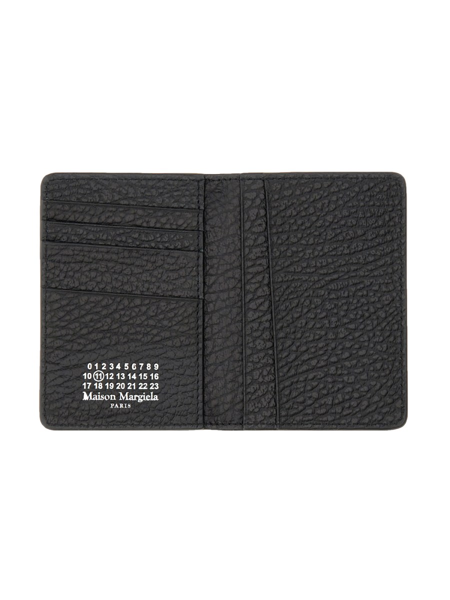 Questo semplice ma elegante portacarte di Maison Margiela ha un esterno in pelle granulata, liscia al tatto e morbida al tatto. Questo lo rende perfetto per l'uomo che ama portare con sé le proprie carte con stile e non vuole portare con sé un portafoglio ingombrante. Questo portacarte in pelle martellata è un accessorio alla moda per ogni uomo che vuole mostrare il proprio stile.