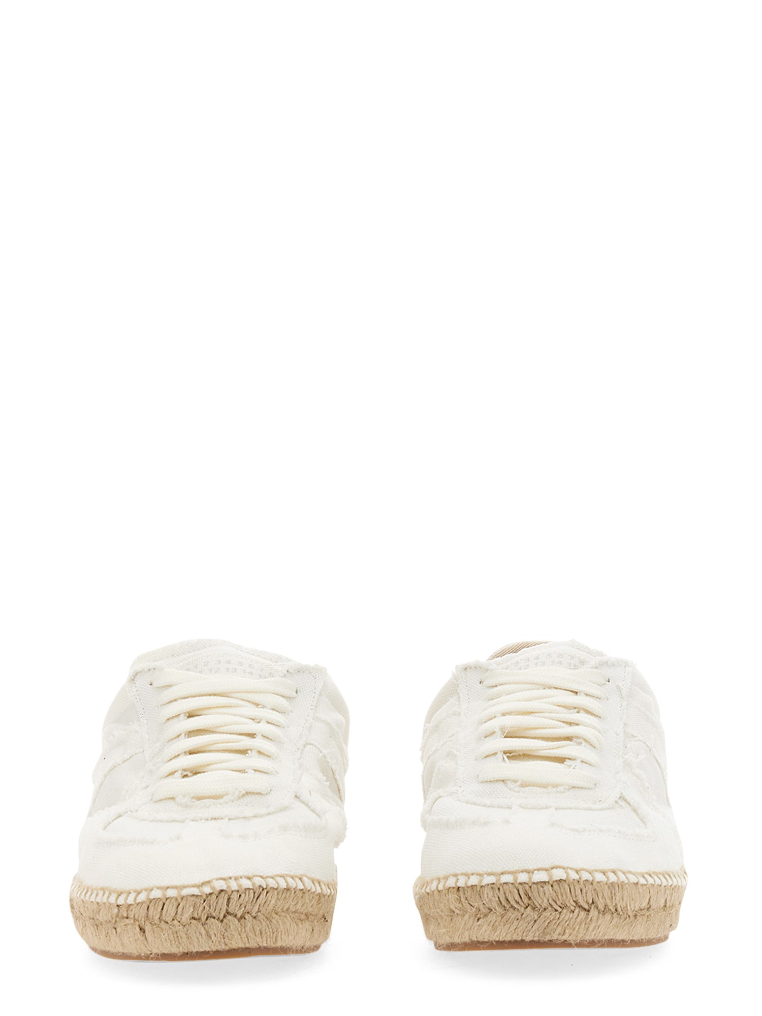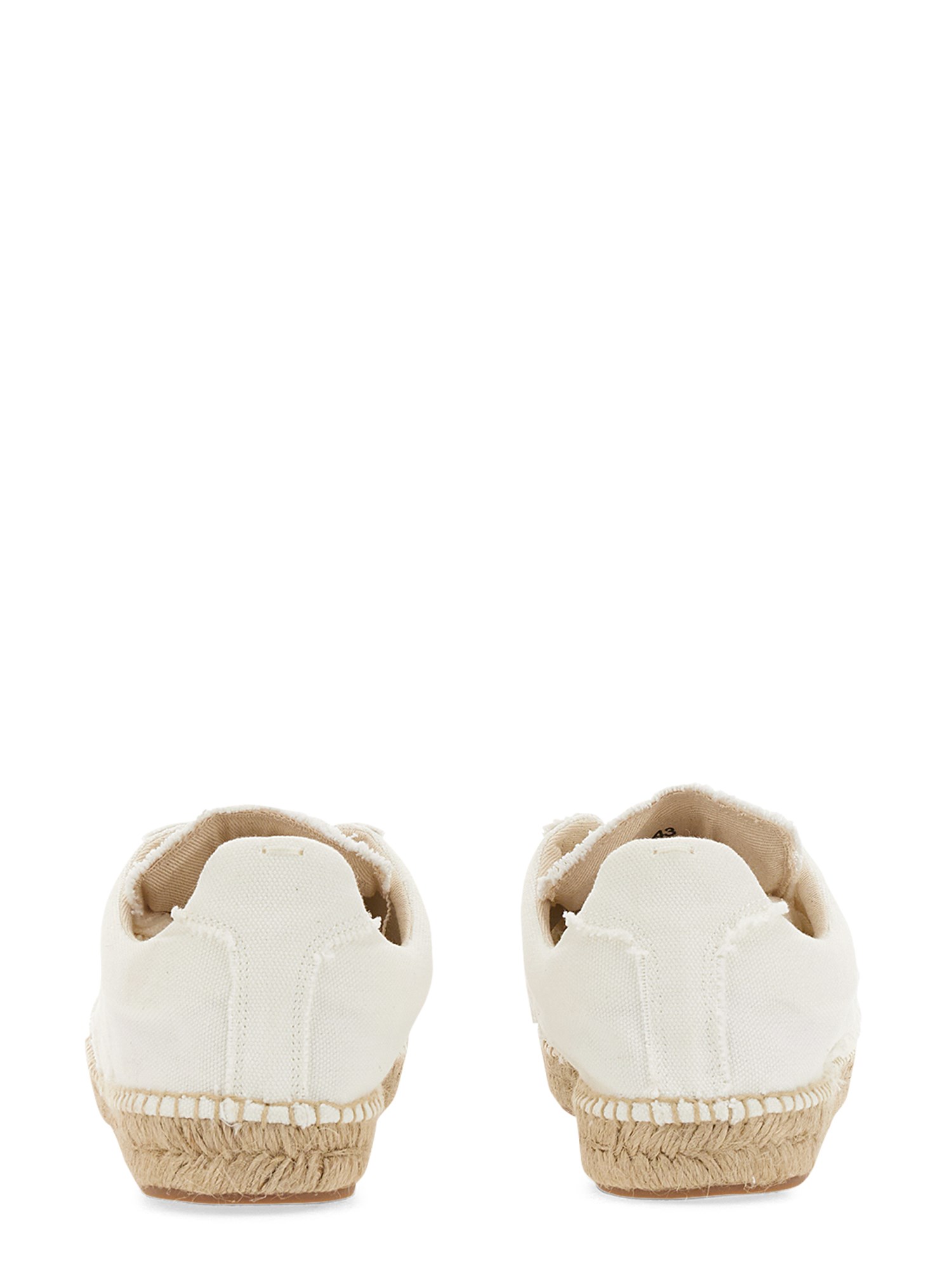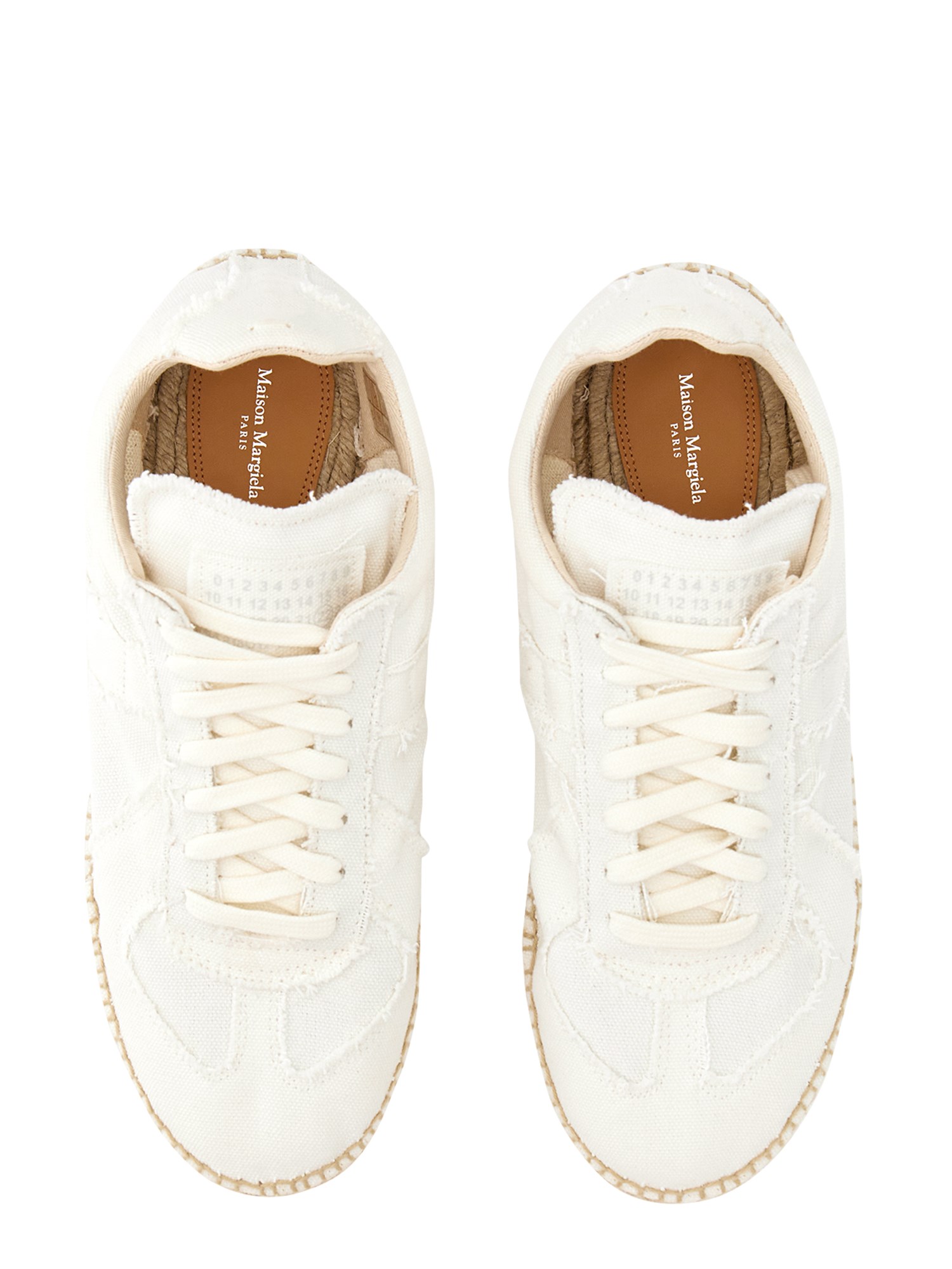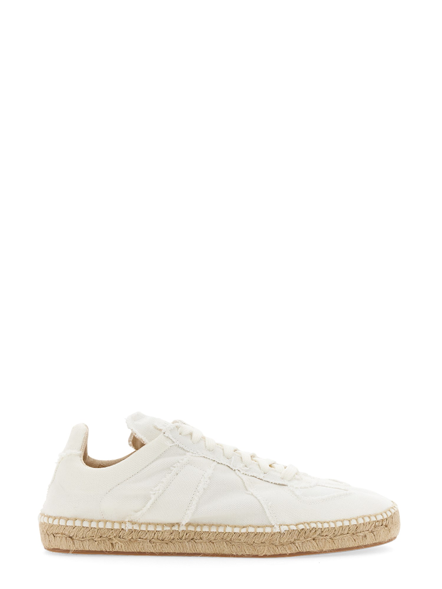 These canvas replica espadrilles from the house of Maison Margiela feature a high-quality, cotton upper and lightweight rope sole with rubber bottom. You'll love the comfort and durability of these espadrilles. A lace-up pair of canvas espadrilles for a comfortable, stylish look.