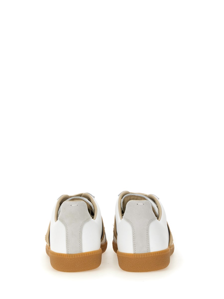 Treat your feet to ultimate comfort and style with Maison Margiela's Replica sneakers. Designed with durable leather construction, these sneakers offer a secure lace closure and a timeless round toe design. From brunch dates to casual outings, these sneakers will effortlessly elevate your outfit.