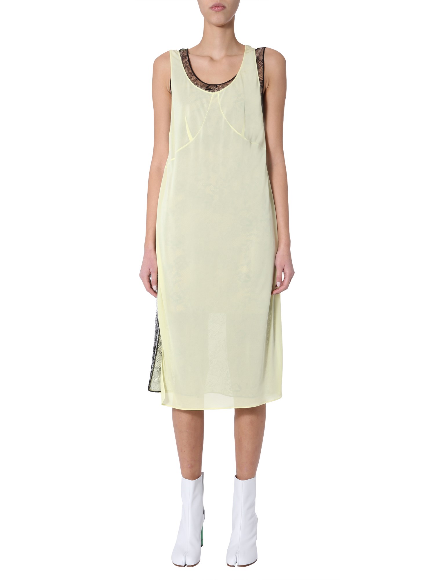 Dress in a way that no one has ever tried before with this panel dress designed by Maison Margiela. Not only this dress has an airy structure to keep you cool and comfortable but is also stylish enough to look awesome with any type of shoes. Plus, the lace details on the inner lining add a touch of grace on your overall appearance.