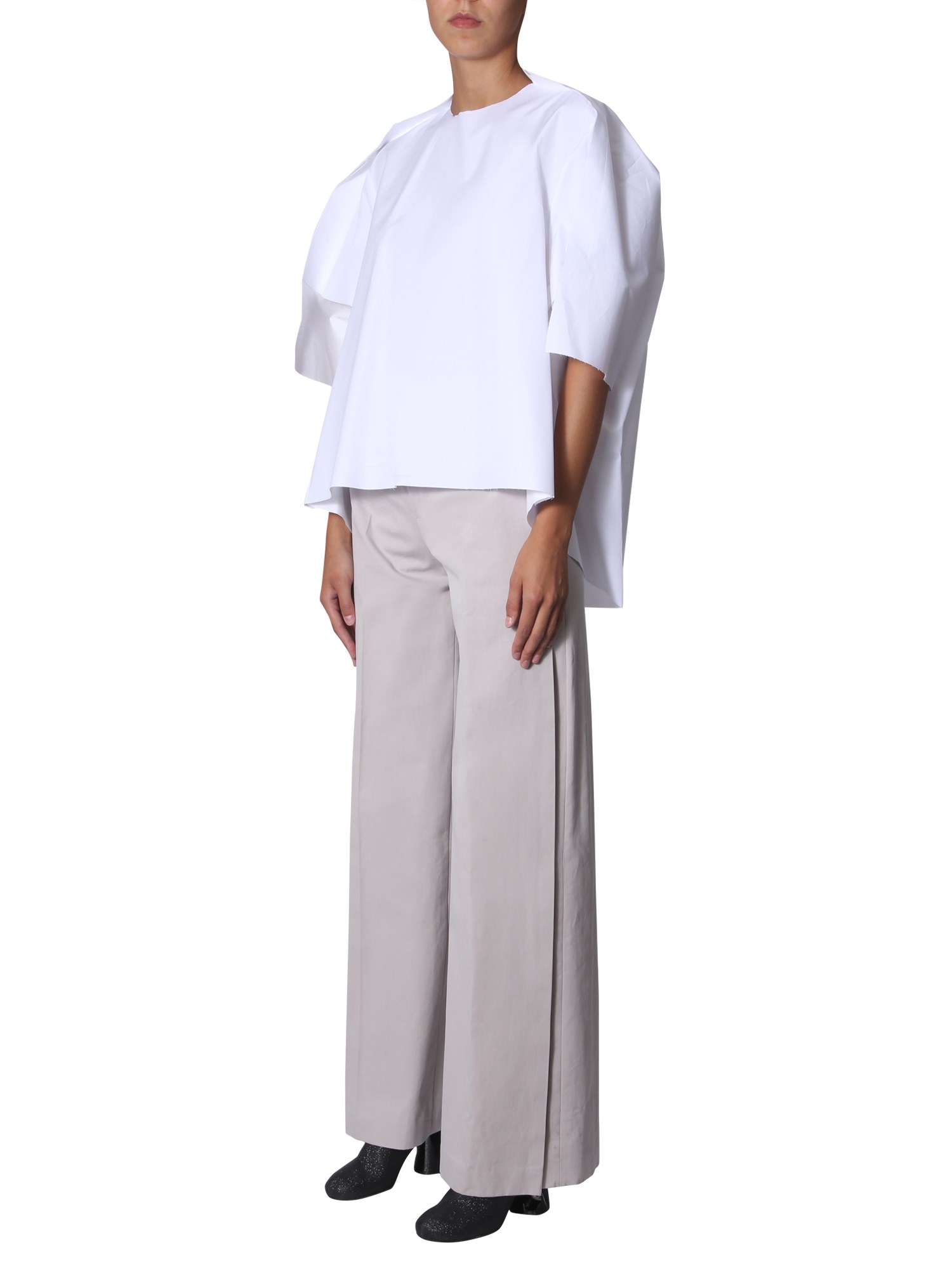 Create an unusual style statement with this loomed shirt from Maison Margiela. The garment is made of pure cotton fabric that is perfect for the hot summer season. Its plain exterior is uniquely designed with a longer back panel. You can wear it with formal pants and heels for a formal look.