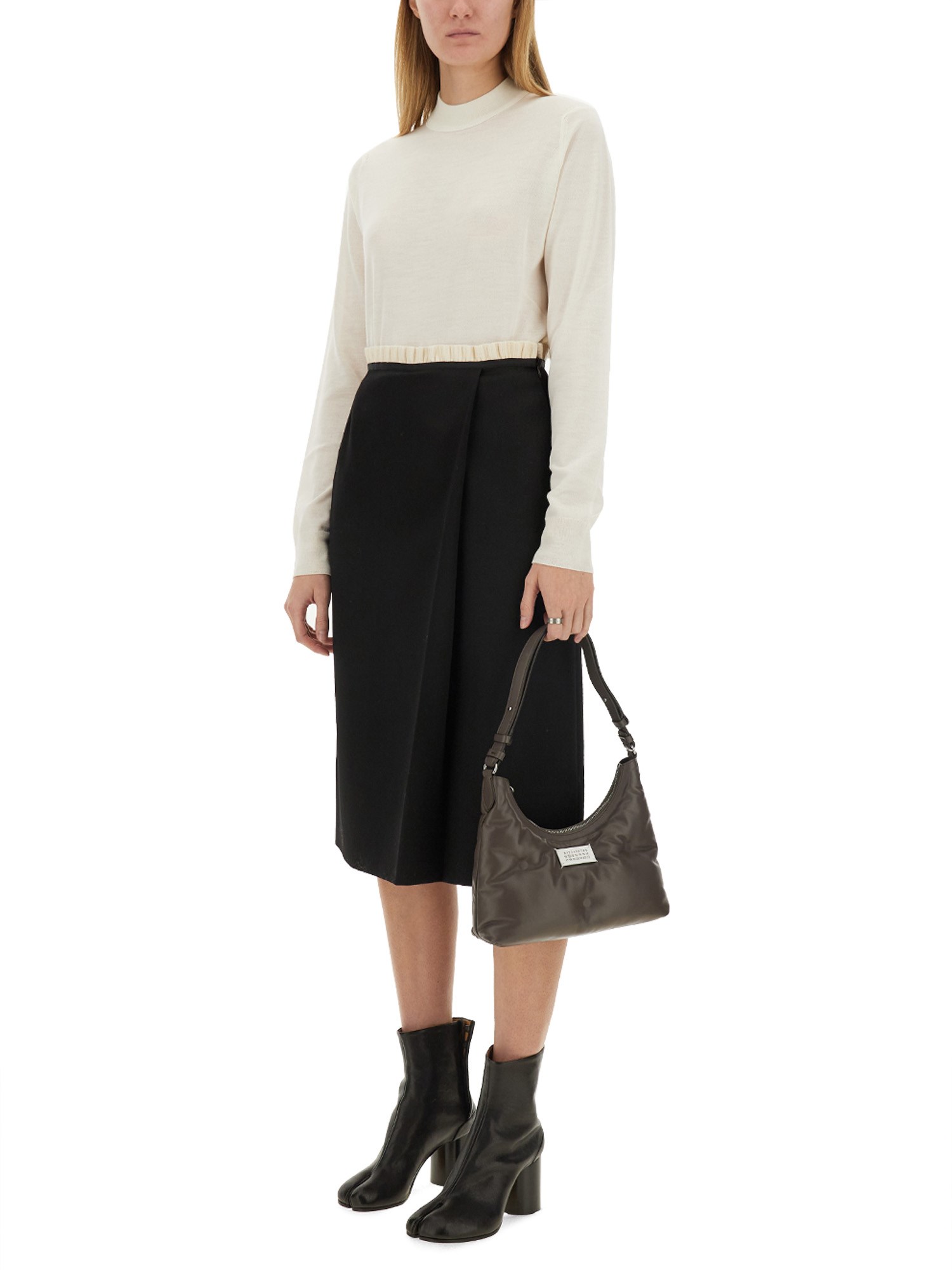 This exquisite wool skirt from Maison Margiela embodies sophistication and contemporary elegance. Crafted from high-quality wool, it offers both warmth and comfort, making it a versatile addition to any wardrobe. The skirt features a tailored silhouette that flatters the figure, while its minimalist design reflects the brand's avant-garde aesthetic. Ideal for both casual and formal occasions, this piece can be effortlessly styled with various tops and accessories, ensuring a chic look for any event.