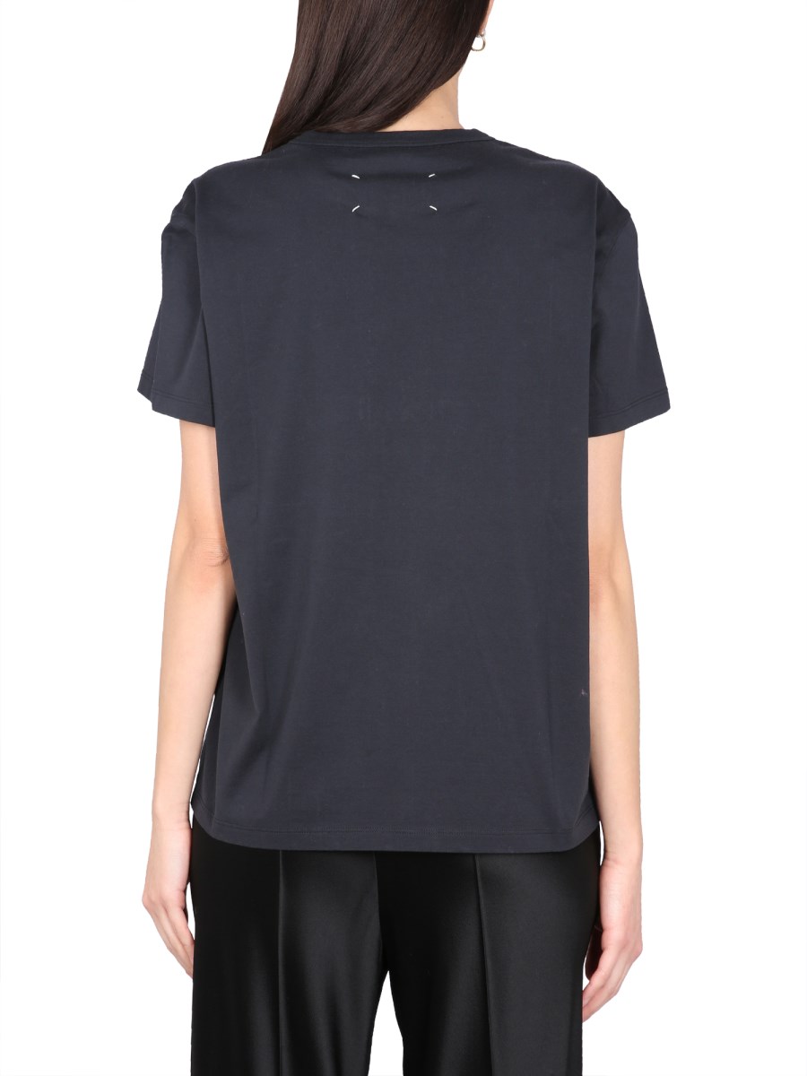 Maison Margiela's oversize fit cotton T-shirt is a fashionable, versatile piece that can be worn with any pair of slacks, shorts, or jeans. The cotton material is light and airy, and the loose cut is great for wearing on its own or as an underlayer. This T-shirt is an essential part of any outfit; it will never look dated.