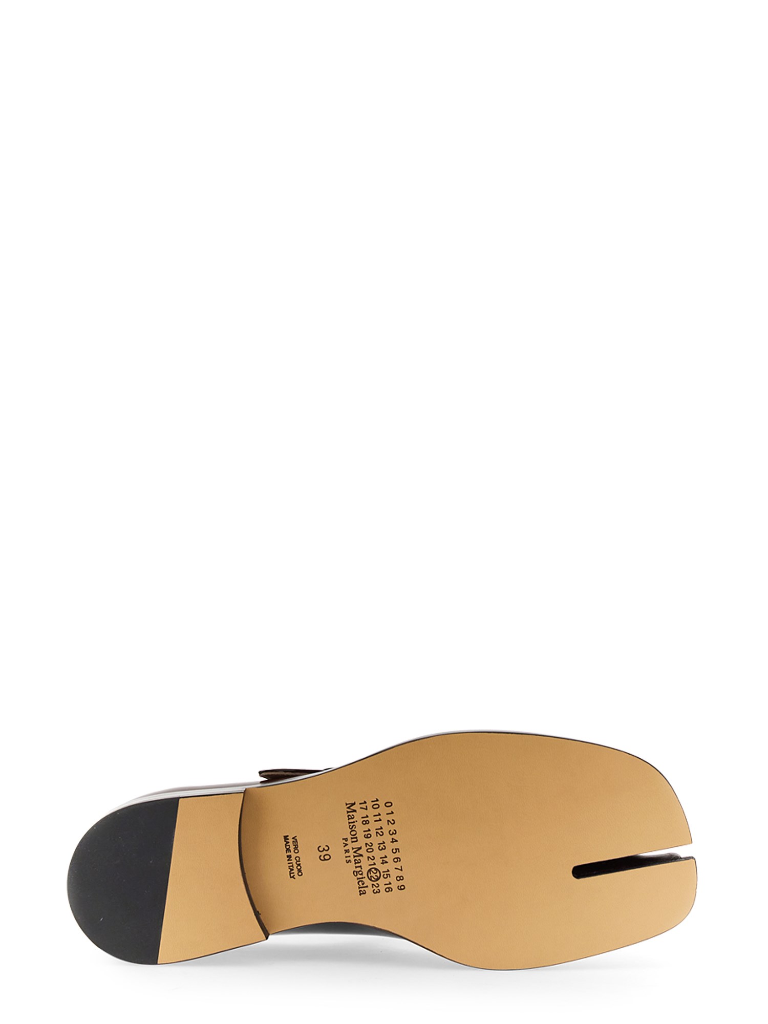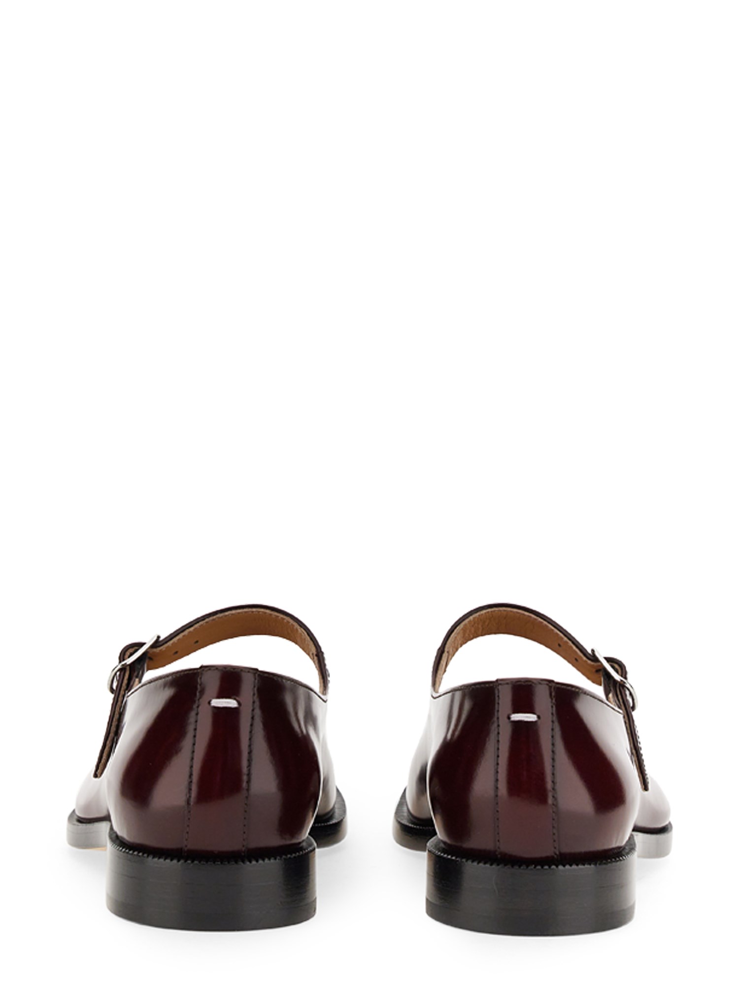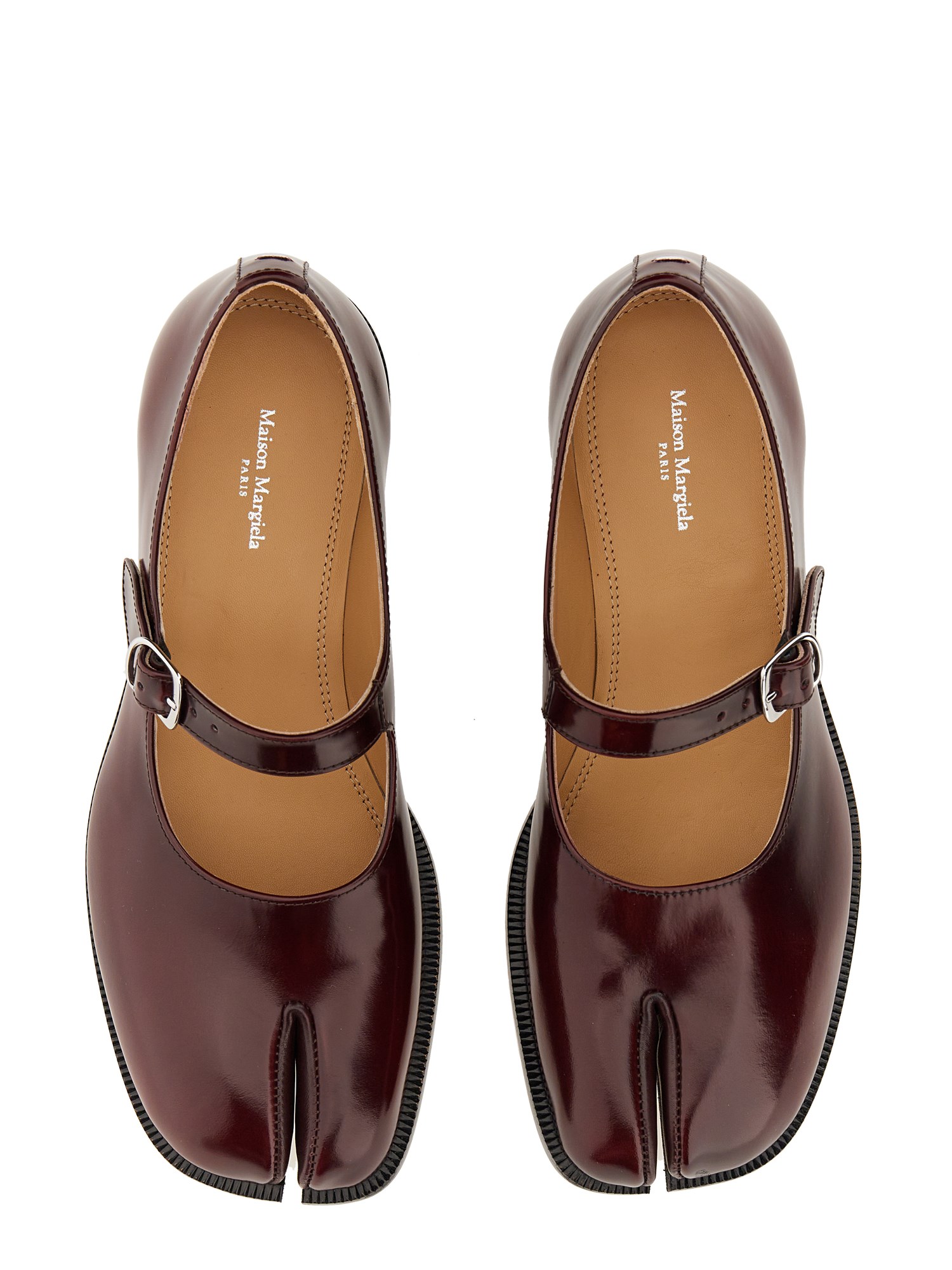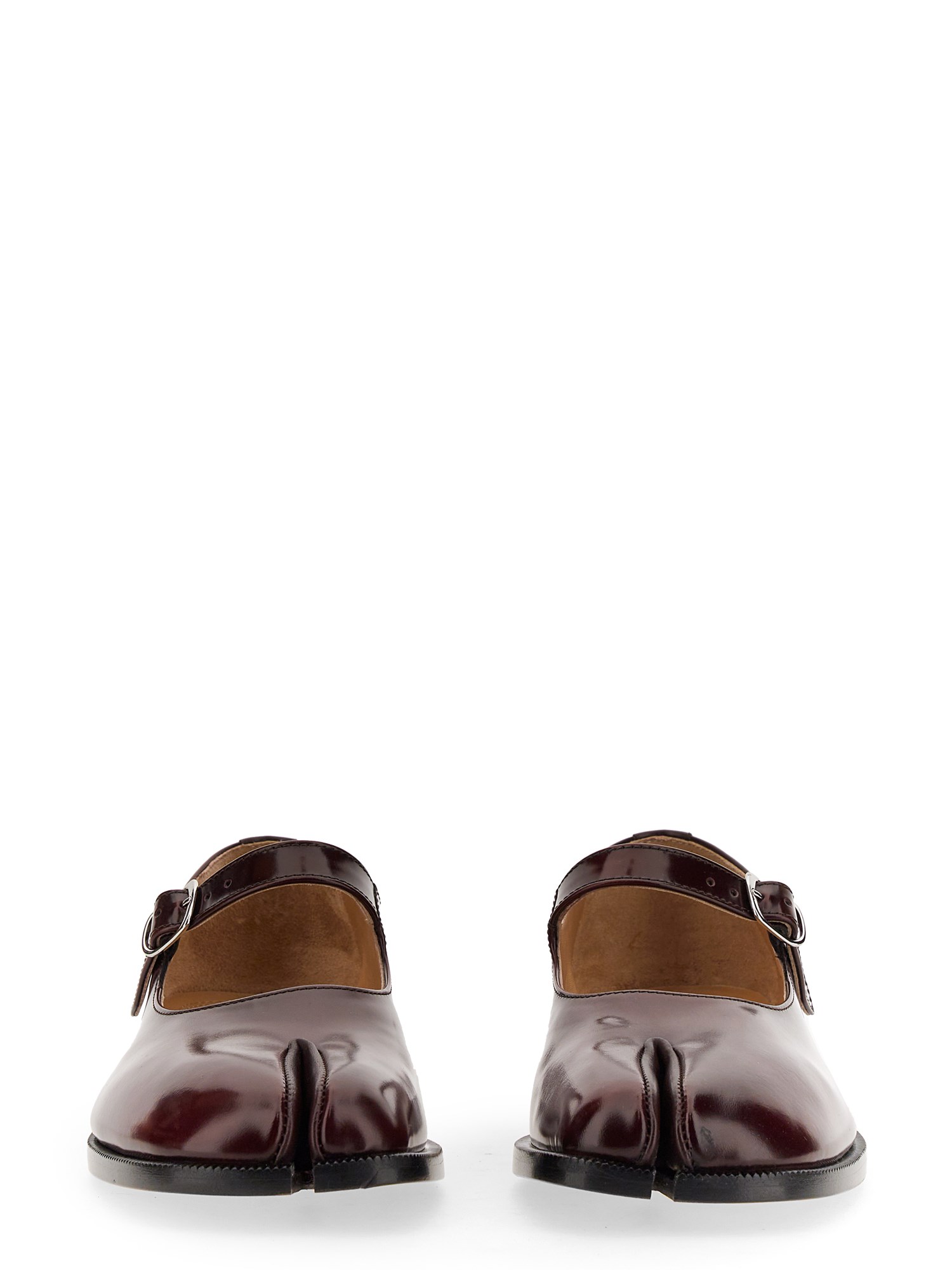The sleek, stylish design of the "Mary-Jane" leather tabi from the house of Maison Margiela is perfect for your casual outings. It features a leather sole, strap and buckle closure, and an iconic tabi toe. The insole is made of a high-quality material that grips your foot with every step.