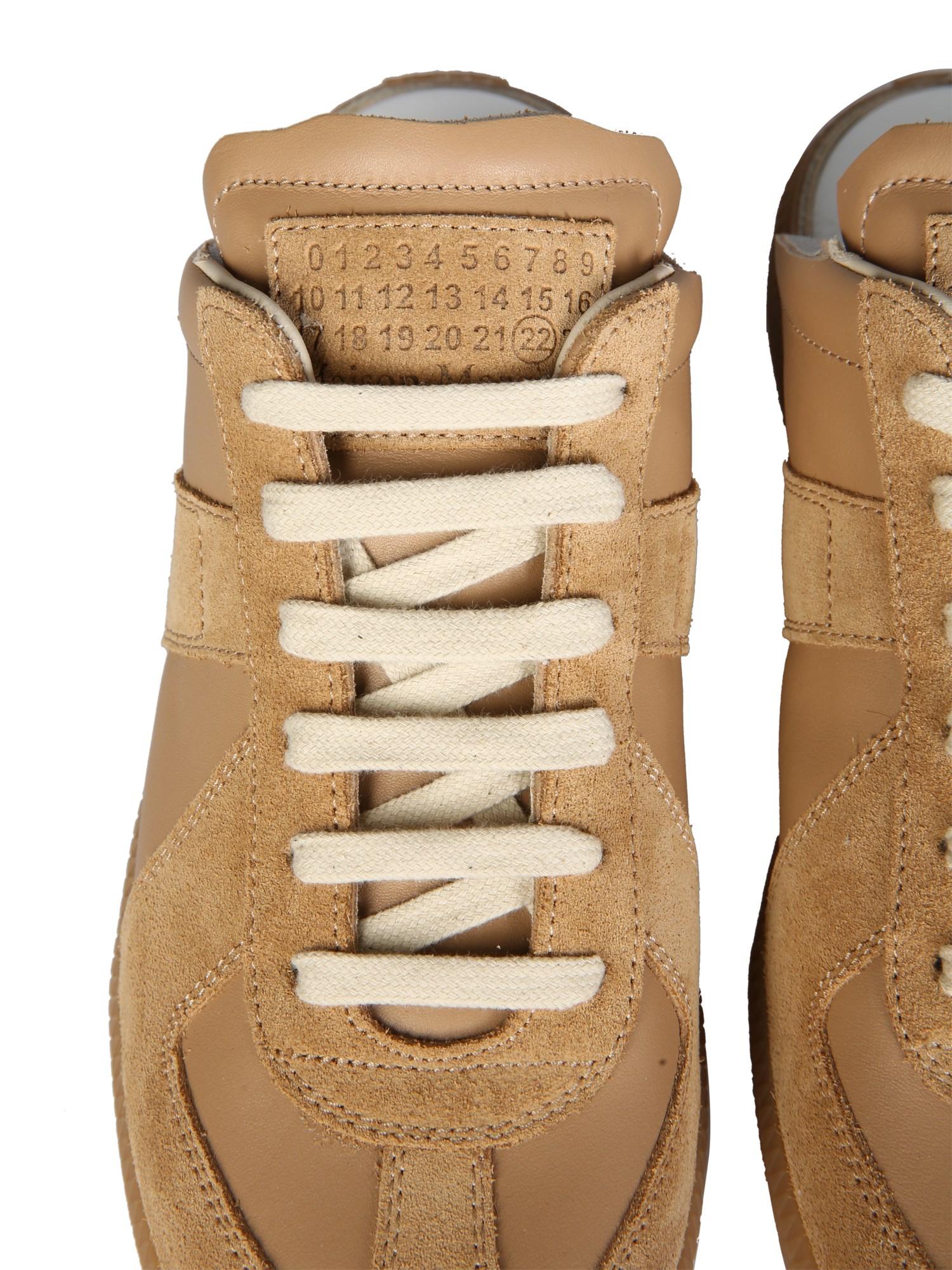 The replica cut-out sneakers by Maison Margiela would create a lasting impression on everyone. They have a 3 cm rubber sole for arch and foot support. These sneakers with a leather and suede upper and live cut profiles give a stylish finish. It features flat lace and a round-toe design for comfortable wear.