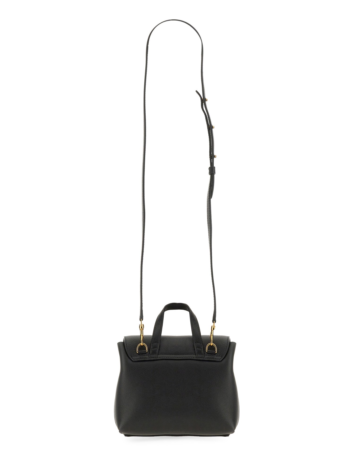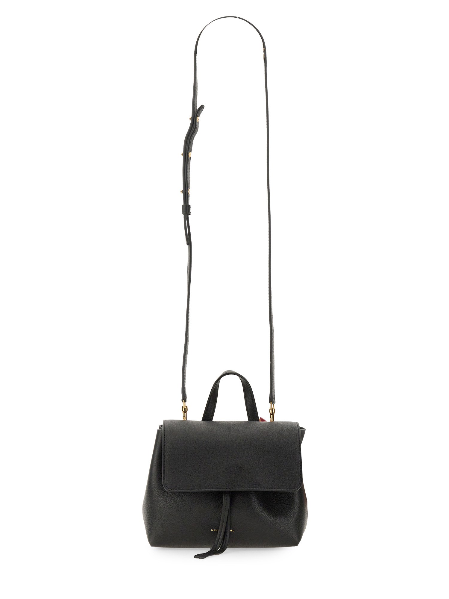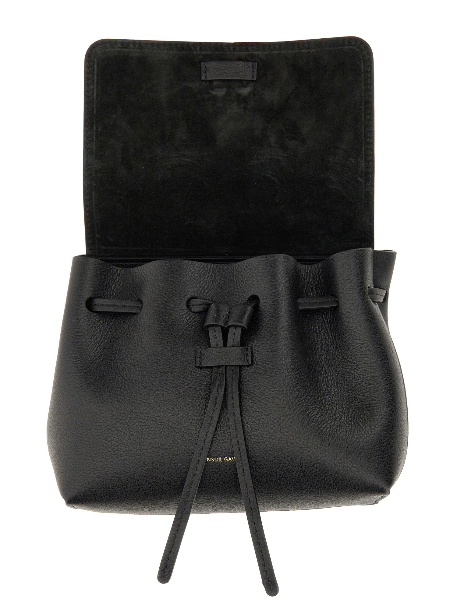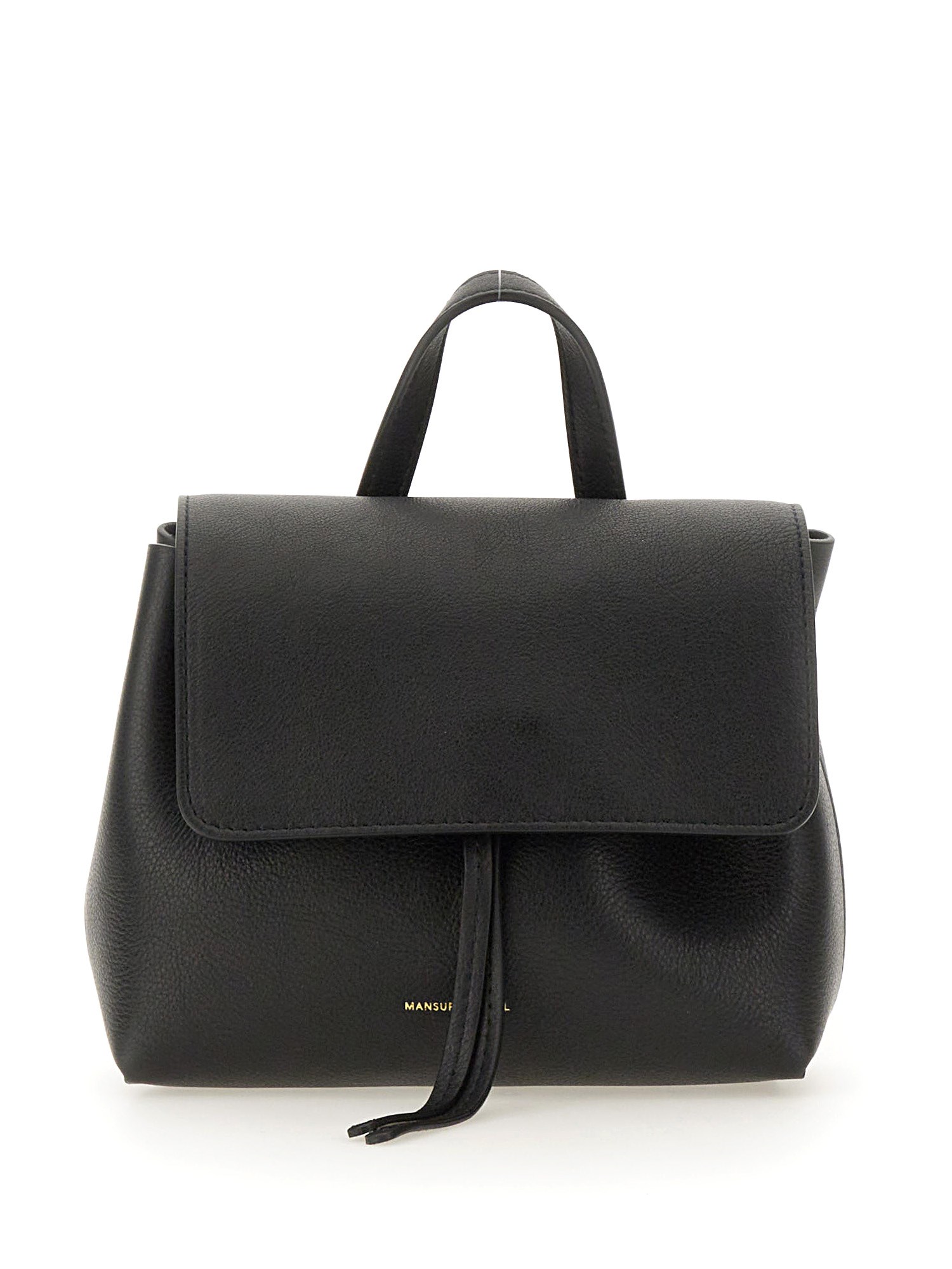 This sleek and compact accessory from Mansur Gavriel is the perfect addition to your collection. The bag features a front drawstring closure, allowing you to easily access your belongings while keeping them secure. The adjustable handle offers convenience and comfort, allowing you to customize the fit to your preference. Made with high-quality black leather, this mini bag is both durable and stylish, providing a touch of elegance to any outfit.