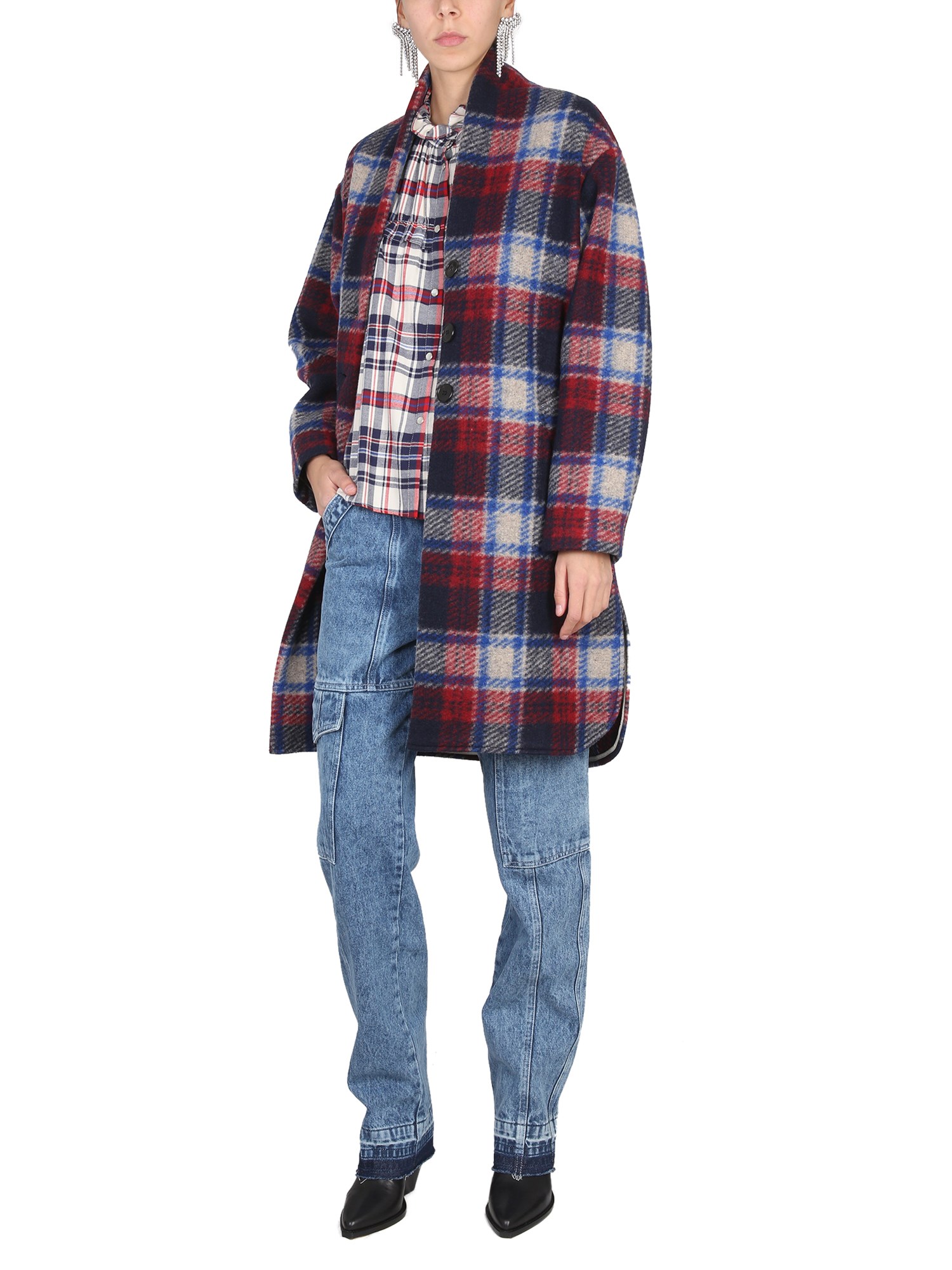 This classic plaid coat from Marant Étoile is a stylish way to layer up for the cold weather. Made of 100% polyester and lined with fleece, this coat has a front button closure and an embroidered logo on the left chest. This is a regular fit coat that will look great with jeans or leggings.