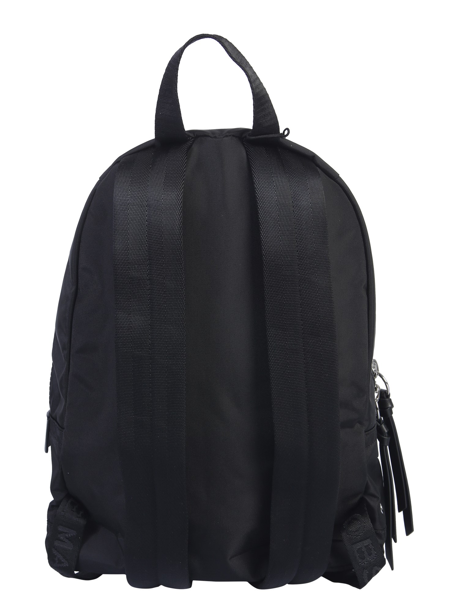 The medium-sized backpack by Marc Jacobs will be your favourite college companion. This bag is made of 100% nylon for wear-resistance and easy washing. It has stretch pads and handles so that you can carry the bag comfortably. These pads and handle are logoed to add a style factor to the basic bag. The front side has a zip pocket to carry small knick-knacks easily.