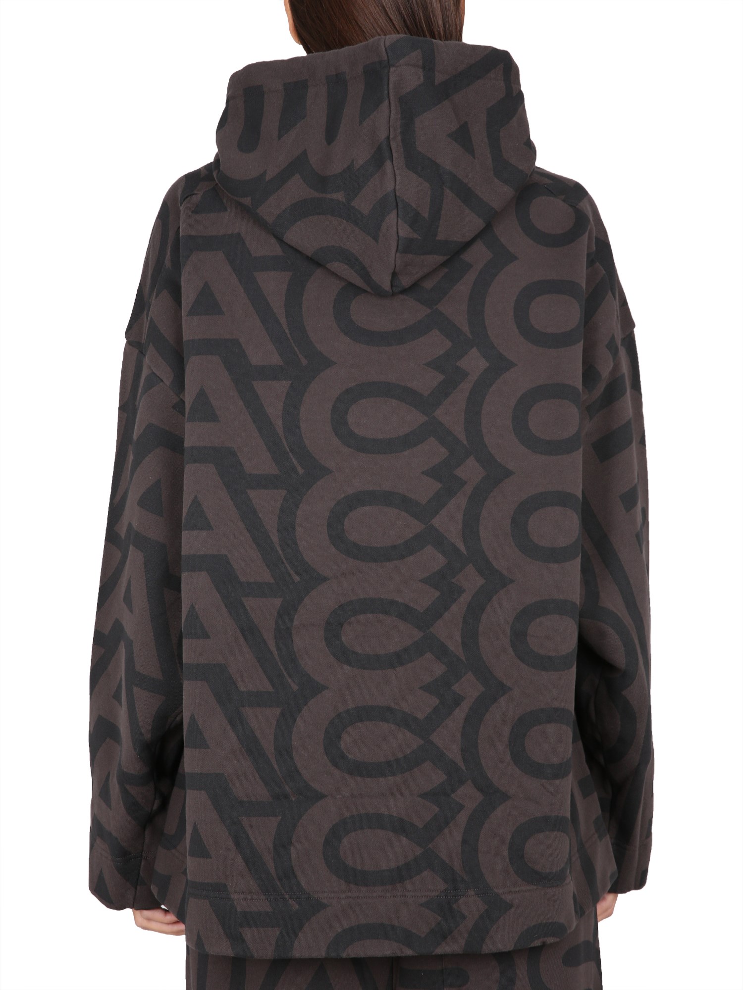 A comfortable sweatshirt from Marc Jacobs that is made from a stretchy, durable cotton blend. The sweatshirt has a hood with a drawstring that allows for an oversize fit. The hood with drawstring oversize fit cotton sweatshirt is a must have this season. With a comfortable material and a perfect fit, this sweatshirt is the perfect addition to any closet.