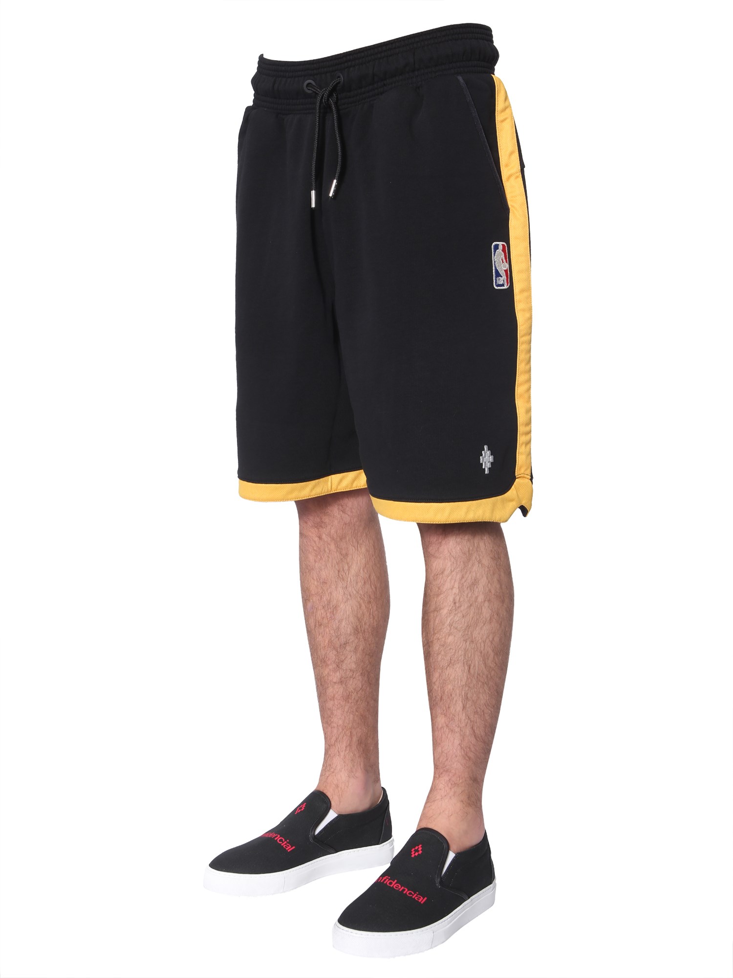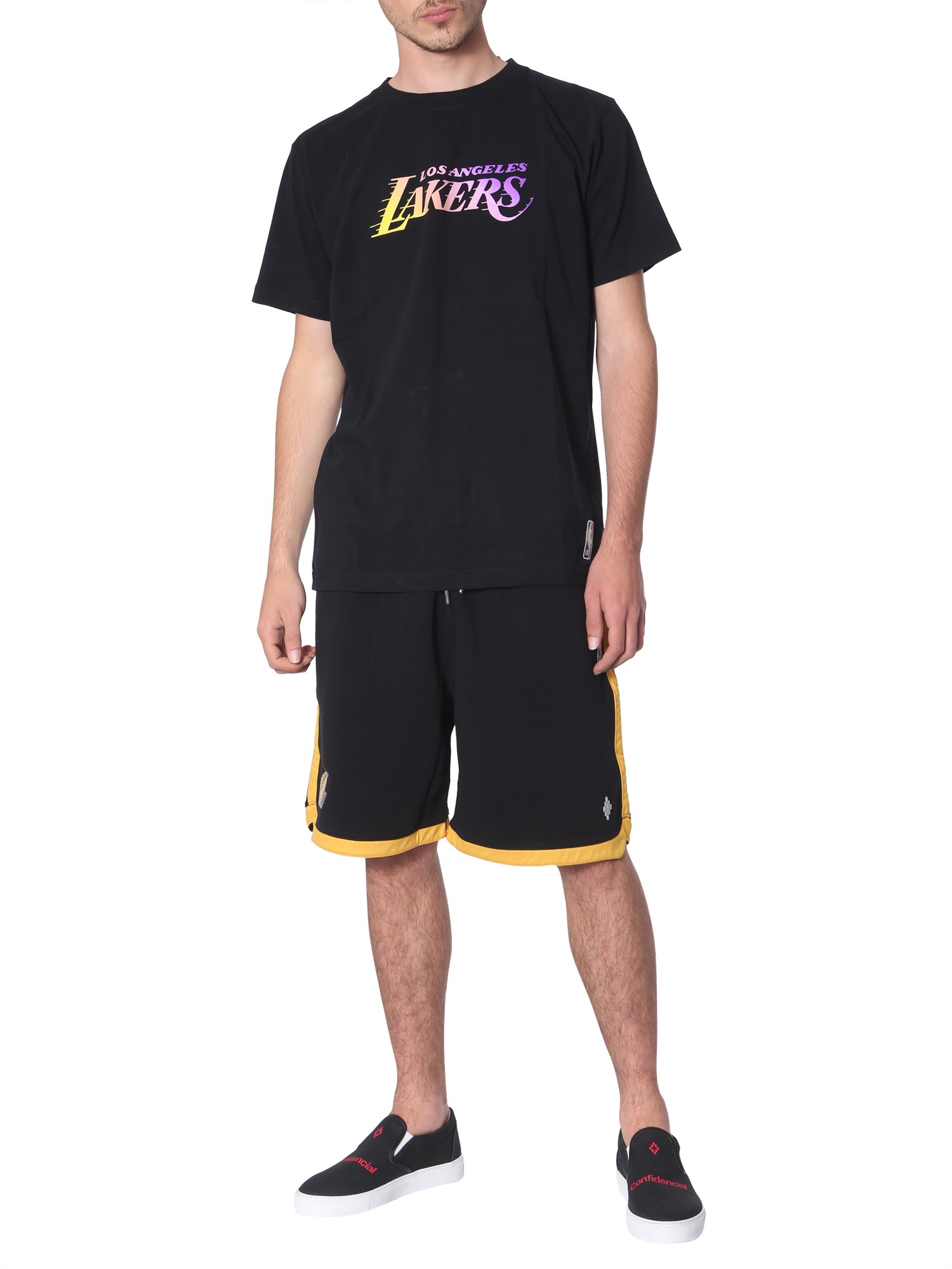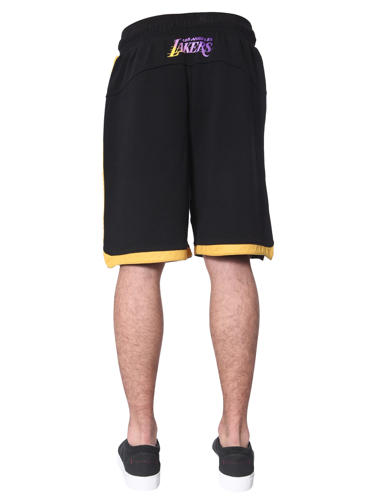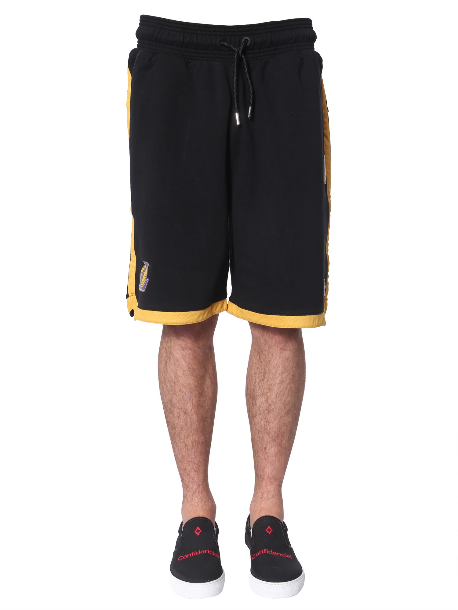 Lounging in the house or running a house errand on weekend, these comfy lakers shorts from Marcelo Burlon County of Milan is a nice catch. The shorts are made from good quality cotton that ensures breathability while the elastic waistband provides a comfortable fit around the waist. The reflective side panel detailing adds a style to these shorts.