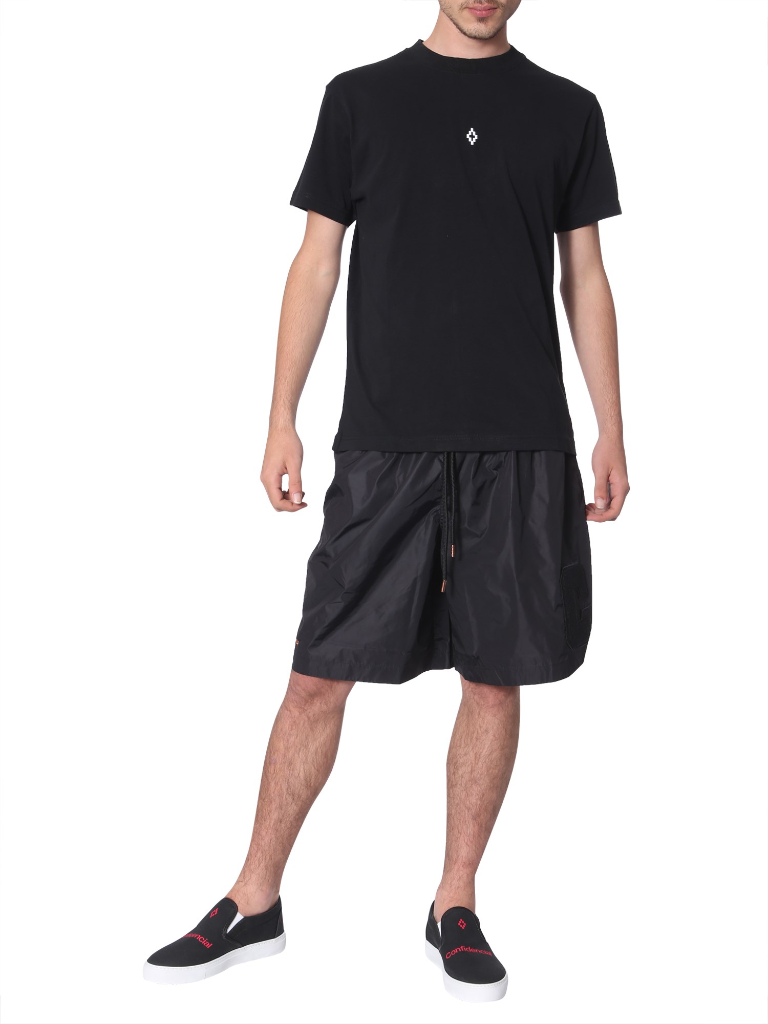 Inspired from a famous boxer, these Muhammad Ali shorts from Marcelo Burlon County of Milan is a blend of looks and comfort. It is made from 92% polyamide and 8% polyurethane to ensure comfort and easy maintenance. It features an elastic waistband with two pockets in front for functionality.