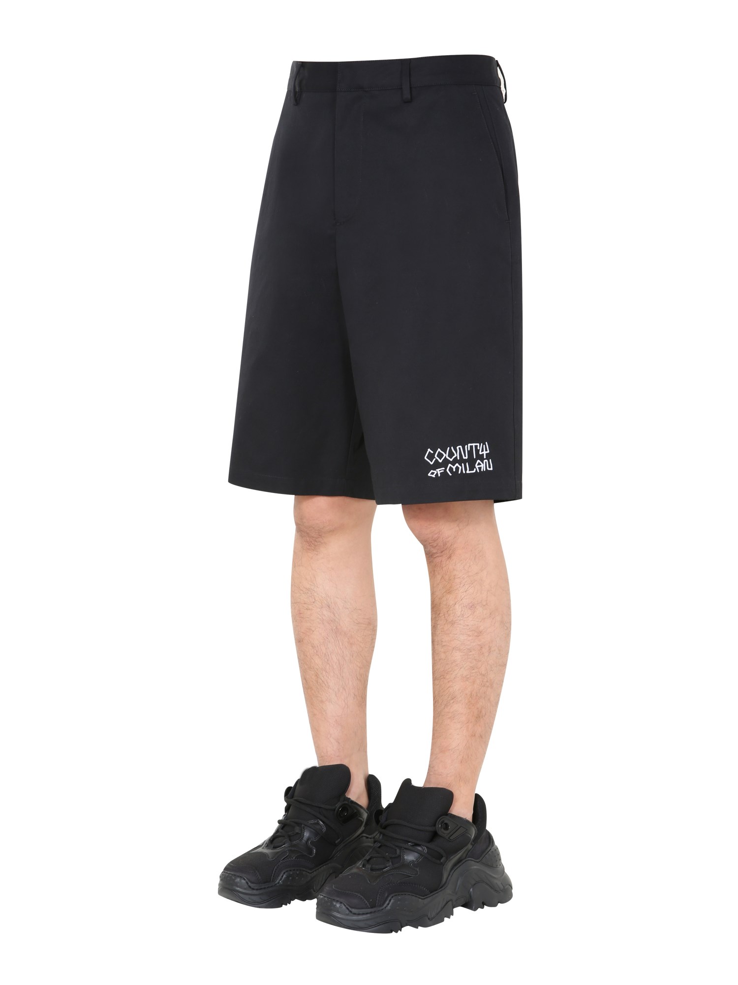 Feel comfortable and relaxed this summer with the Marcelo Burlon County of Milan “COUNTRY” Bermuda. This super flexible Bermuda has a zip and hooks closure along with two side pockets and two back pockets to carry your stuff. Other than this, the embroidered logo on the bottom looks stunning. This comfy Bermuda is made of 100% cotton material.