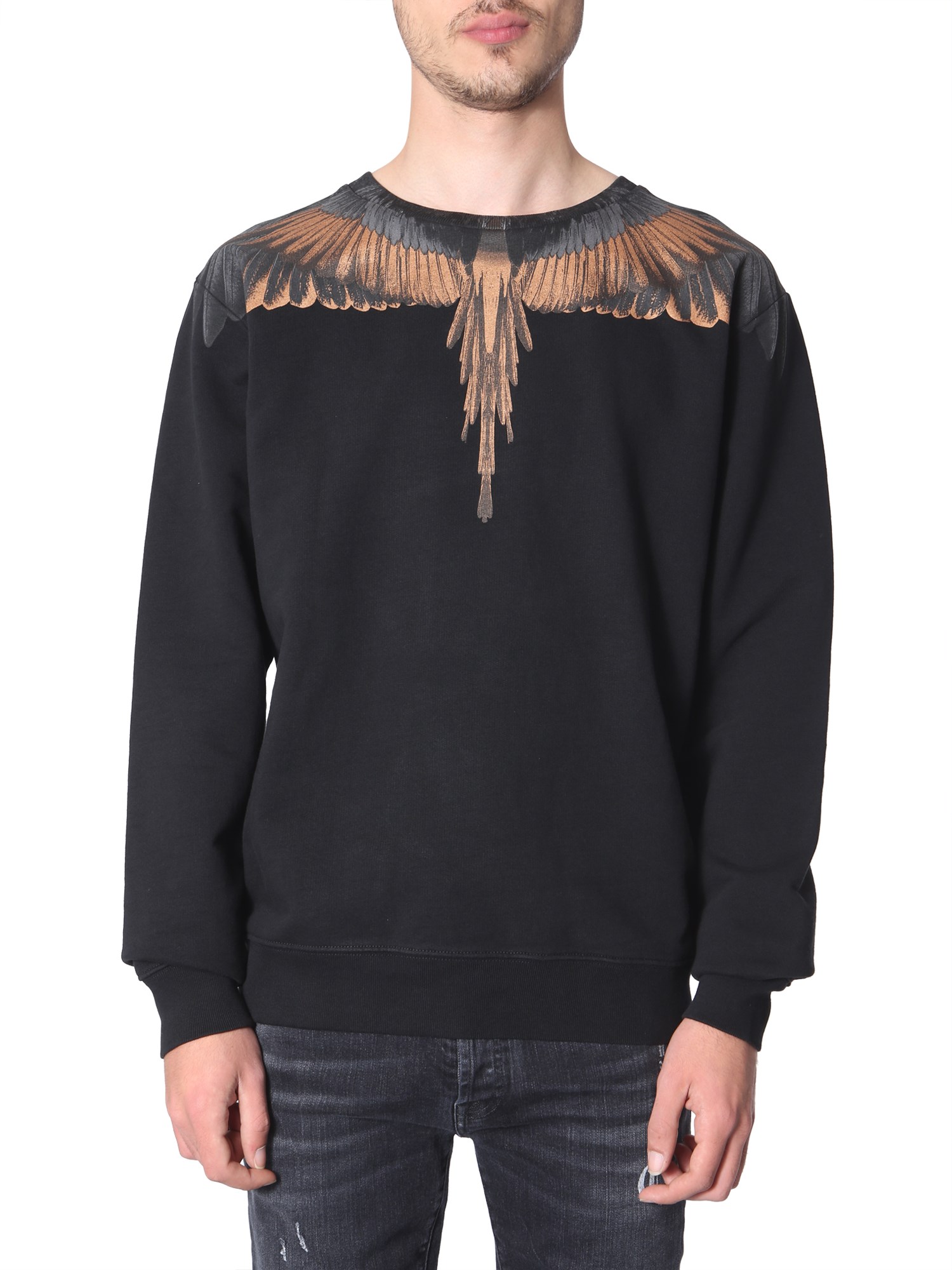 Bored with the sweatshirts in your wardrobe? Try this crew neck sweatshirt from Marcelo Burlon County of Milan to add a distinct touch to your closet. It is made from 100% cotton with brushed interior that feels soft against your skin. It features a printed front panel that allows you to pair it with any bottom wear in your closet.