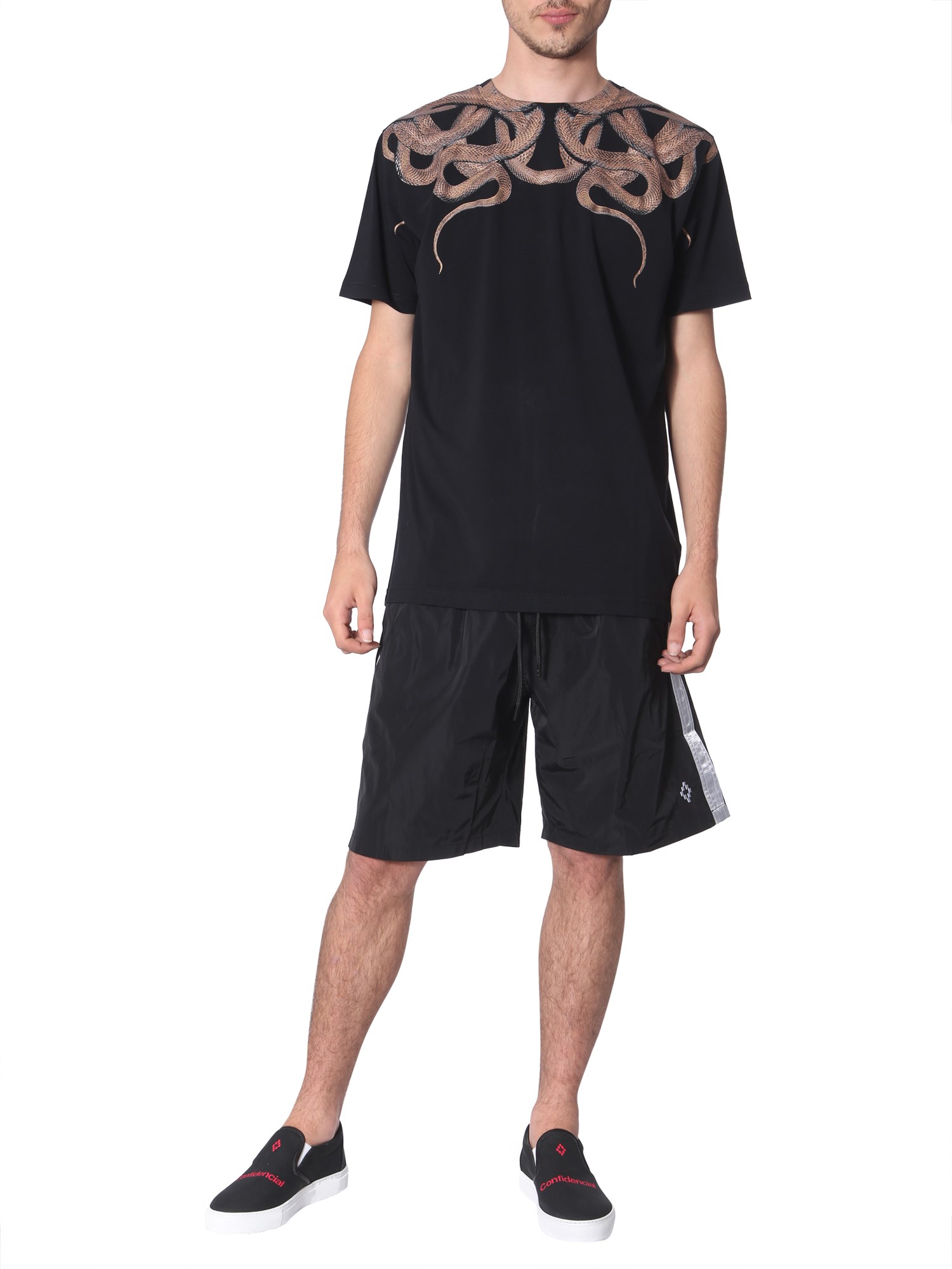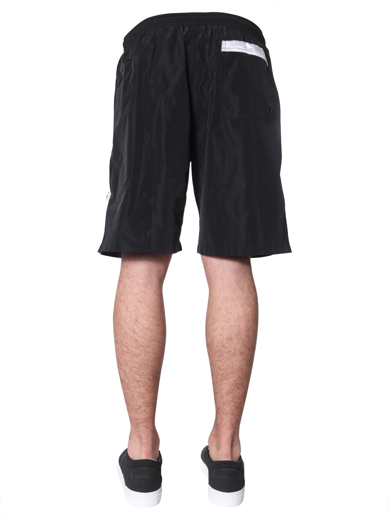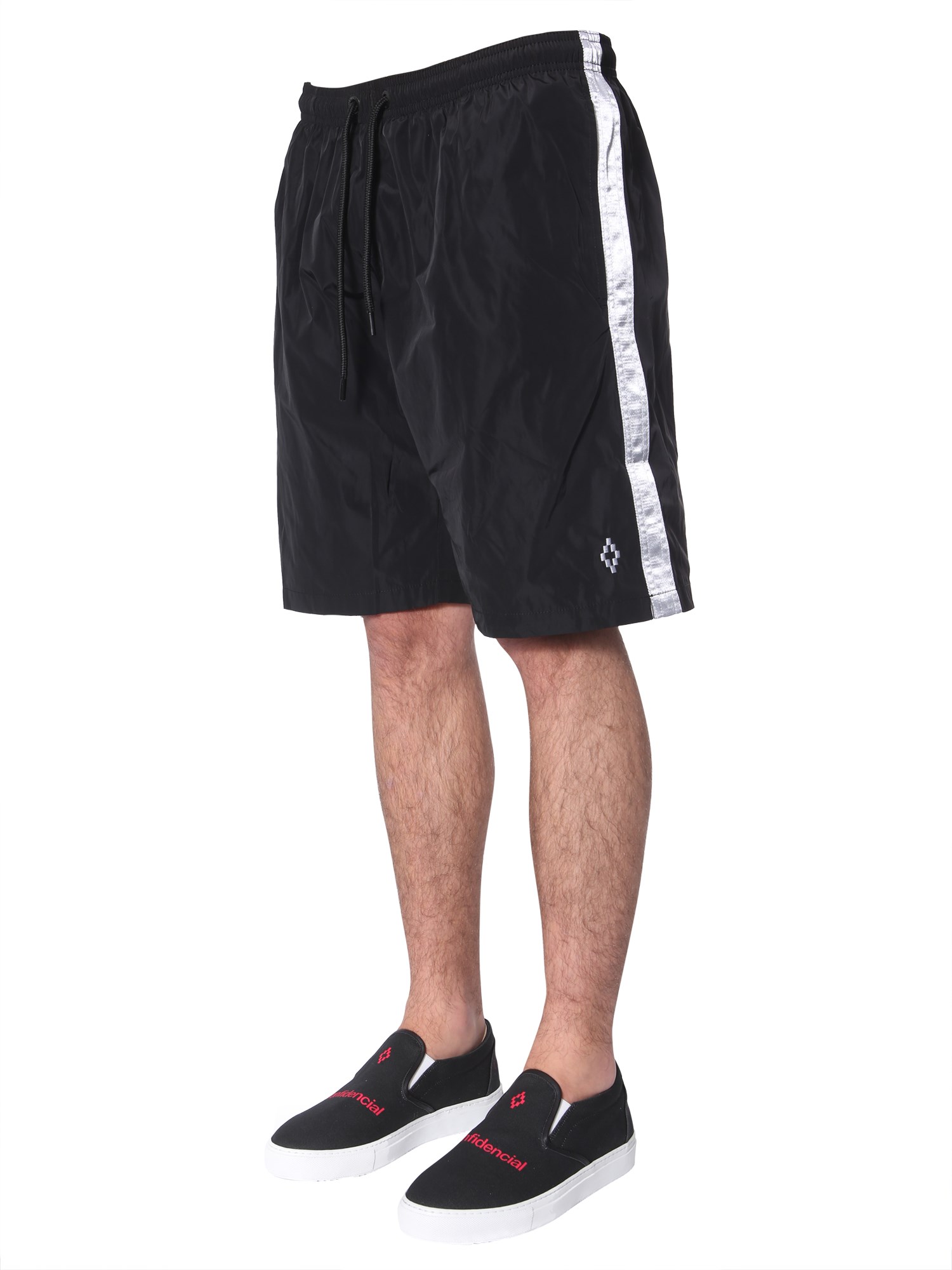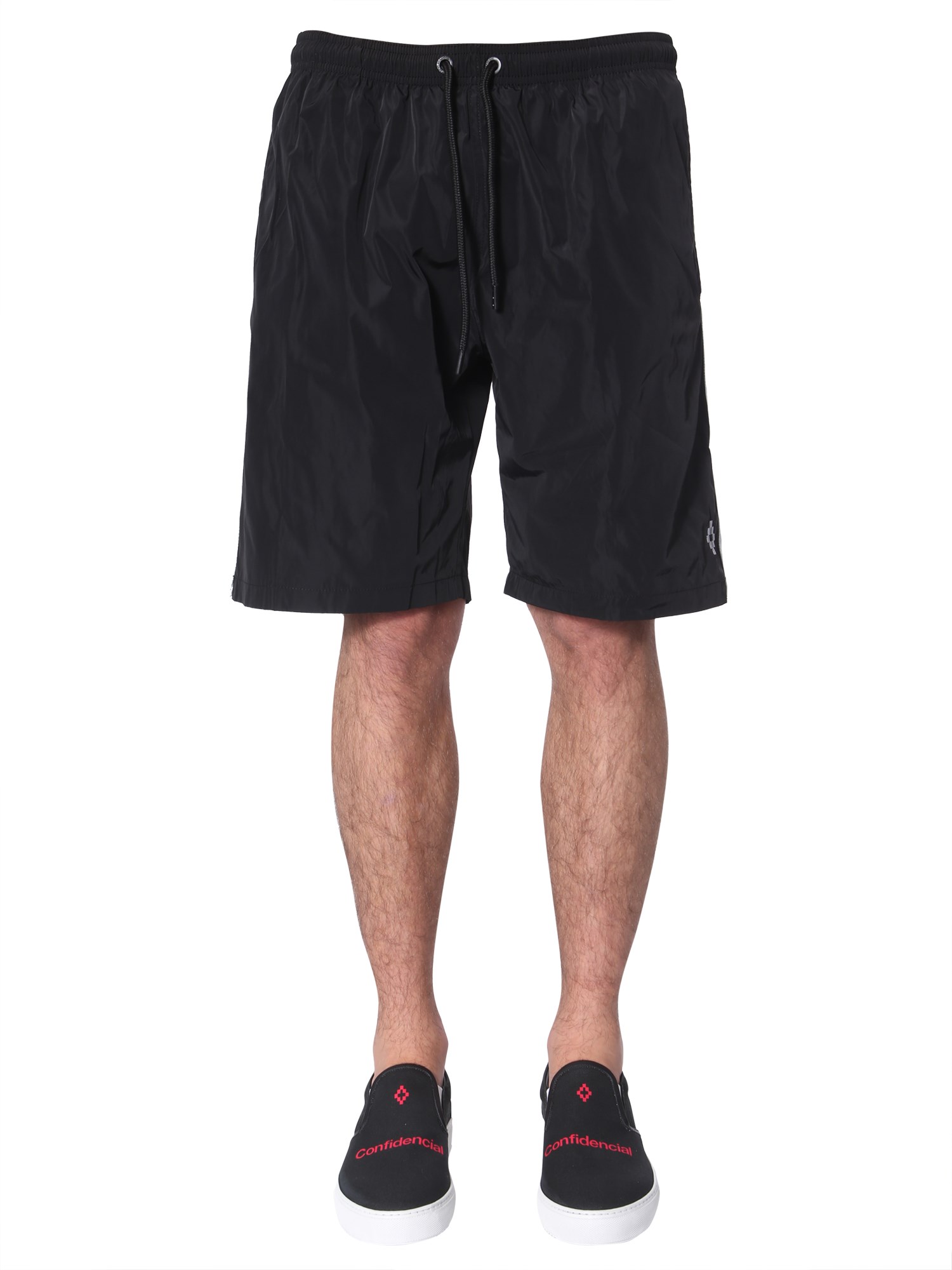 Soak in the sun with this swimsuit from Marcelo Burlon County of Milan. The garment comes in bold and vibrant colours. It is made from polyester with an elastic waistband for stretch and shape retention. With this regular fit costume, you can pair a simple black T-shirt to complete your beach look.