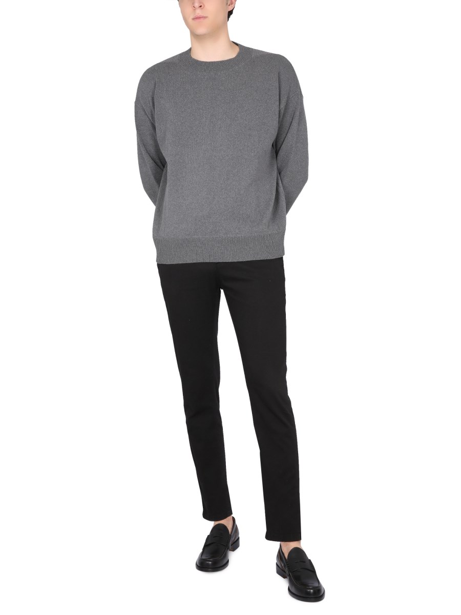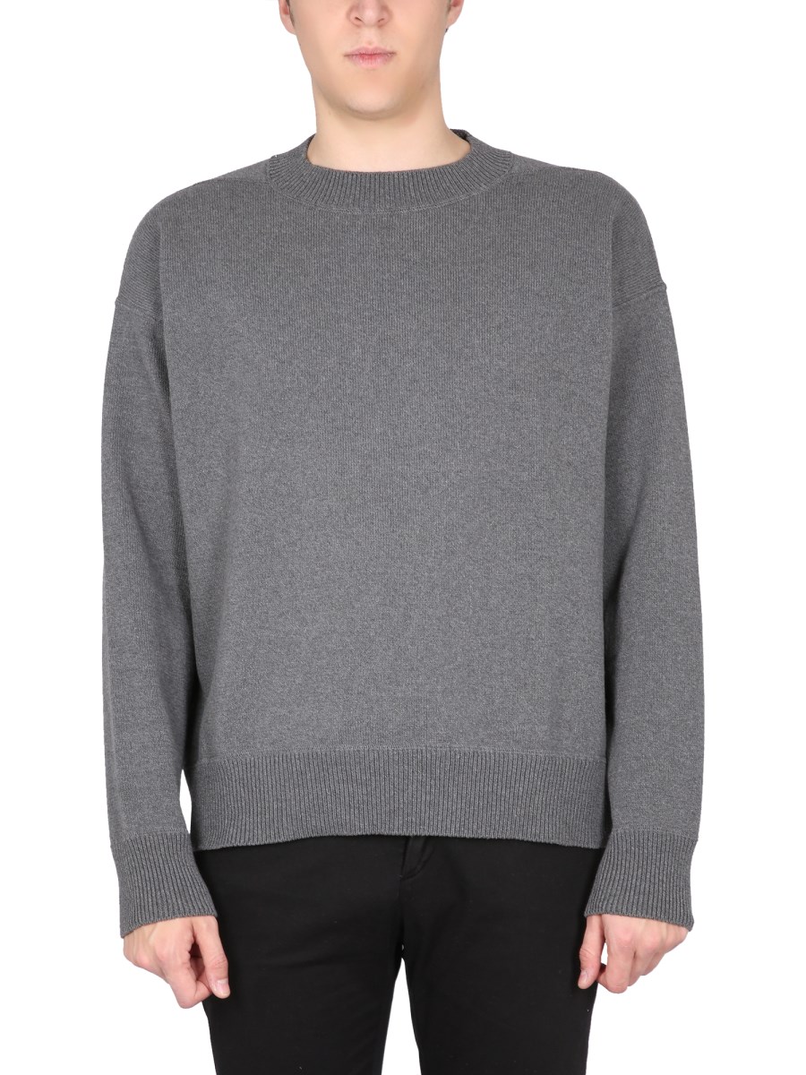 The Margaret Howell grey merino wool long sleeve jumper is a timeless design that will never go out of style. It has a somewhat fitting form with a ribbed knit texture that will never go out of style. It is soft and long-lasting because it is composed of 100% pure merino wool. A timeless item of clothing that is both warm and adaptable is the jumper.