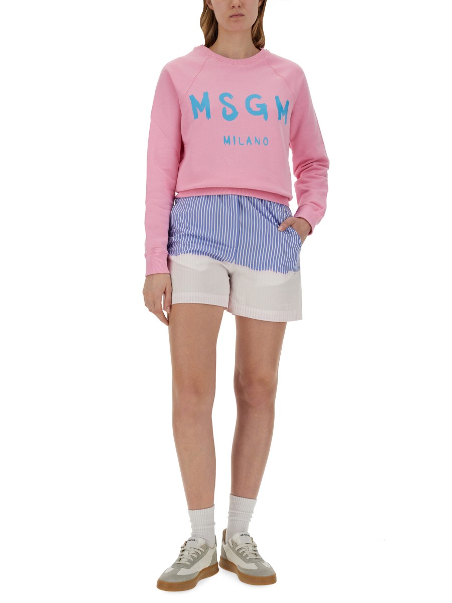 This sweatshirt from MSGM is the perfect addition to your casual wardrobe. Made from 100% cotton, it offers unparalleled comfort and a soft touch against your skin. Stay cosy and chic in this eye-catching sweatshirt that features a classic crew neck design, ensuring a flattering fit for every body type. The pink hue adds a feminine touch, while the contrasting blue logo adds a pop of colour and personality.