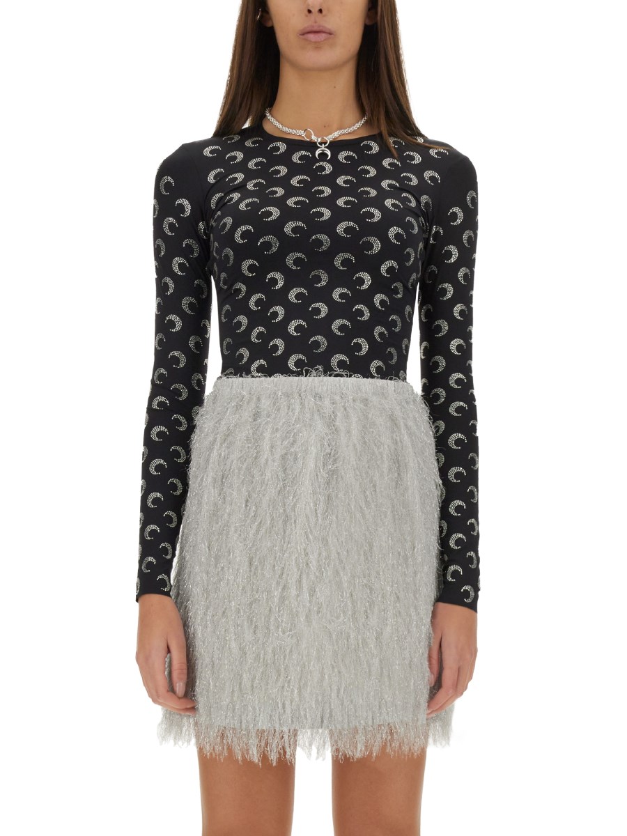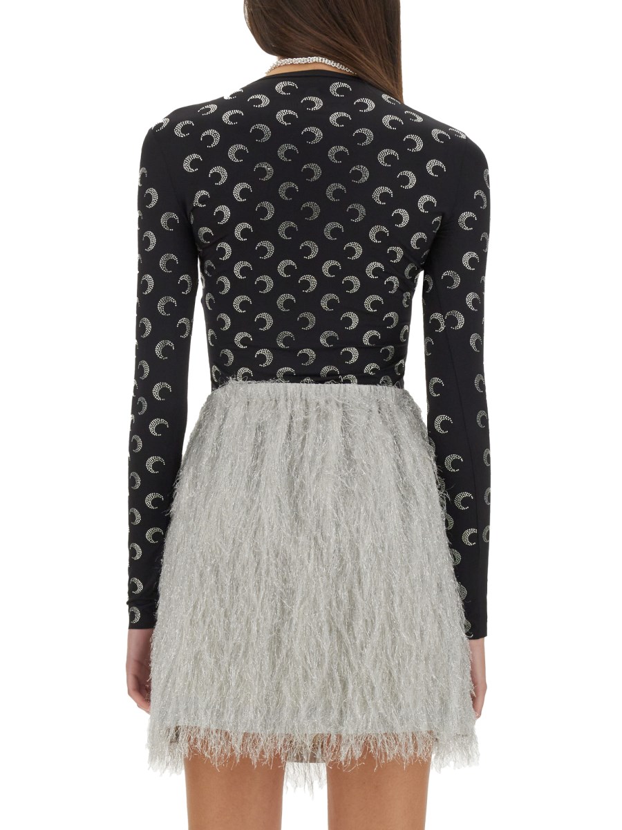 The TOP "MOON" ALL OVER from Marine Serre features a striking design that showcases the brand's signature moon motif, elegantly printed across the fabric. Crafted with high-quality materials, this top offers both comfort and style, making it a versatile addition to any wardrobe. Its contemporary silhouette is perfect for layering or wearing alone, while the unique pattern adds a touch of sophistication to casual and formal outfits alike.