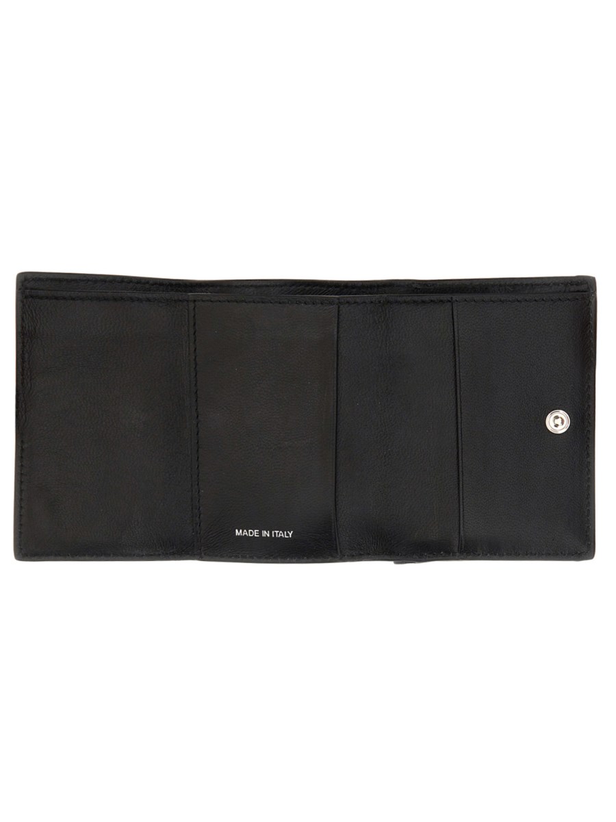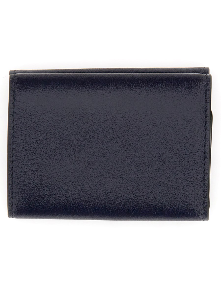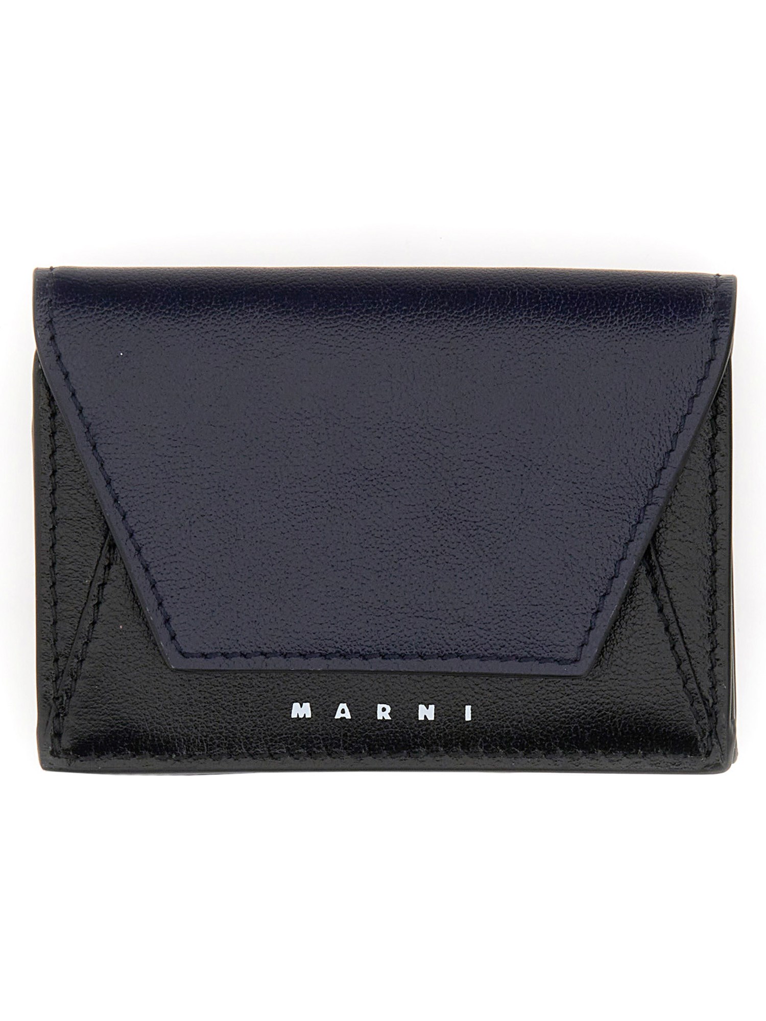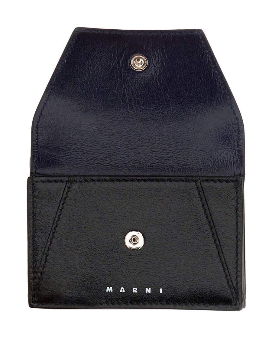 This leather tr-fold wallet from Marni is perfect for the man who appreciates a classic, masculine look. The calfskin leather is soft and supple with a black shade that is perfect for any man's wardrobe. The wallet features four compartments for credit cards, a bill compartment, and a logo imprinted on the front.