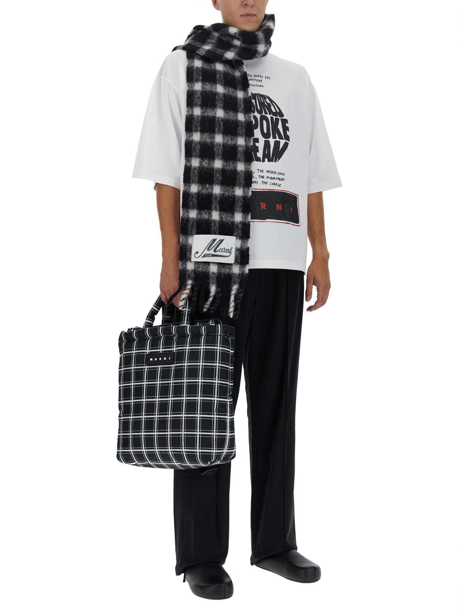 This versatile, durable bag from Marni is a perfect choice for carrying everything you need to go from work to a night out. This tote bag has a double top handle, with two handles on either side of the bag. The bag is made from polyester, so it is lightweight and durable. It has a zip top closure, which is ideal for keeping your belongings safe and secure.