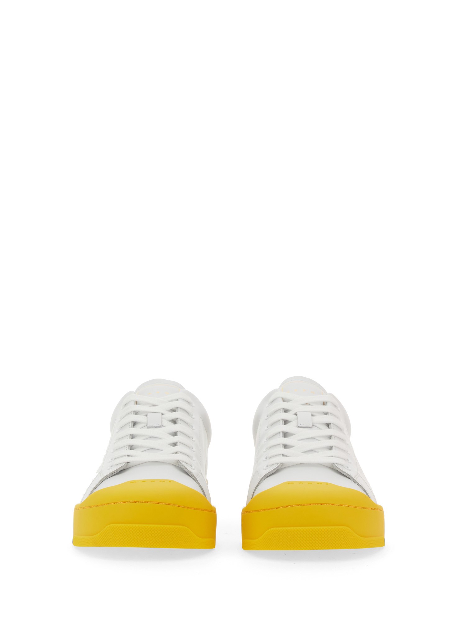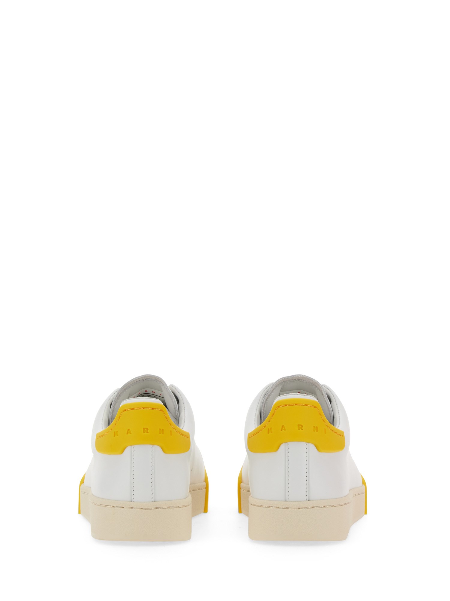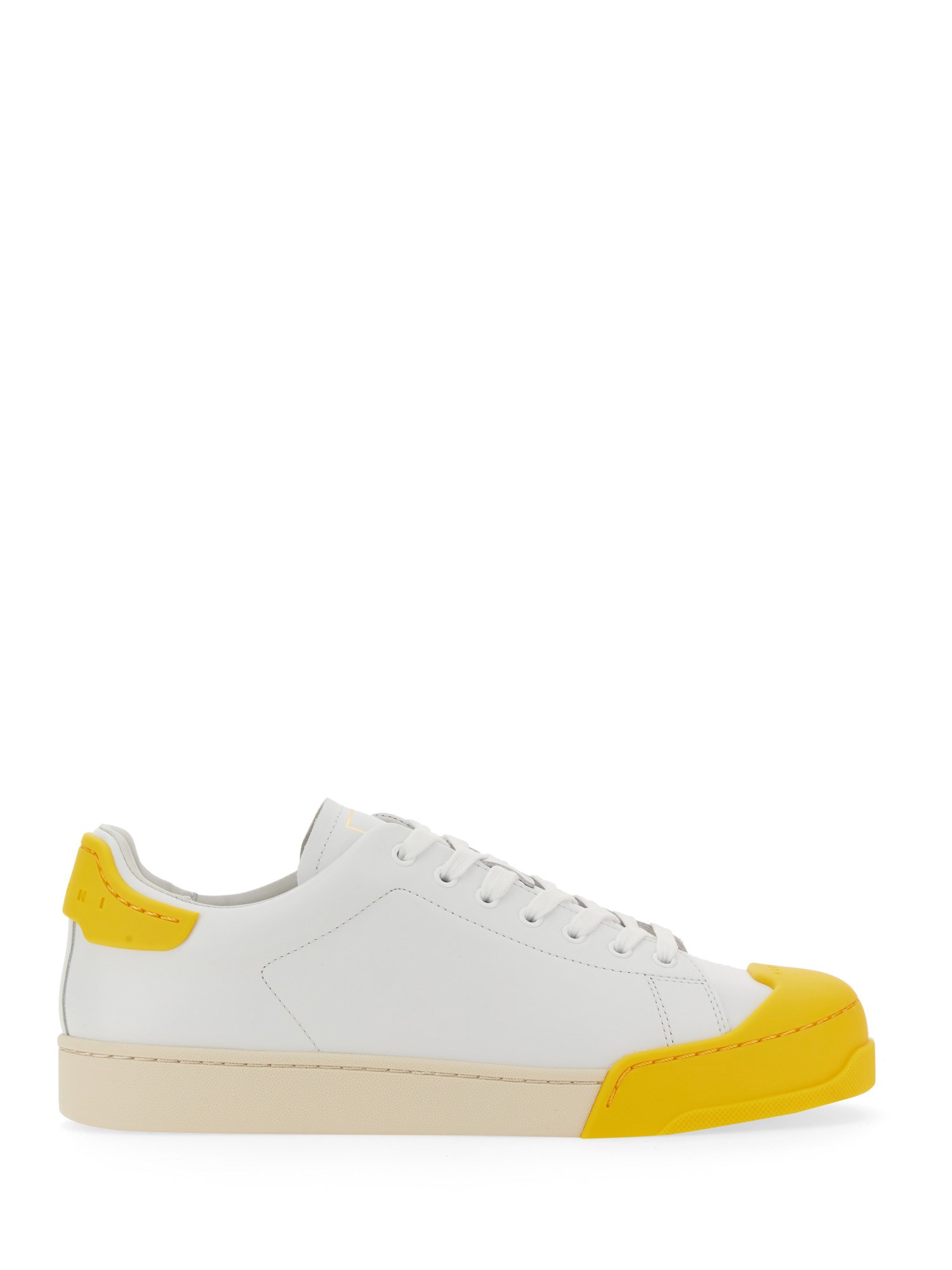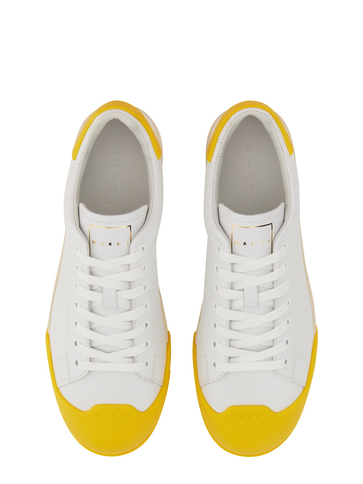 Sporty and versatile, these sneakers from Marni will be the perfect go-to for a variety of outfits. They are made of leather and rubber, and have a lace-up closure, along with a rubber sole. This rubber sole flat lace-up closure leather upper bumper leather sneaker is perfect for those that want a casual yet functional pair of shoes.