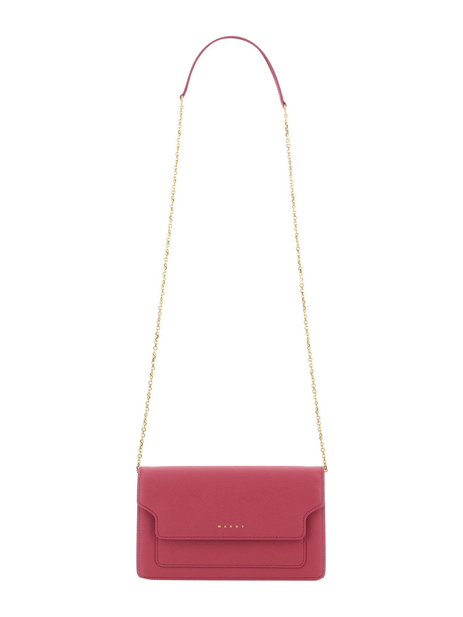 This wallet Marni is made from a beautiful genuine leather, making it the perfect accessory for any occasion. The wallet features a sturdy shoulder strap, so you can keep your wallet close by and not worry about it slipping out of your hands. It features a chain shoulder strap with shoulder rest, flap closure with snap buttons, and an interior with a zippered pocket and eight card slots