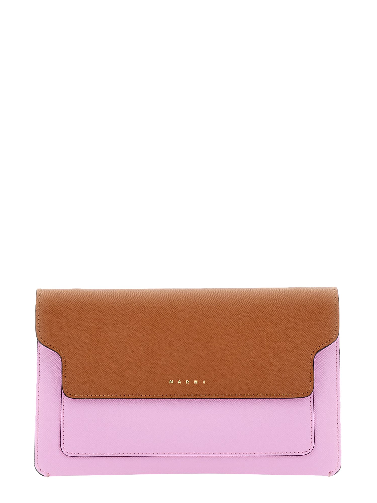 This leather trunk pouch by Marni is perfect for carrying your essentials when you're on the go. It has a convenient snap button closure and a front pocket for your wallet or phone. The logo is showcased on the front and the pouch has a snap button closure and an adjustable shoulder strap.