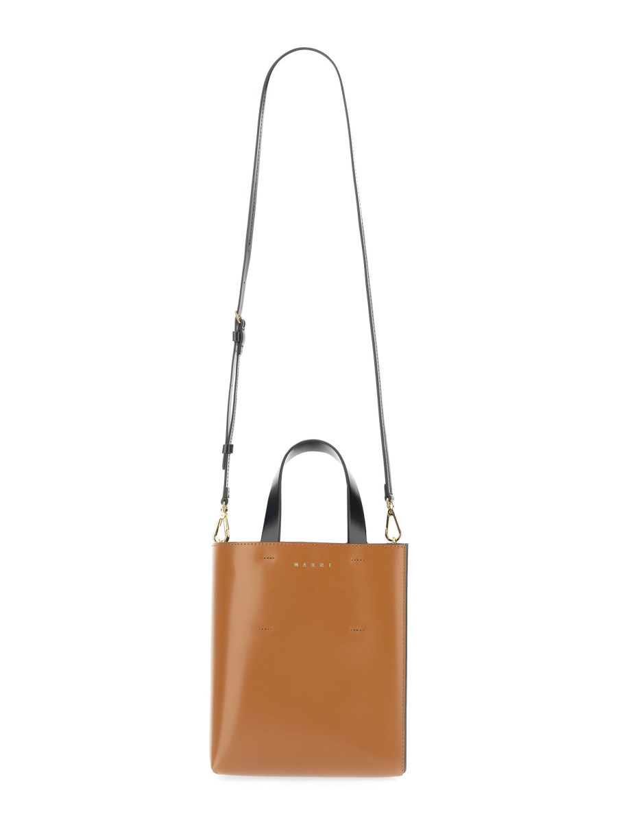 This mini Museum leather bag from Matrni features a vintage and classic design. It comes with a removable shoulder strap and double handle to carry it with ease. The bag has a fabric interior with a drawstring. It is also adorned with a colour-block design.