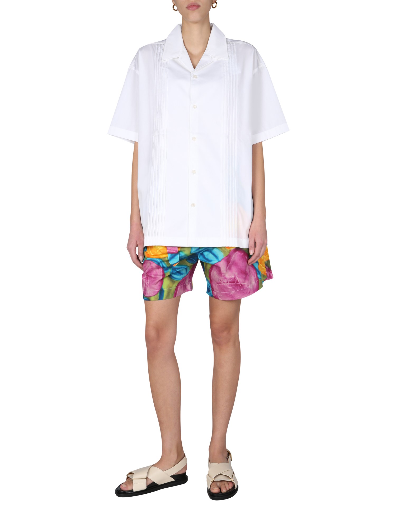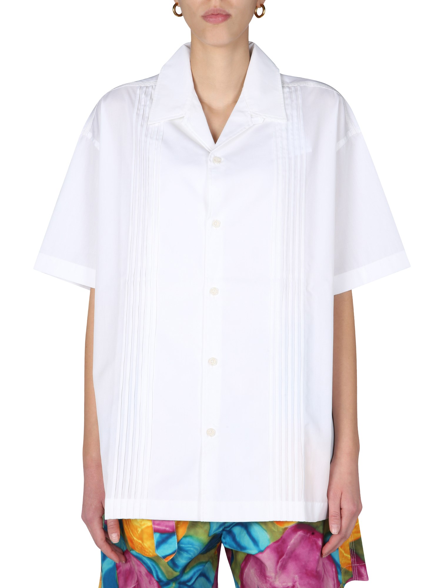 - V-NECK- FRONT BUTTON CLOSURE- BOXY FIT- 100% COTTON- MODEL IS 180 CM TALL AND WEARS SIZE 40 IT