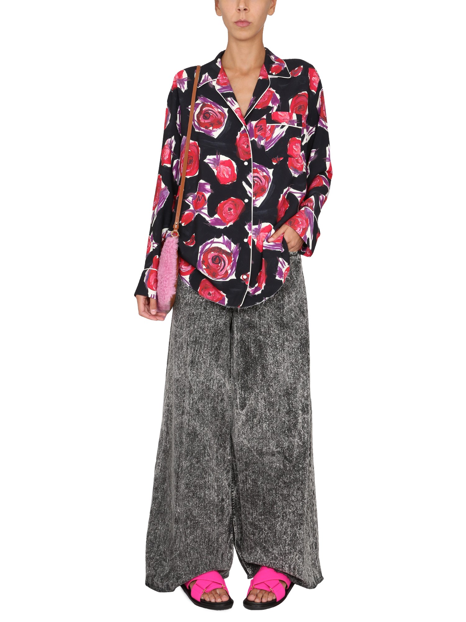 This viscose blend shirt from Marni has an all-over floral print and is a piece of work! This shirt features an easy-to-wear, lightweight, and easy-to-care-for fabric. The material is very soft and breathable. This shirt features a classic collar, short sleeves, front button closure, and a patch pocket on the chest.