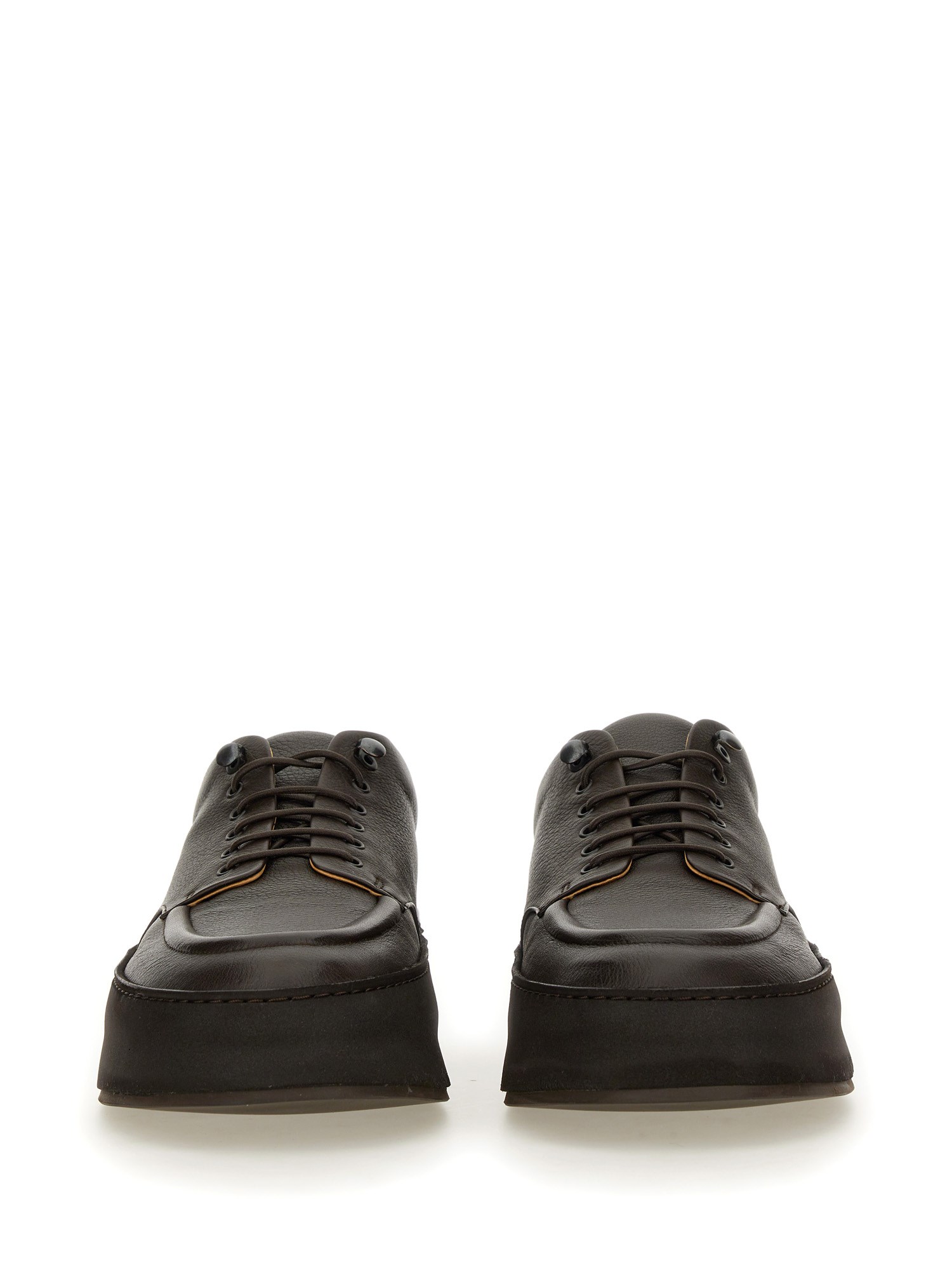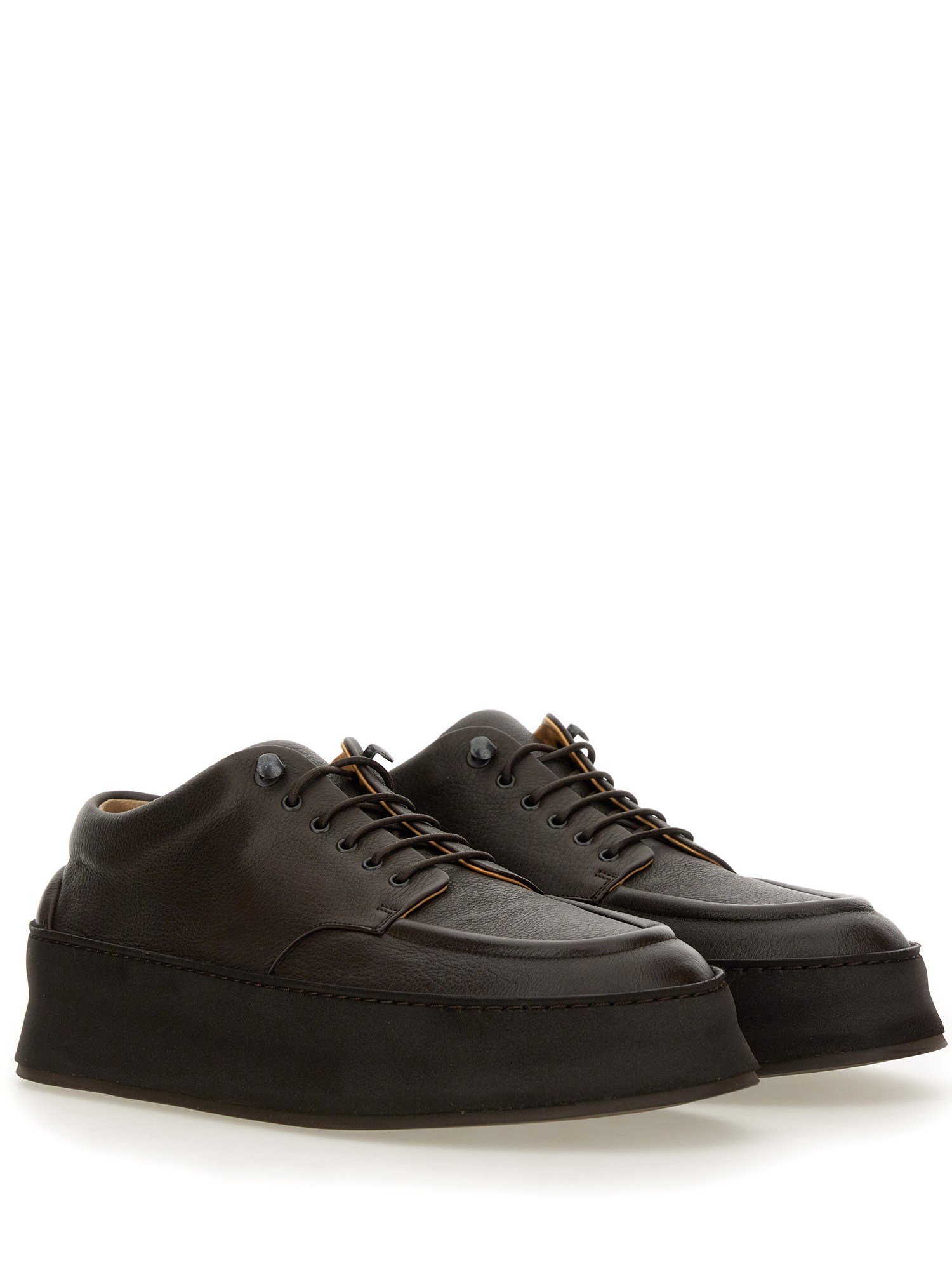 The Derby "Cassapana" from Marsèll exemplifies sophisticated craftsmanship and contemporary design. This shoe features a sleek silhouette, meticulously constructed from premium leather, ensuring both durability and elegance. Its unique detailing and artisanal finish make it a versatile addition to any wardrobe, suitable for both formal and casual occasions. The comfortable sole provides support, making it an ideal choice for all-day wear.
