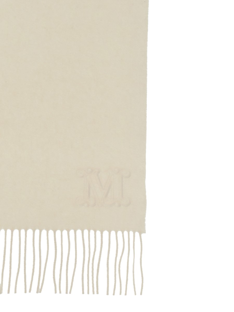 Elegant and comfortable, this cashmere scarf from Max Mara is sure to keep you warm and looking stylish. The logo is a monogram, and the fringed edges add a touch of chic. Bundle up and warm up with this monogrammed cashmere stole. This is a lightweight, cashmere-blend stole with a sophisticated monogram design that is perfect for the season.