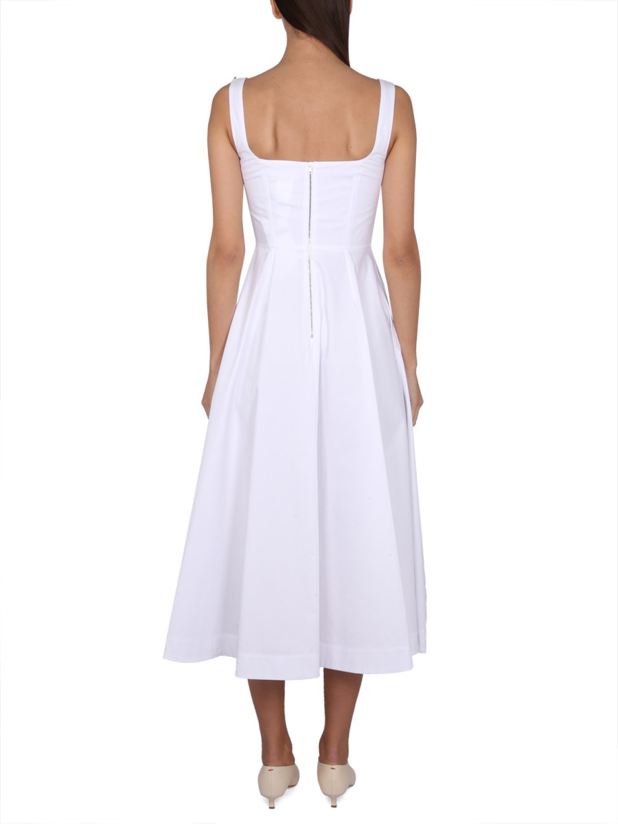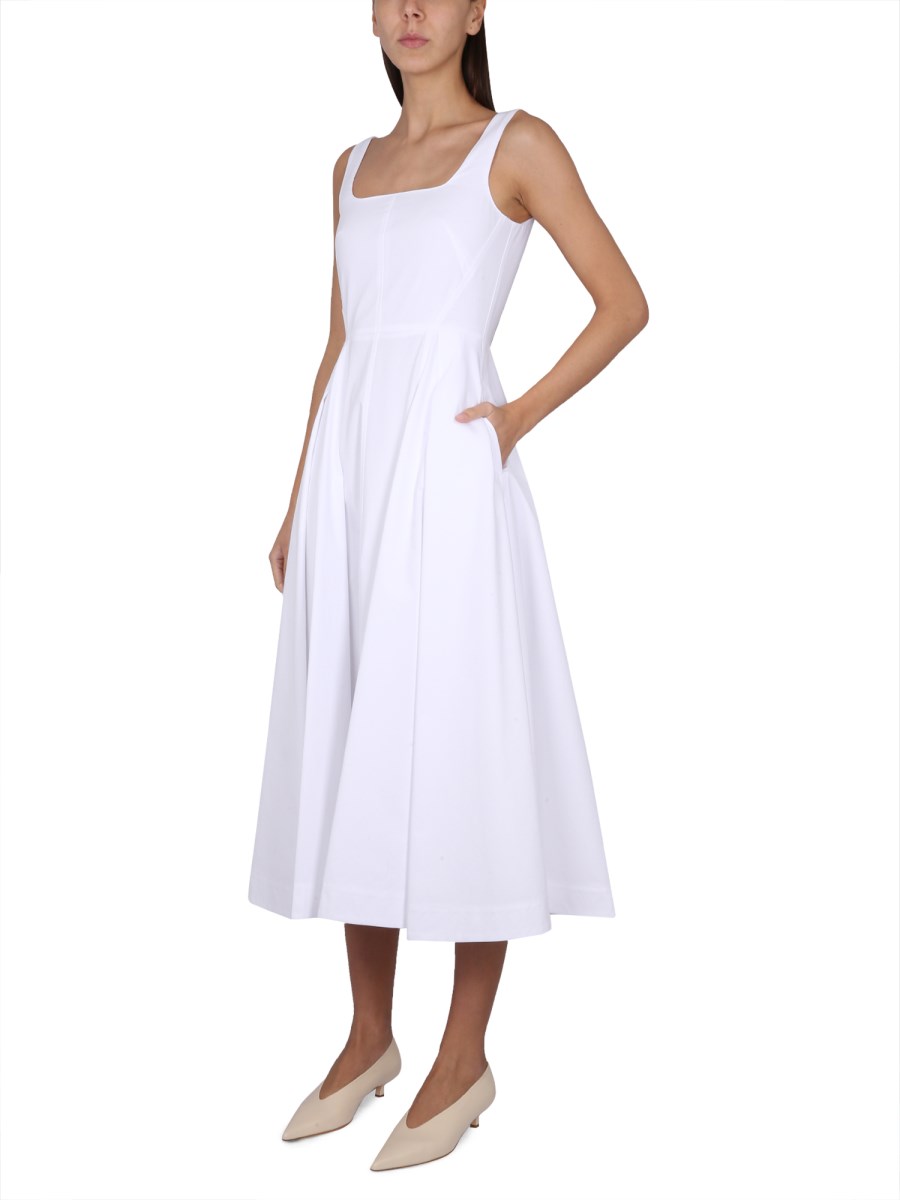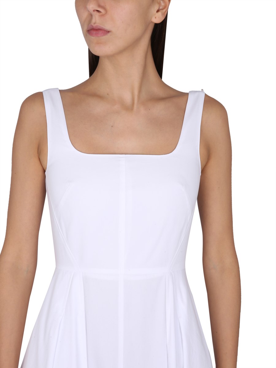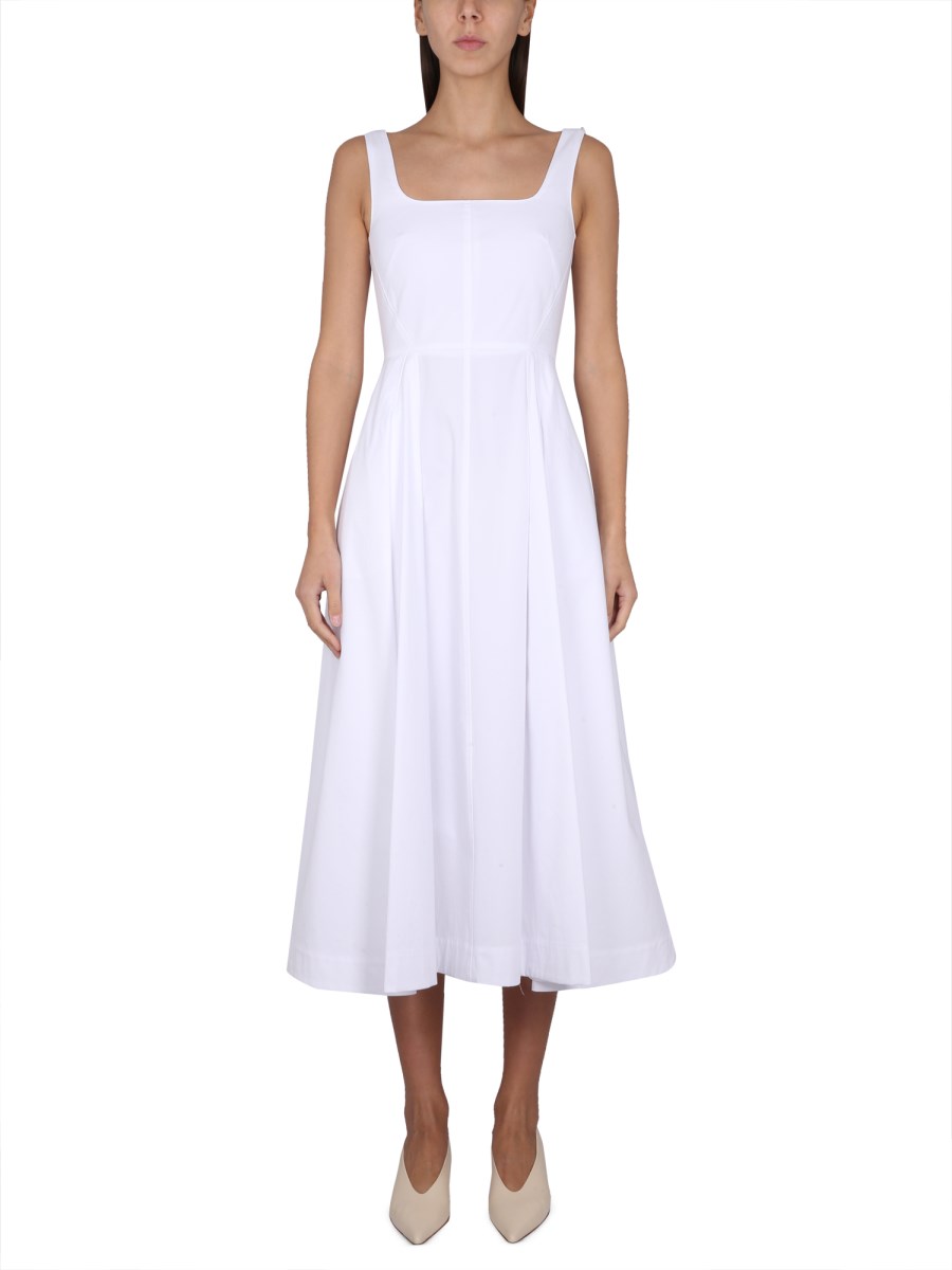 Dress in washed heavy pure cotton canvas fabric featuring a princess design: the slim-fit bodice boasts a square neckline and wide shoulder straps. The diagonal cuts at the sides make the silhouette even more feminine. In-seam side pockets and a full skirt, complete with volume-enhancing pleats. Visible metal zip fastening on the back.