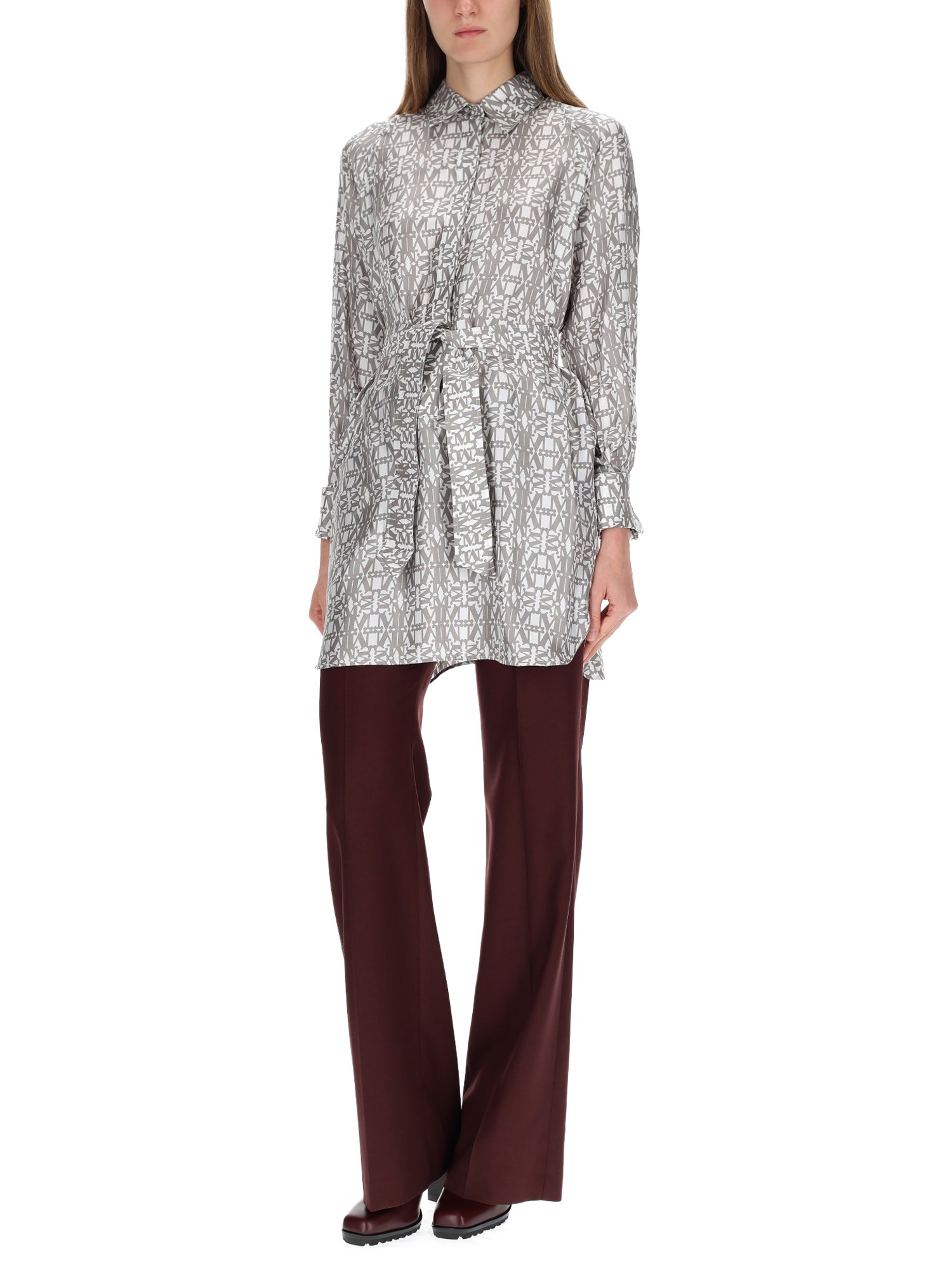 PRINTED SILK CHEMISIER DRESS WITH BELT