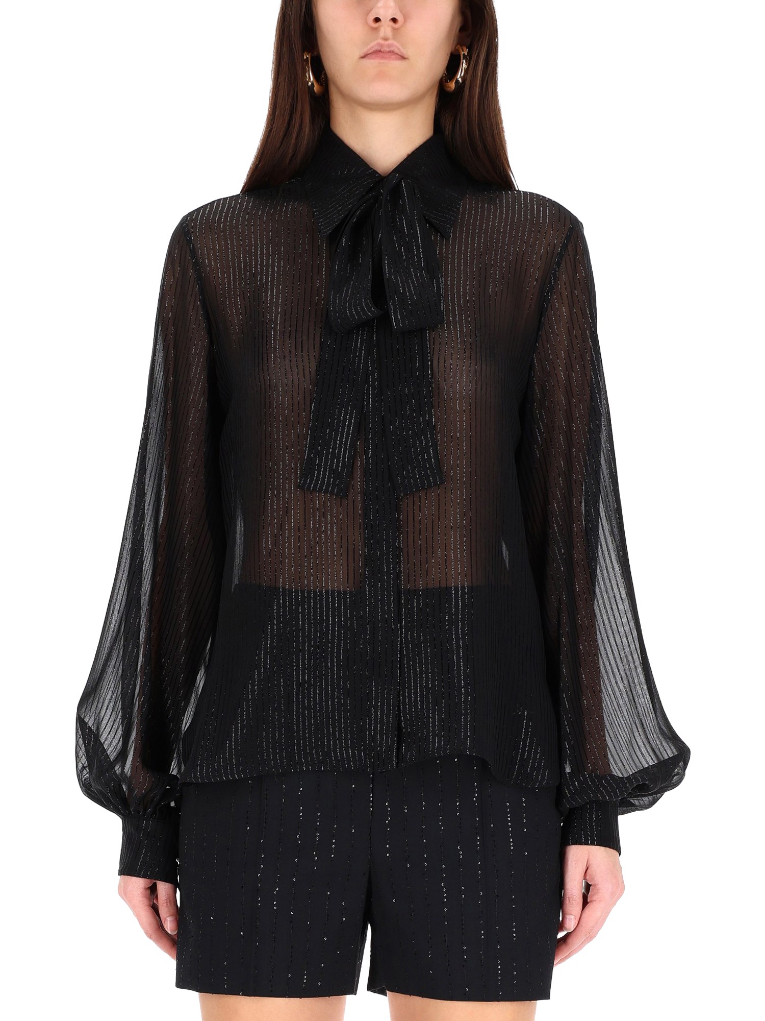 STRIPED SILK CHIFFON BLOUSE WITH BOW
