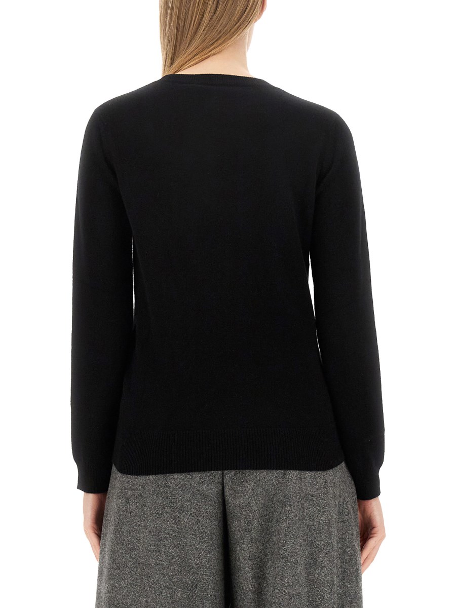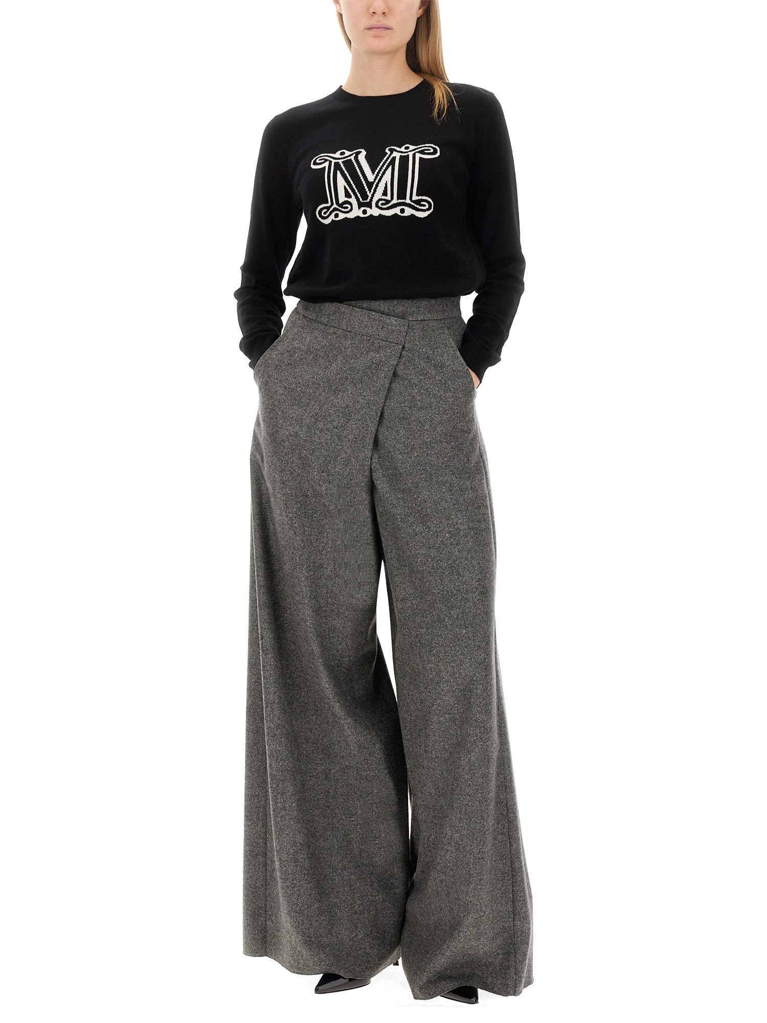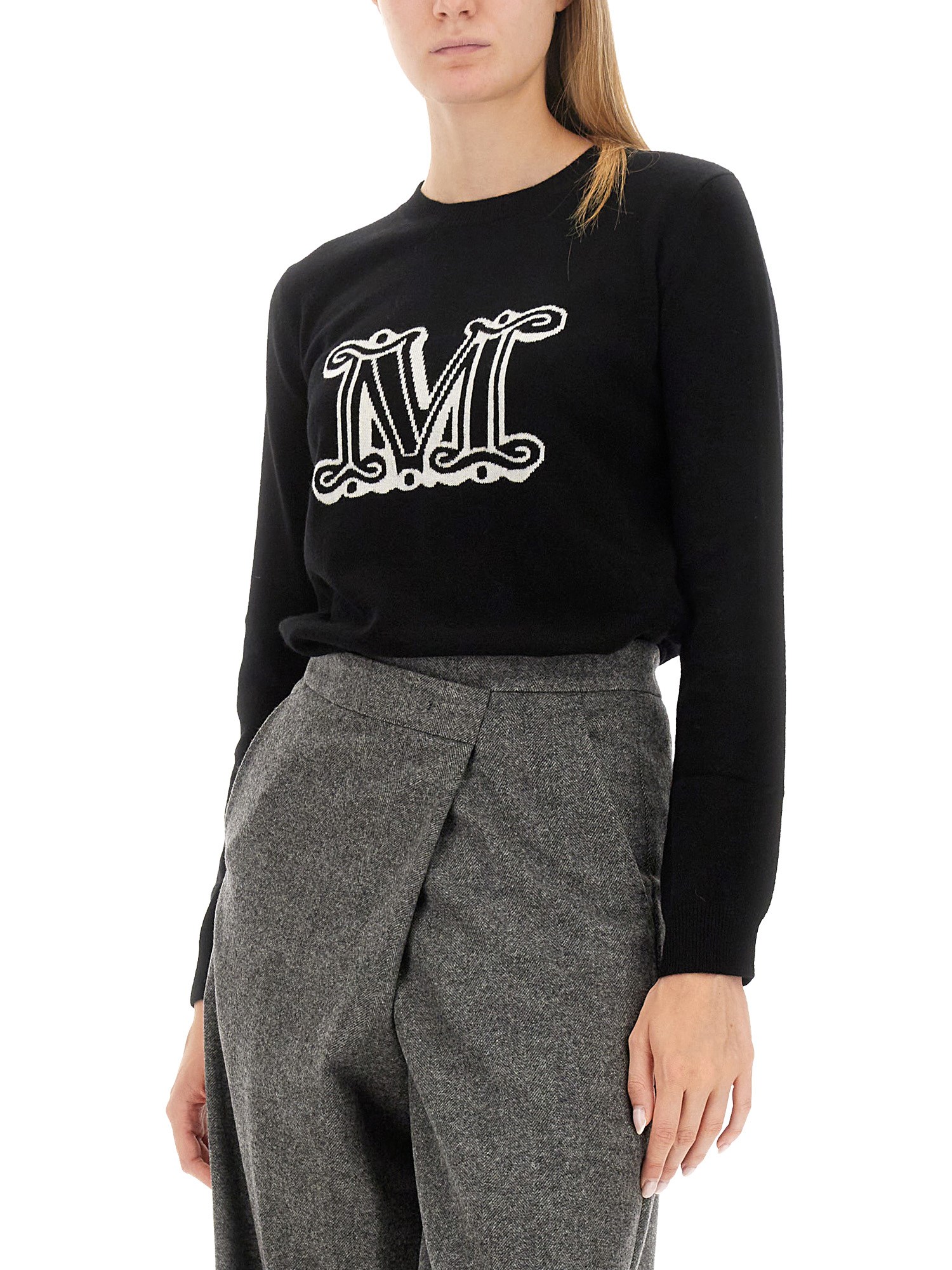 Elevate your winter wardrobe with the chic and luxurious cashmere sweater with the logo by Max Mara. Crafted with attention to detail, this sweater is a perfect blend of style and comfort. Made from a lightweight and breathable wool fabric, it keeps you cozy without weighing you down. Its relaxed fit makes it an ideal choice for layering over shirts or turtlenecks, allowing you to create versatile and stylish ensembles.