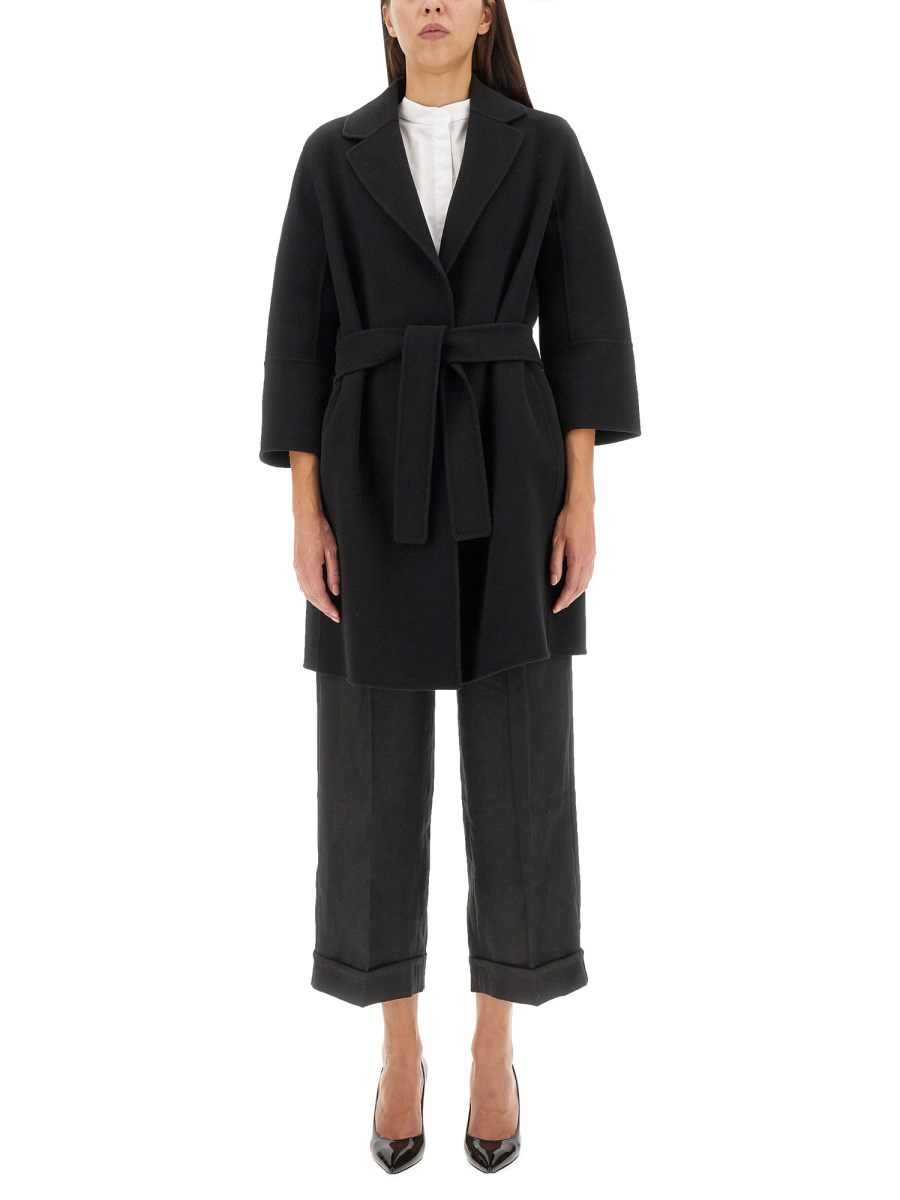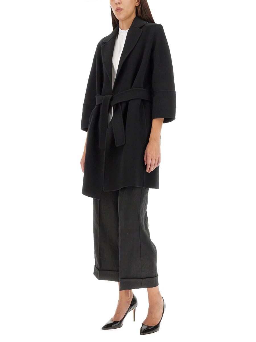 - LAPEL COLLAR- WAIST BELT- 100% WOOL- THE MODEL IS 180 CM TALL AND WEARS SIZE 40 IT