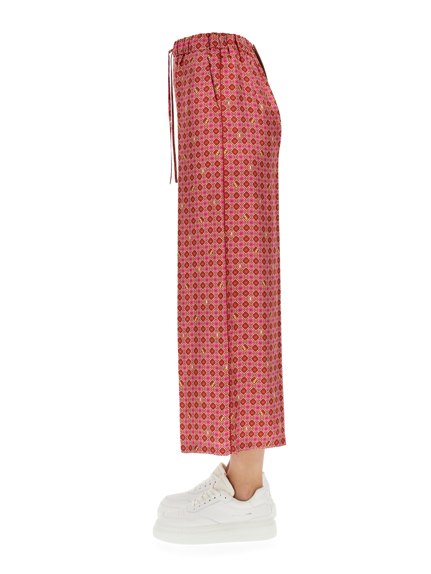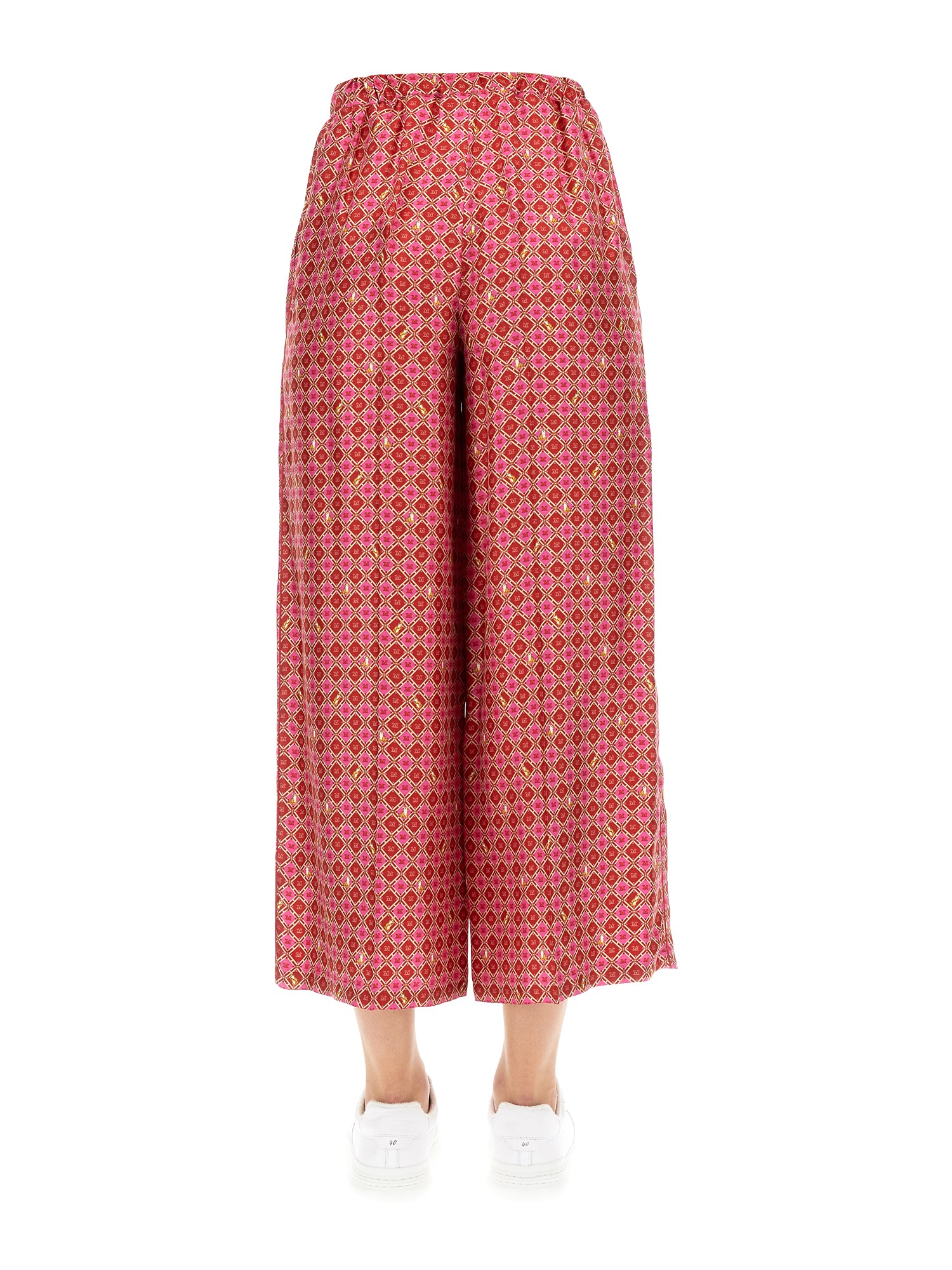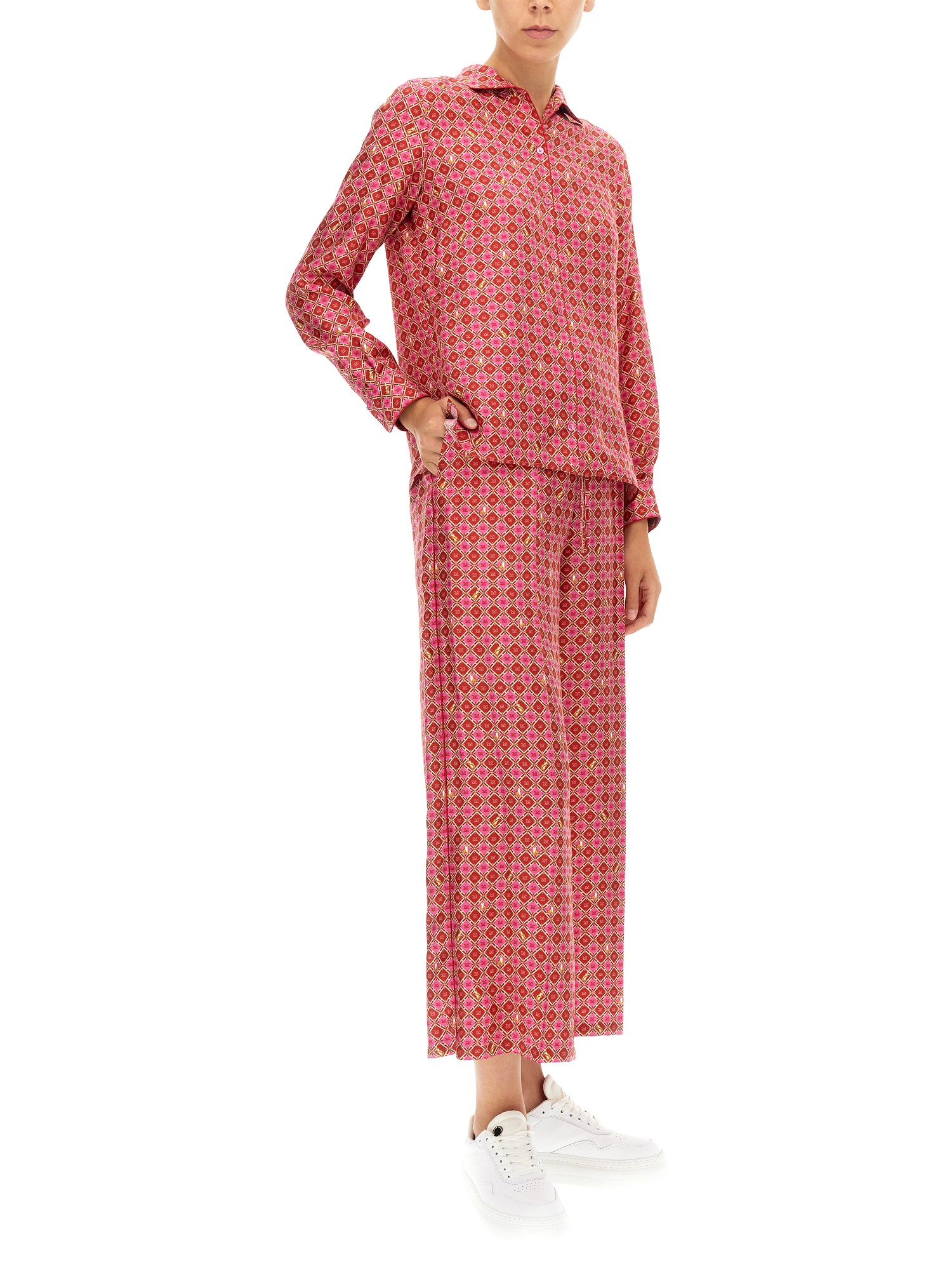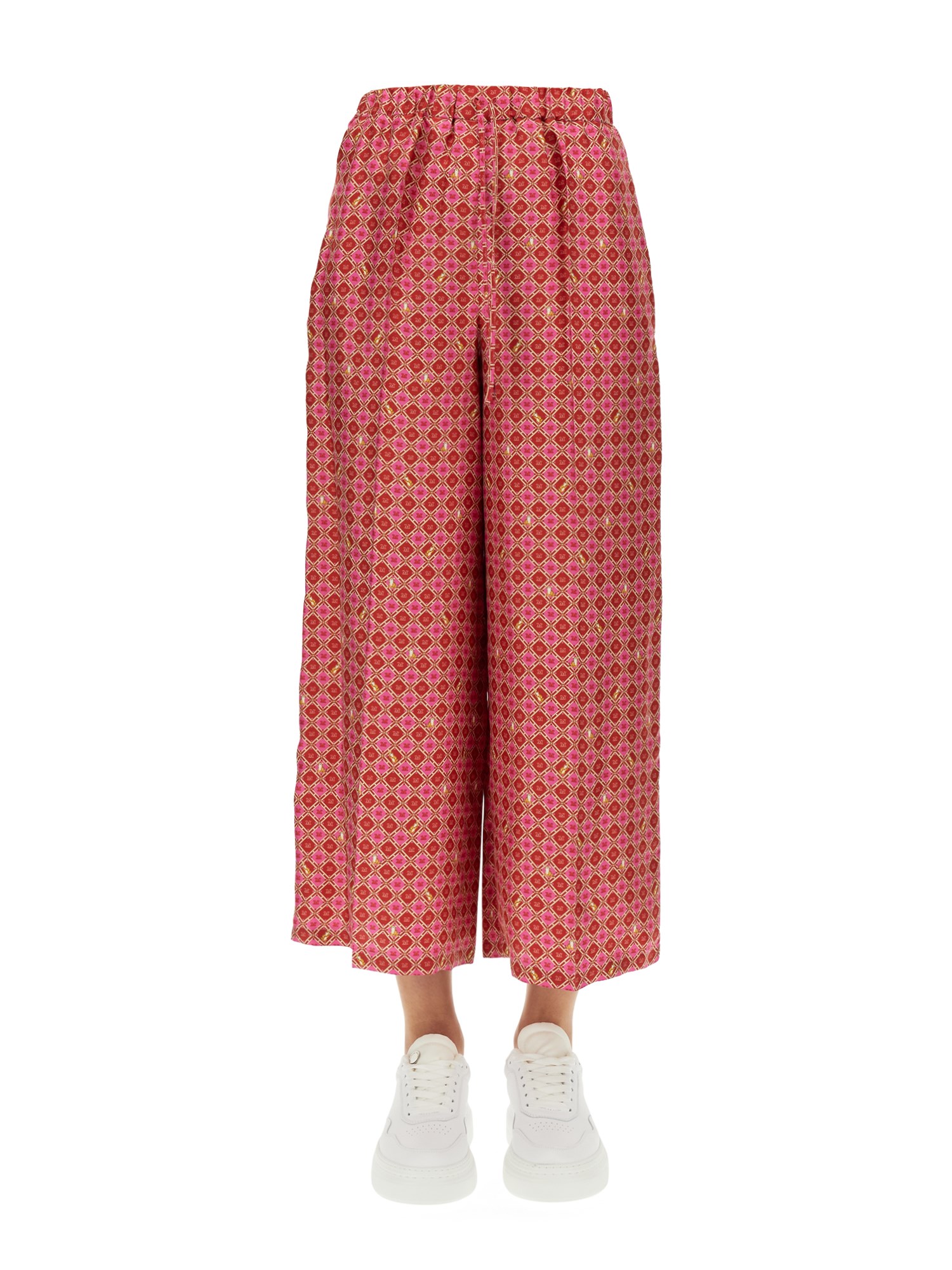 - ELASTIC COULISSE WAIST - TWO SIDE POCKETS- ALL OVER GEOMETRIC PRINT- 100% SILK- MADE IN ITALY- MODEL IS 180 CM TALL AND WEARS SIZE 40 IT