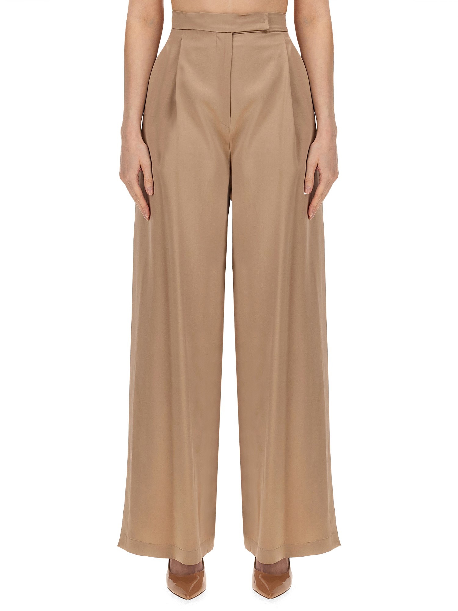 Elevate your wardrobe with these chic beige wide leg pants from Max Mara. Featuring a button and zipper closure, these pants are both stylish and practical, perfect for any occasion. The wide leg design adds a touch of sophistication, while the neutral beige colour makes them versatile and easy to pair with any top. Whether you dress them up with a blouse and heels or keep it casual with a T-shirt and sneakers, these Max Mara pants are sure to become a staple in your closet.