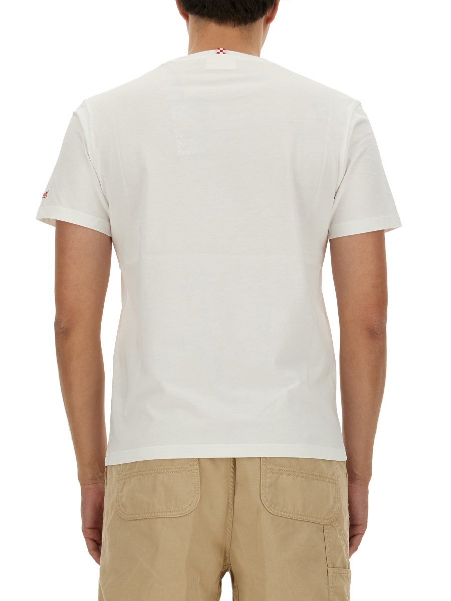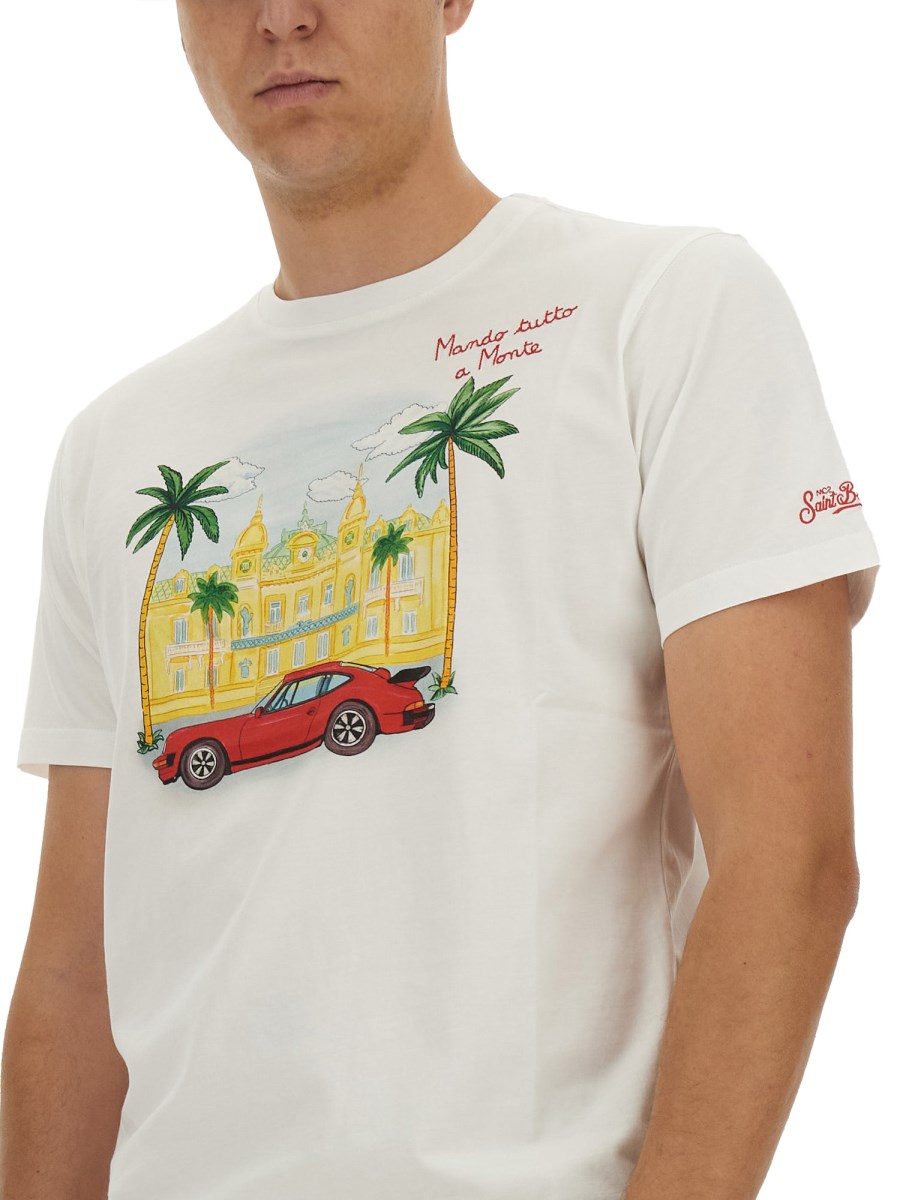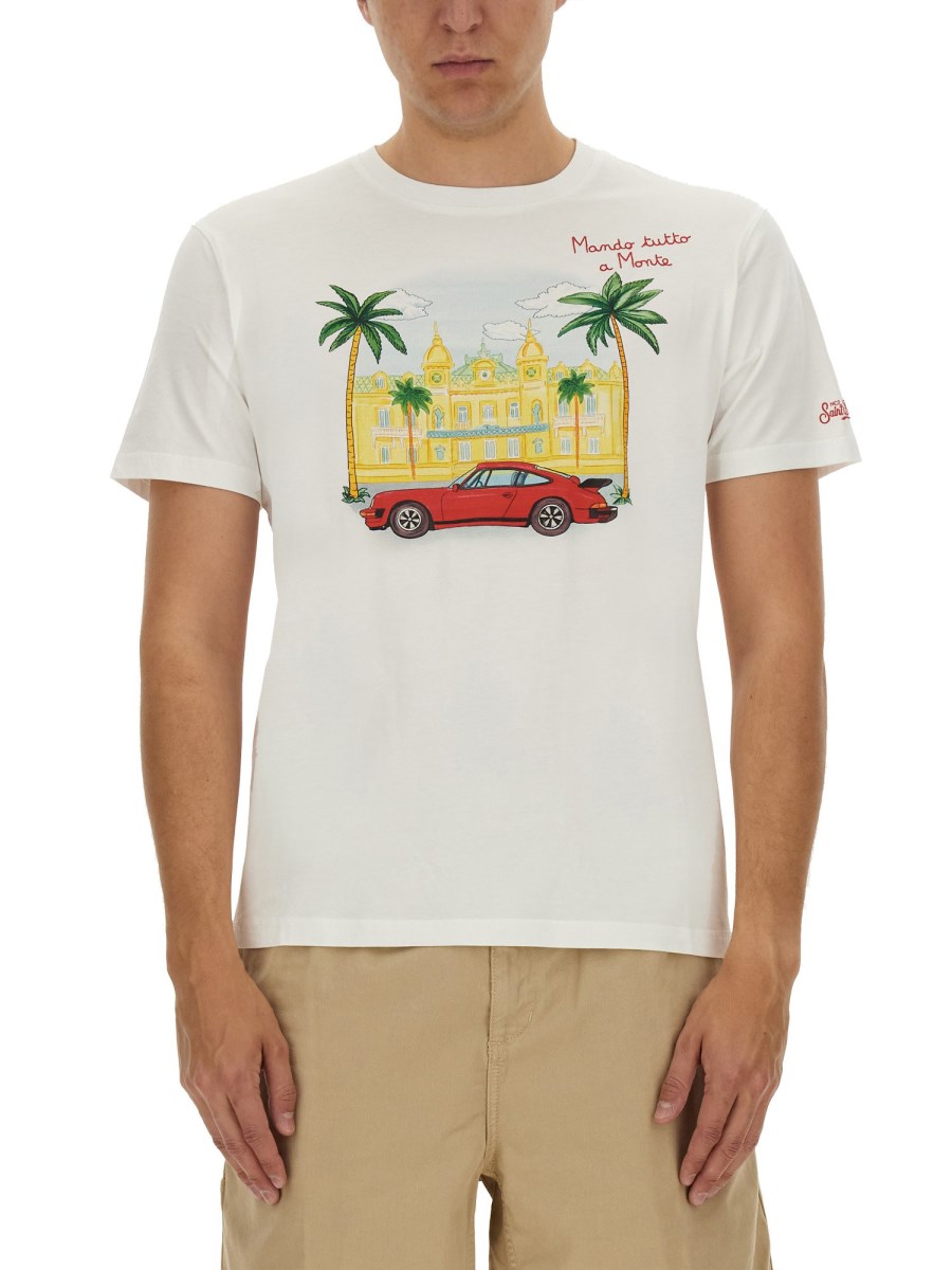 This T-shirt from MC2 Saint Barth offers both comfort and durability. The classic crew neck design adds a timeless appeal to your wardrobe. The front print adds a touch of personality and makes a statement. Perfect for casual outings or layering under a jacket, this T-shirt is a versatile addition to any wardrobe.