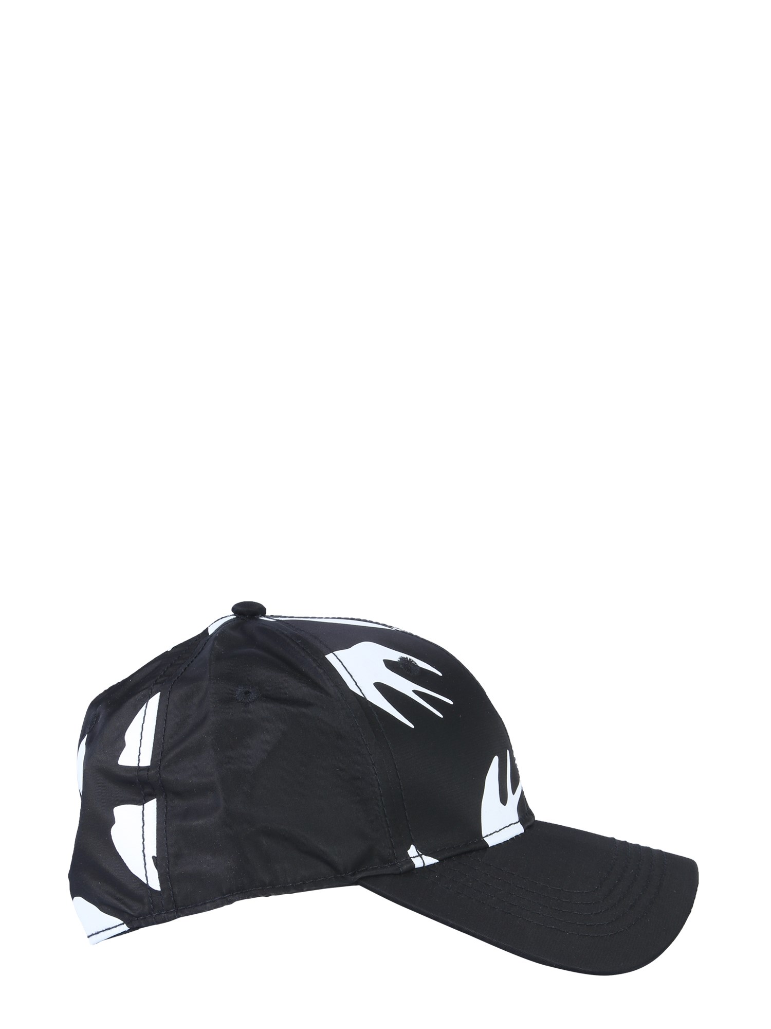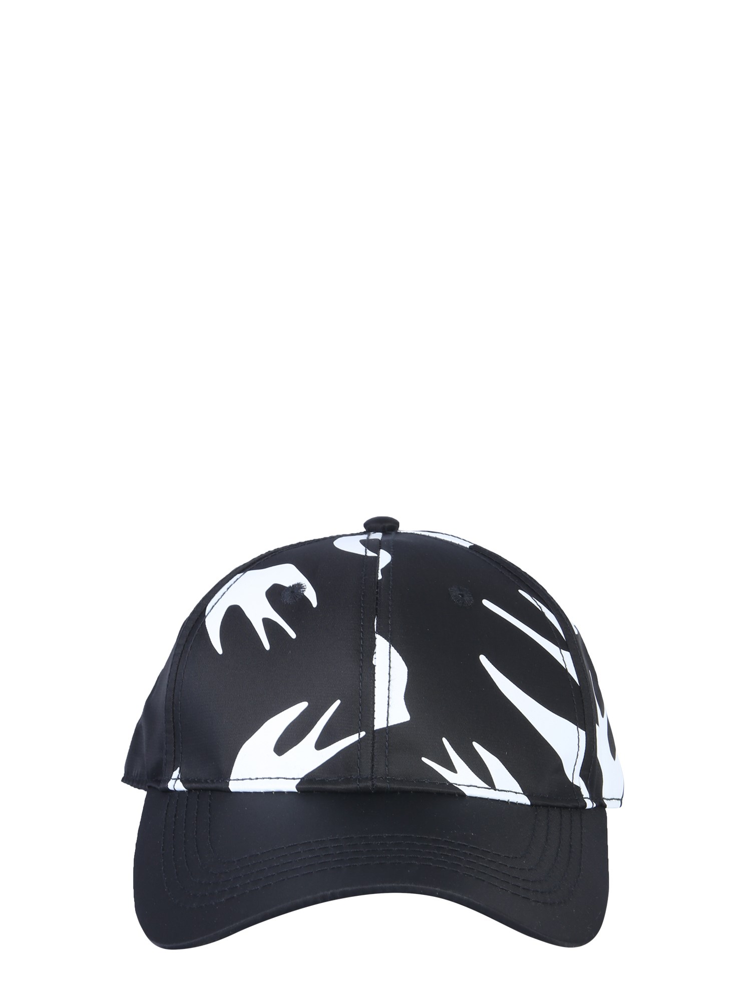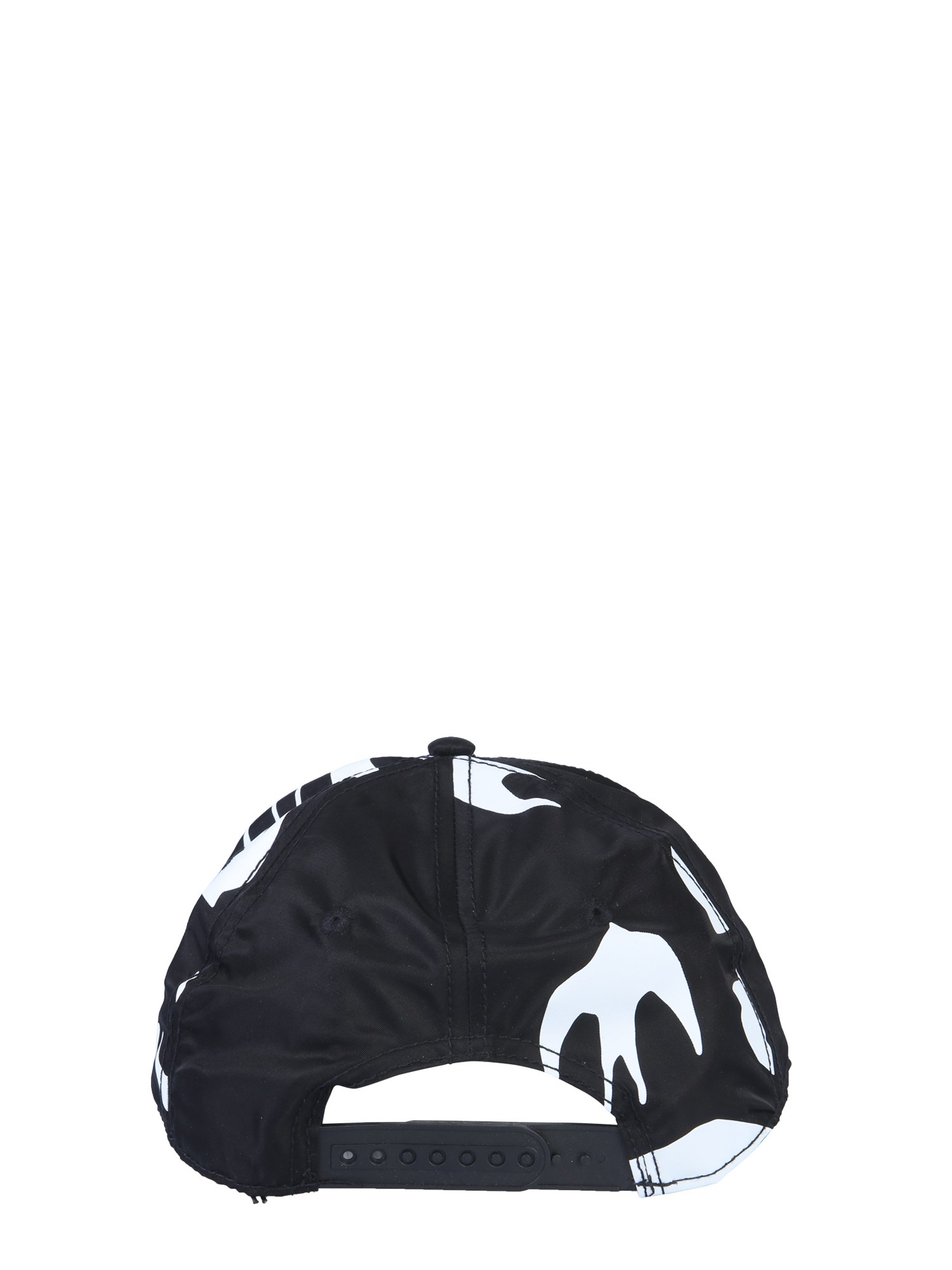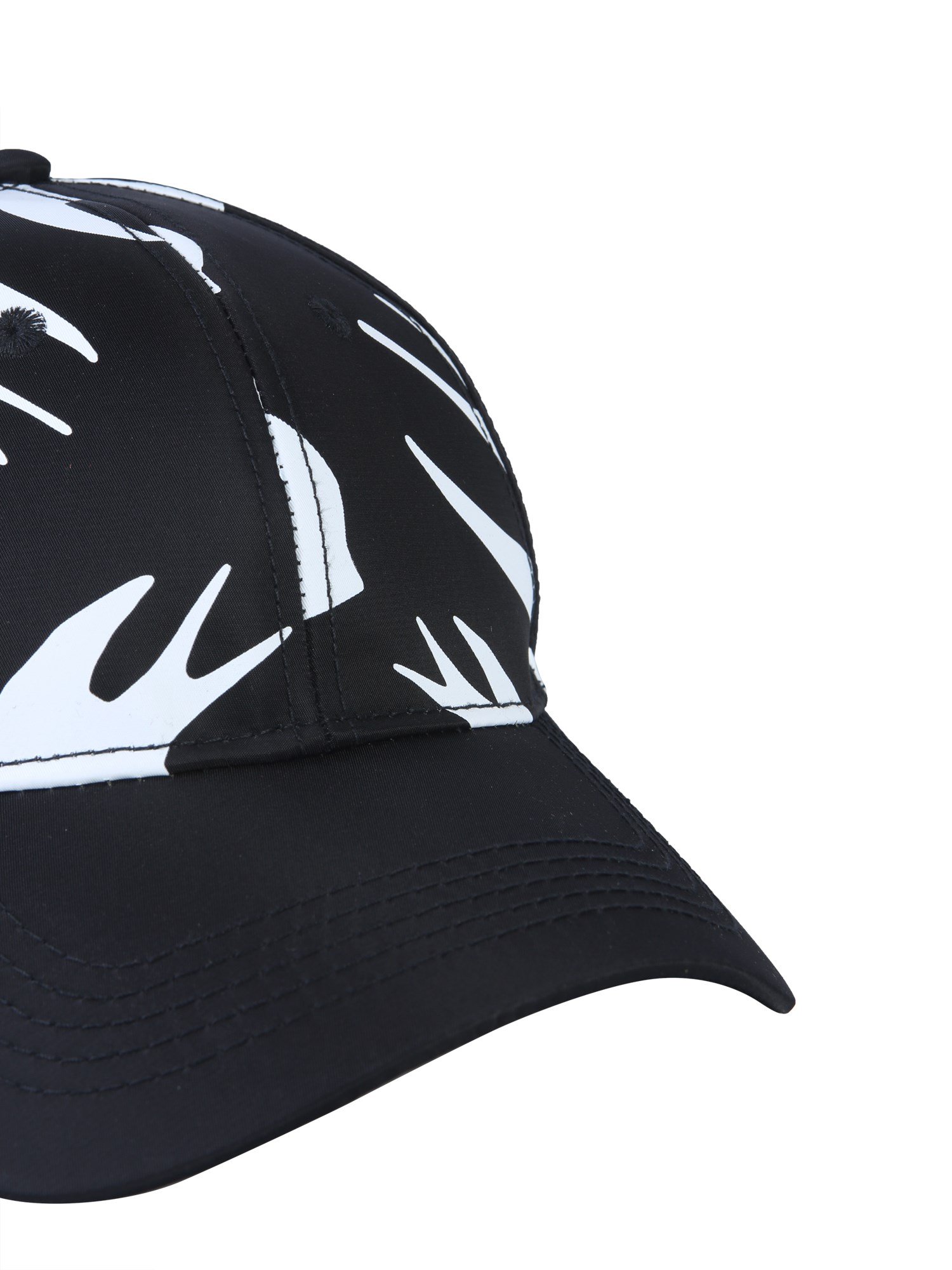 Whether you're on a hike or at a barbecue in the backyard, this baseball cap from MCQ Alexander McQueen will let you enjoy outdoors. It is made with a rigid visor that comfortably sits on the head. The trendy and contrasting print completes its stylish look. The polyester fabric ensures durability.