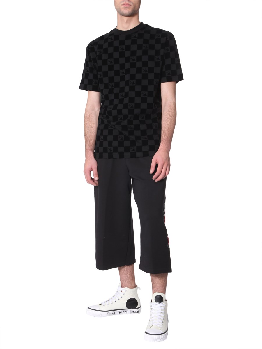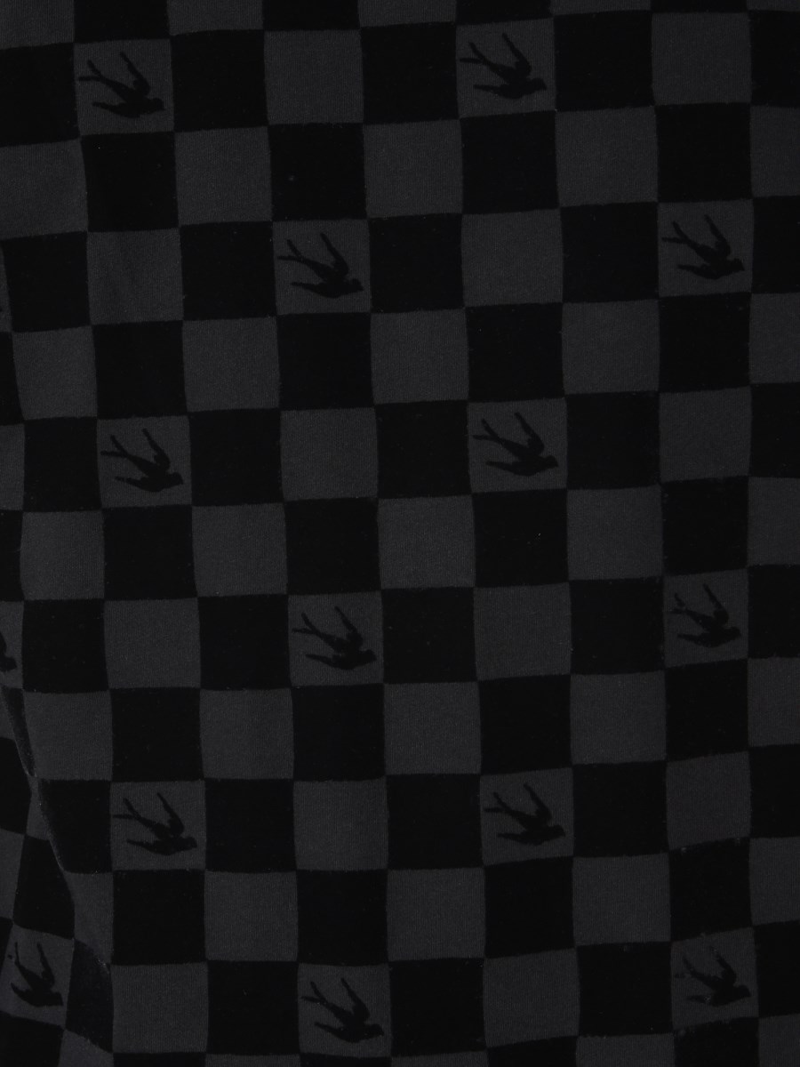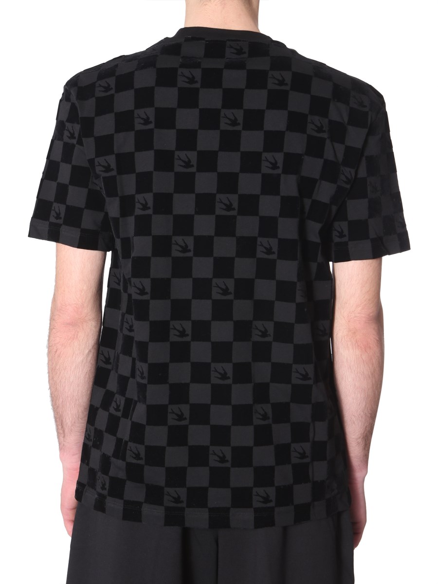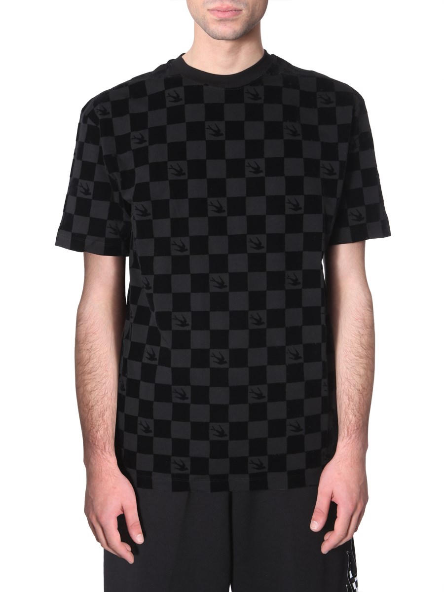 Classic and comfortable, this round neck T-shirt from MCQ Alexander McQueen. Fabricated from lightweight and breathable cotton, this T-shirt is perfect for summer outings. The T-shirt features an all-over chequered pattern. With a round neck and short sleeves, this T-shirt is perfect for summer season. You can pair this T-shirt with black denim and sneakers for a complete casual look.