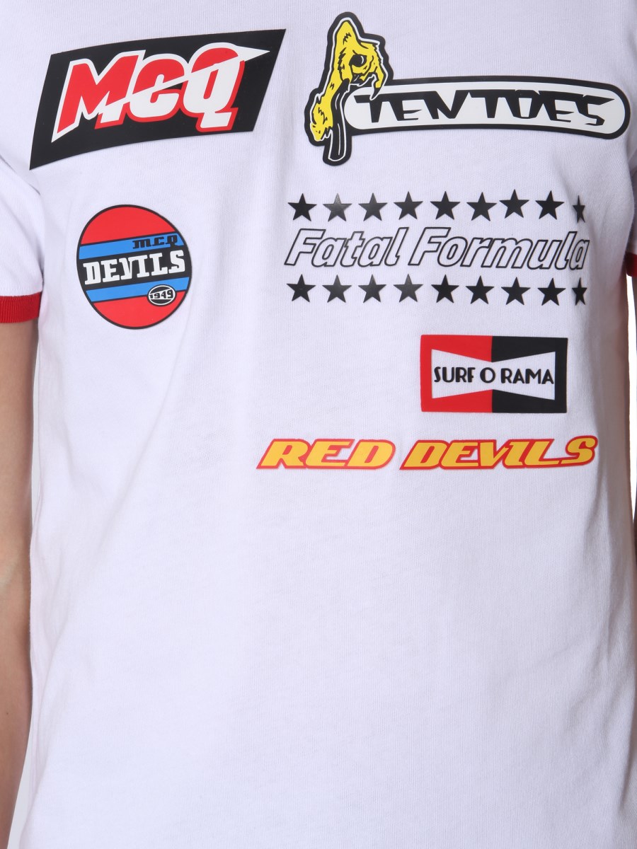 This round neck T-shirt from the MCQ Alexander McQueen collection will make an ideal upgrade to your summer wardrobe. The T-shirt has a regular fit, making it an ideal lounge or sportswear. It is fashioned with 100% cotton for a soft feel against the skin and to keep you cool and cosy through the hot weather conditions. Team it with shorts and sneakers on your casual day out.