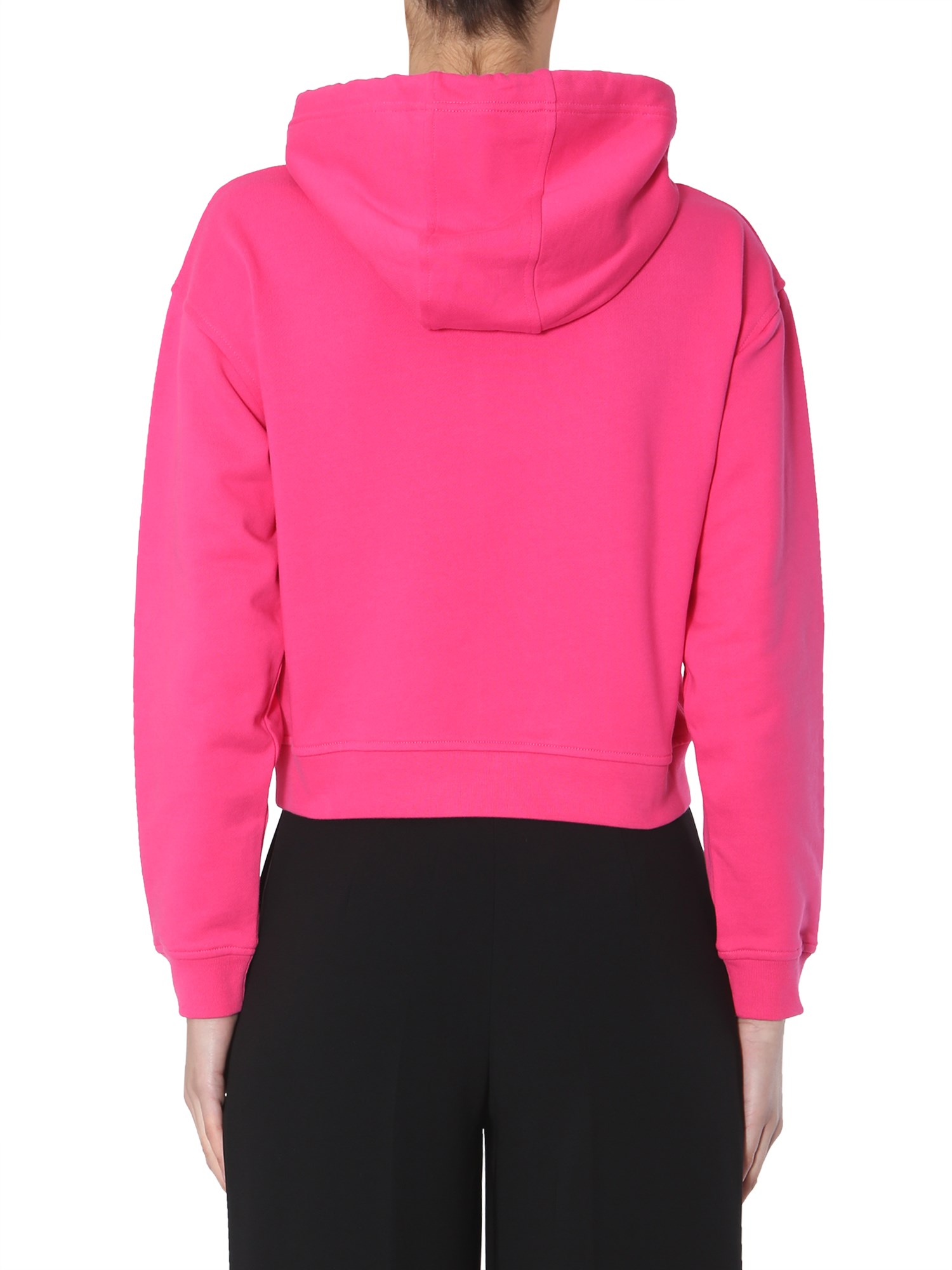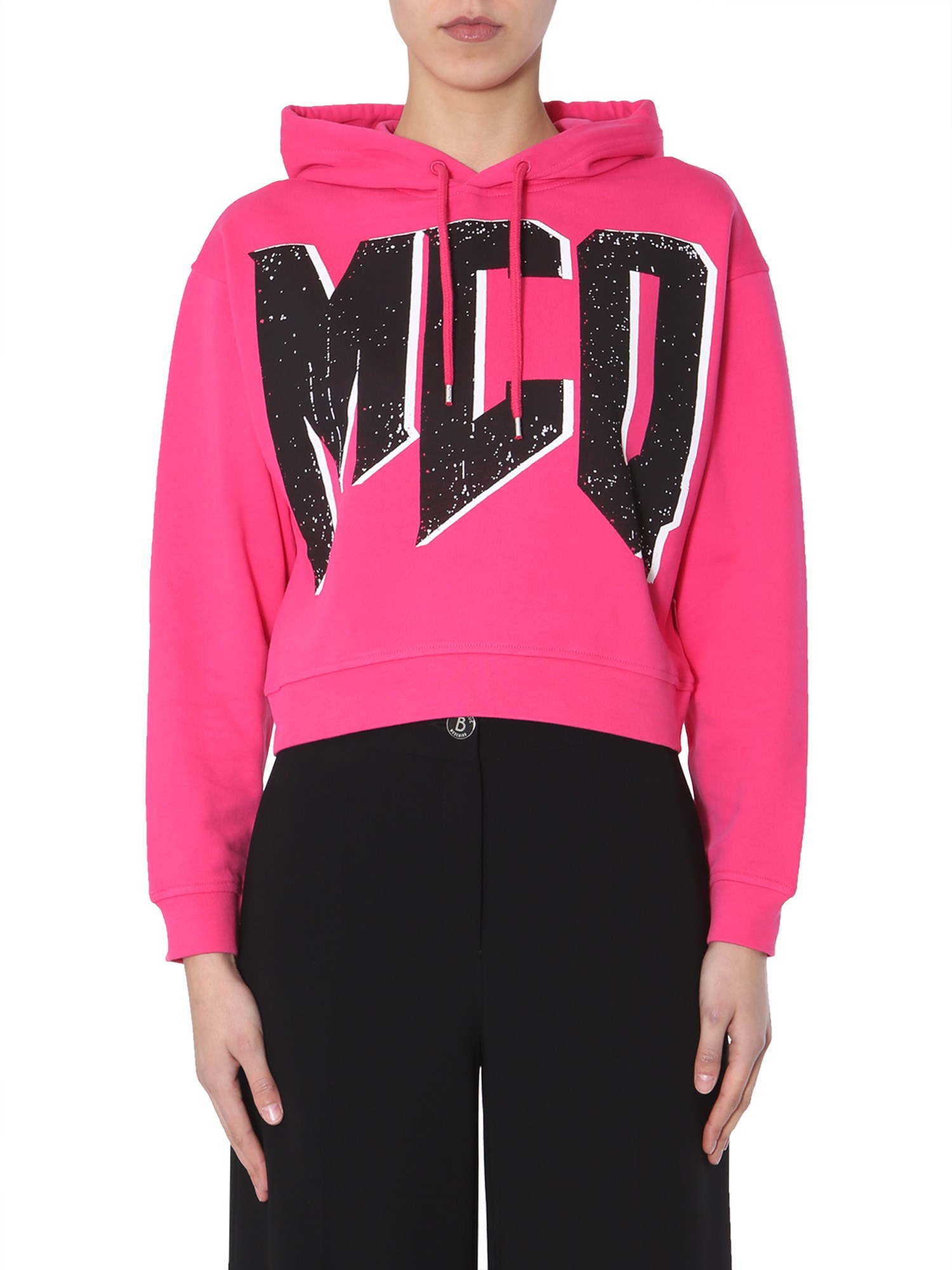 Wear this iconic hooded sweatshirt by MCQ Alexander McQueen which is a winter essential. This cotton t-sweatshirt comes with a hooded neck accompanied by coulisse. The bold print at its front looks chic and trendy. Combine this bright sweatshirt with a pair of jeans for a casual appeal.